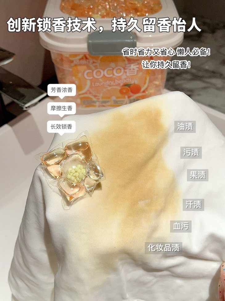 我真的敲喜欢那种留香持久的衣服 所以就在洗衣凝珠的挑选上下足了功夫~ 那这个COCO香的凝珠就是我精心寻觅的好东西啦 简直是便宜又量大 整个大凝珠是五个小凝珠组成 咱们衣服上的油渍、汗渍直接清理的干干净净的 洗完的衣服👚都是满满的COCO香 闻起来淡雅又清香~尊的敲治.愈 走在路上别人都以为我喷了香水…