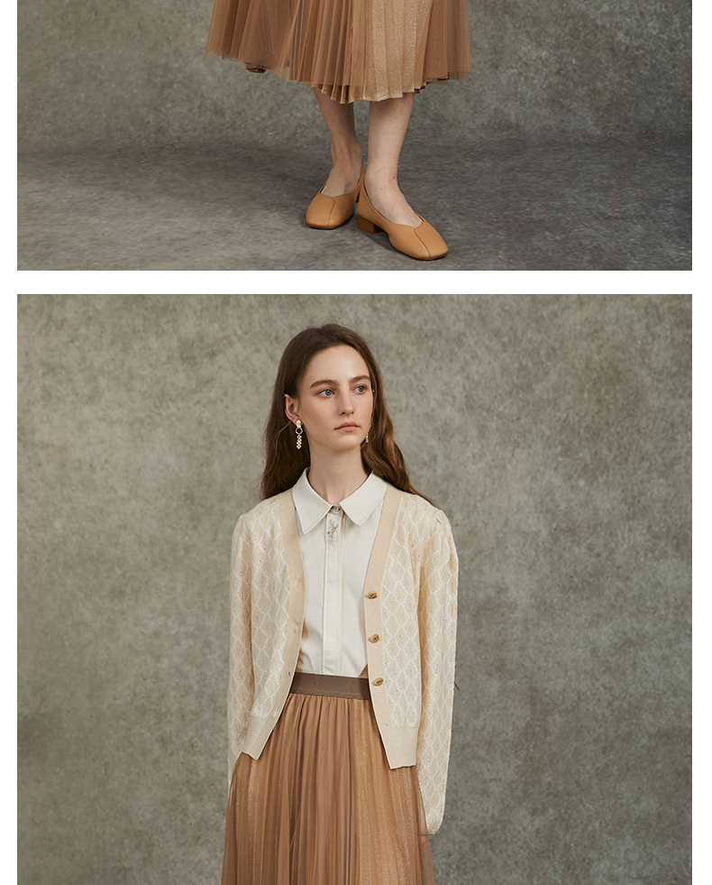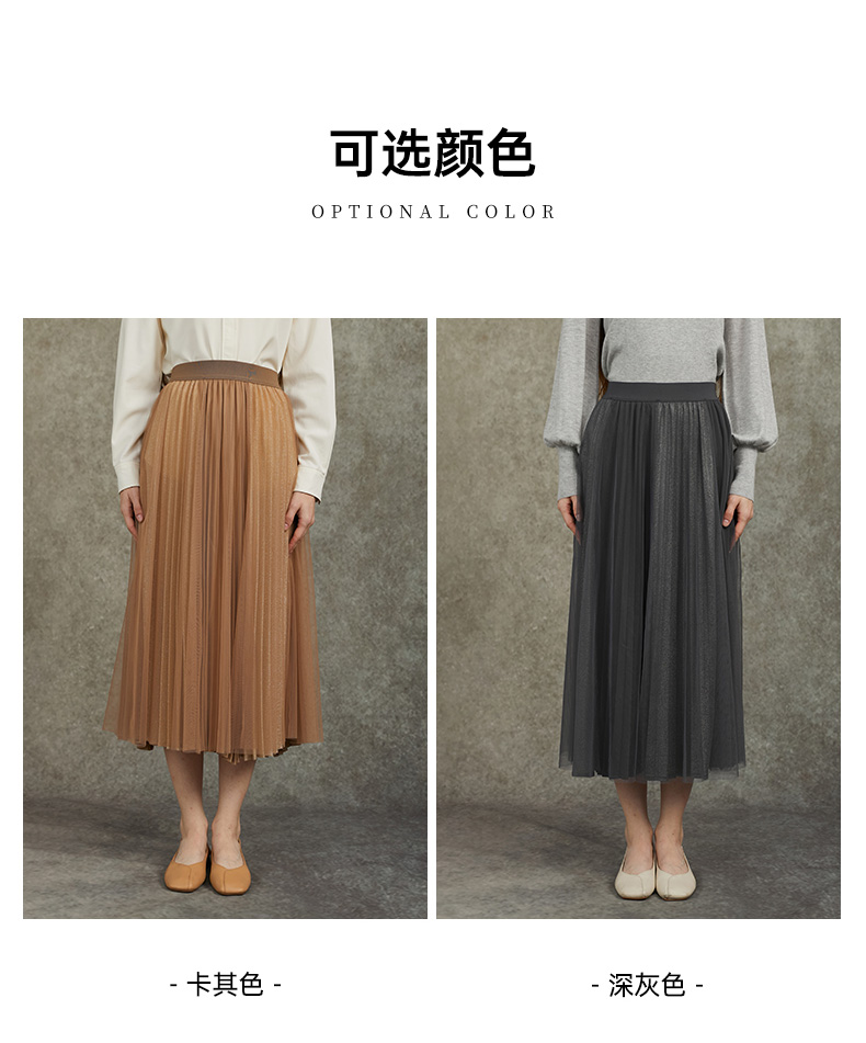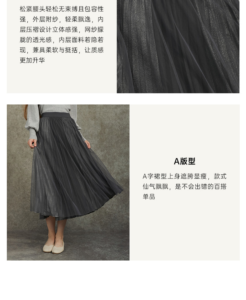 Famecoco范可儿气质网纱蕾丝半裙优雅知性A字裙FAC6HA005