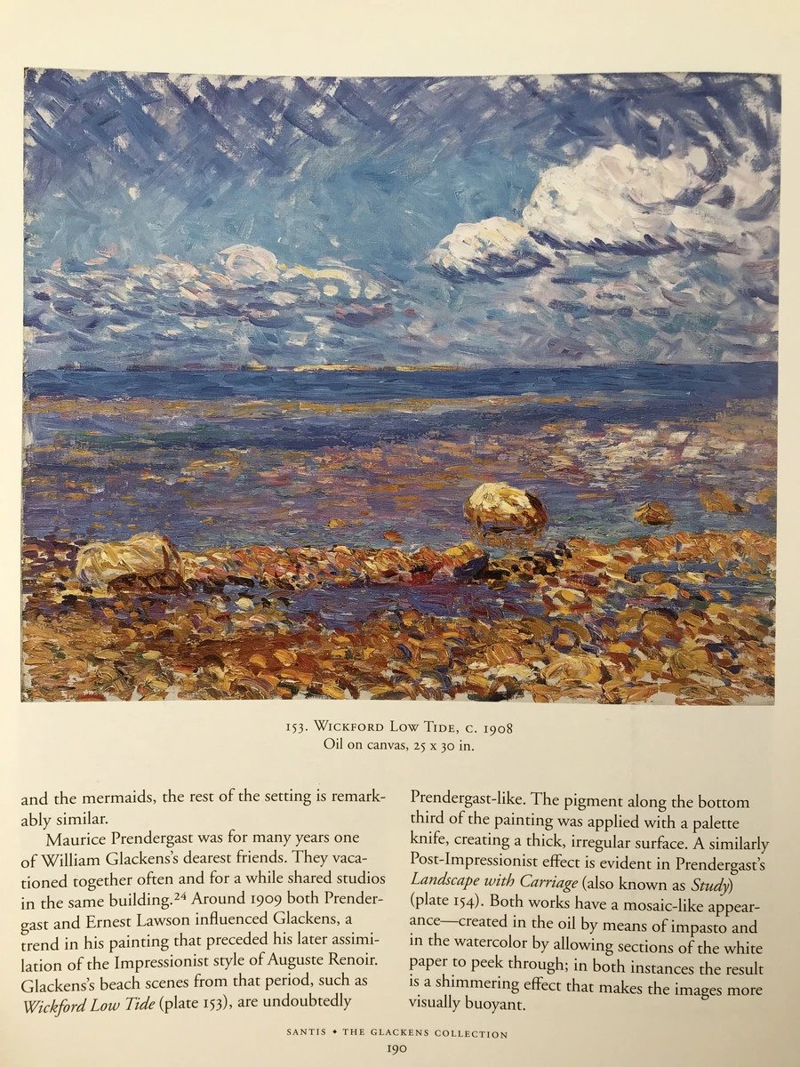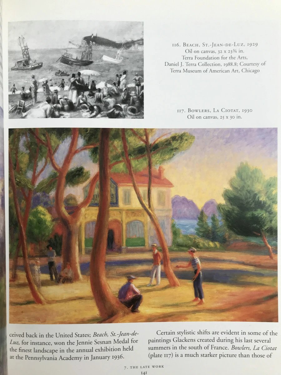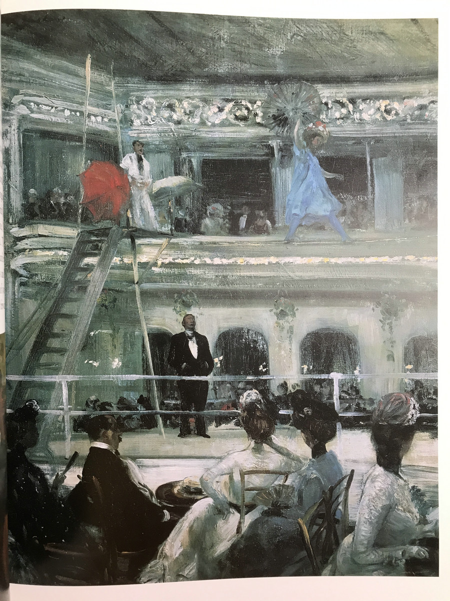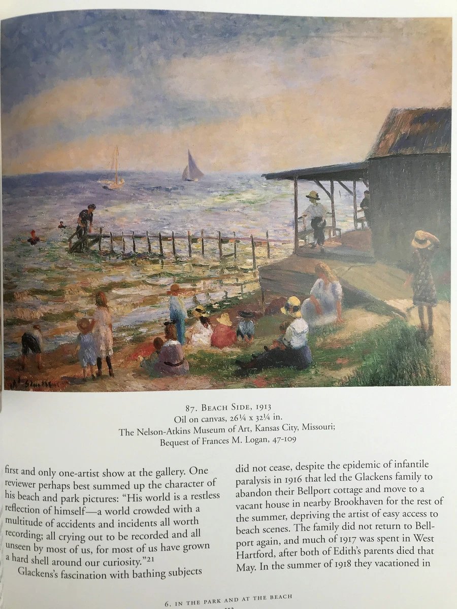 威廉·詹姆斯·格拉肯斯(William James Glackens,1870-1938年),美国画家和插图画家。他出生于费城,先后在当地和欧洲学习艺术。格拉肯斯是创造了垃圾箱画派的现实主义画家团体八人派的成员之一。《河上公园》,色调柔和,是他早期城市生活画的代表作。在晚期风景画、海滩风景和裸体画中,他使用具有印象主义特点的暖色调。