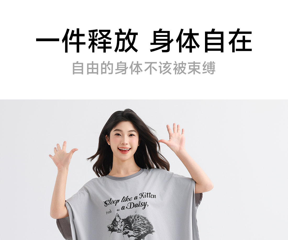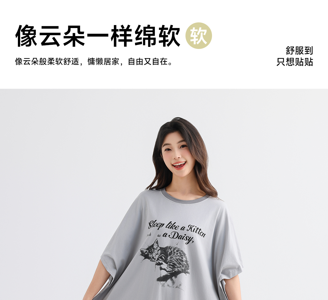 美季美优女士棉质猫咪短袖裙