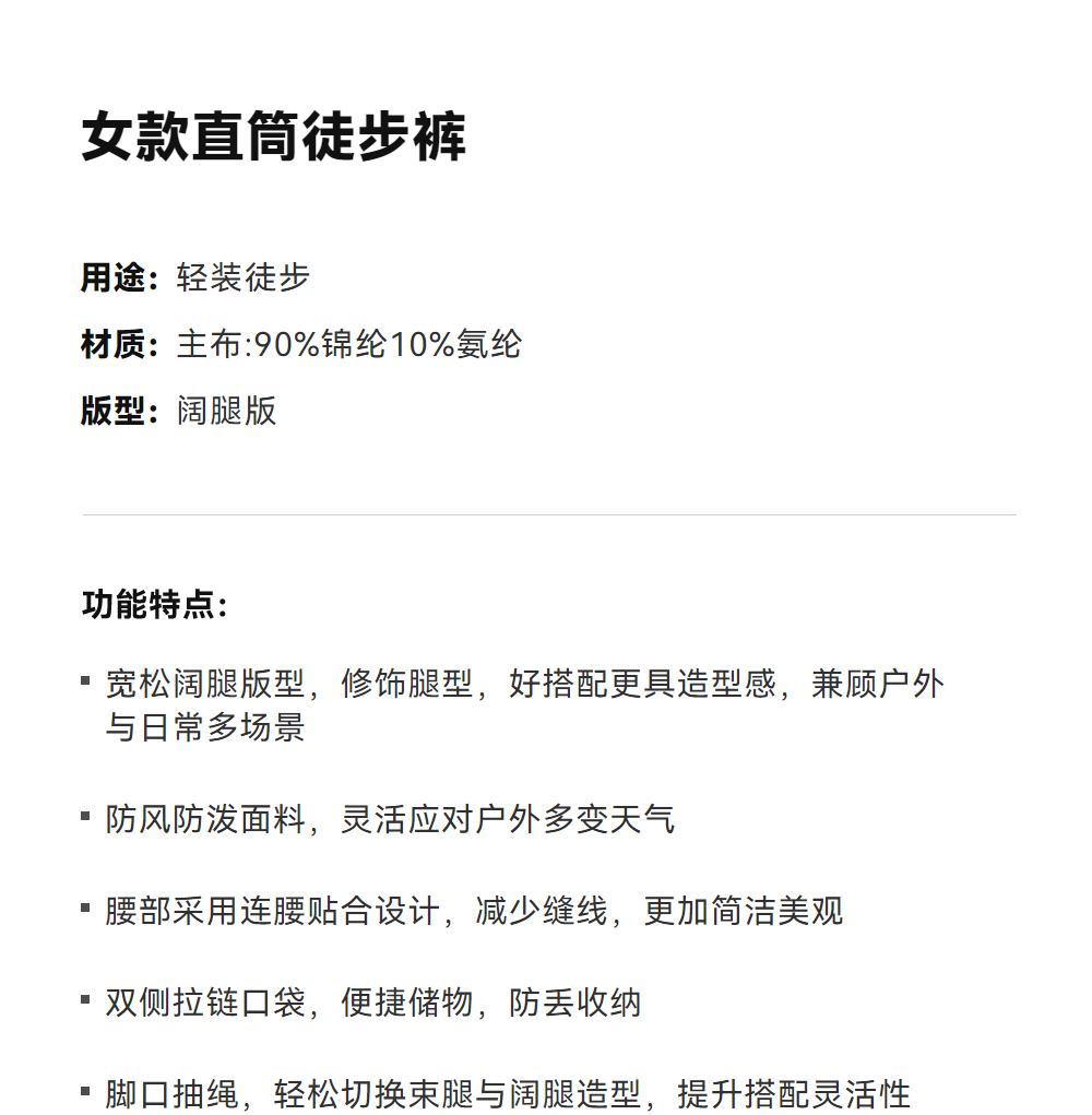 KAILAS凯乐石 女款直筒徒步裤 KG2539410【Z】
