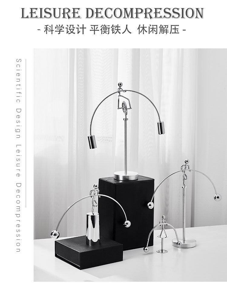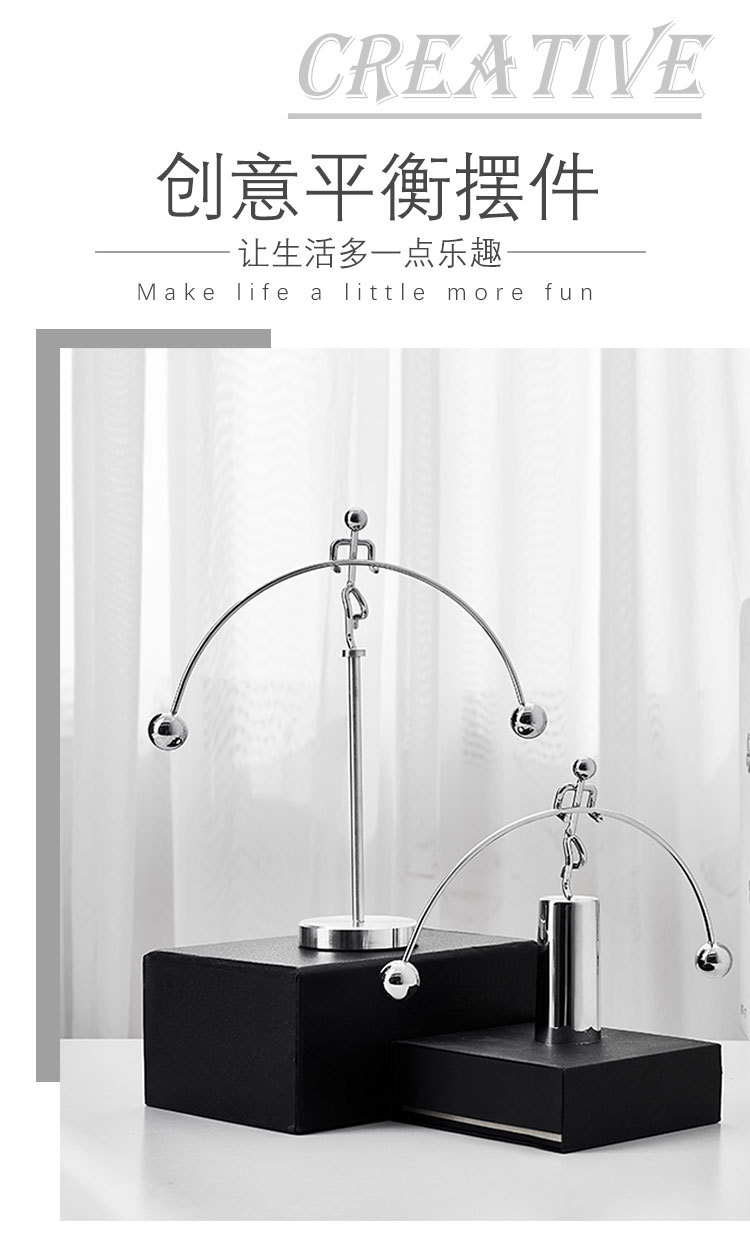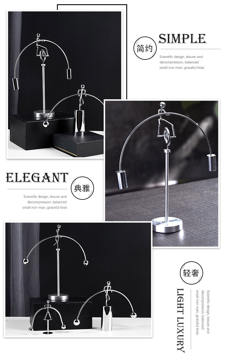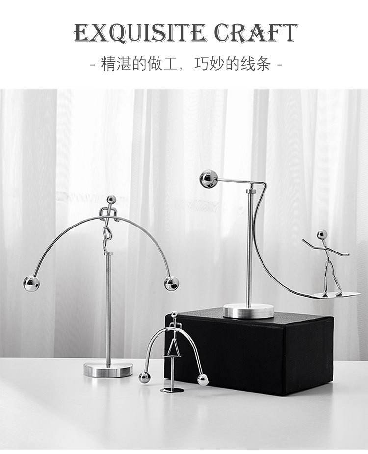 创意不倒翁平衡小铁人|牛顿摆永动仪机摆件