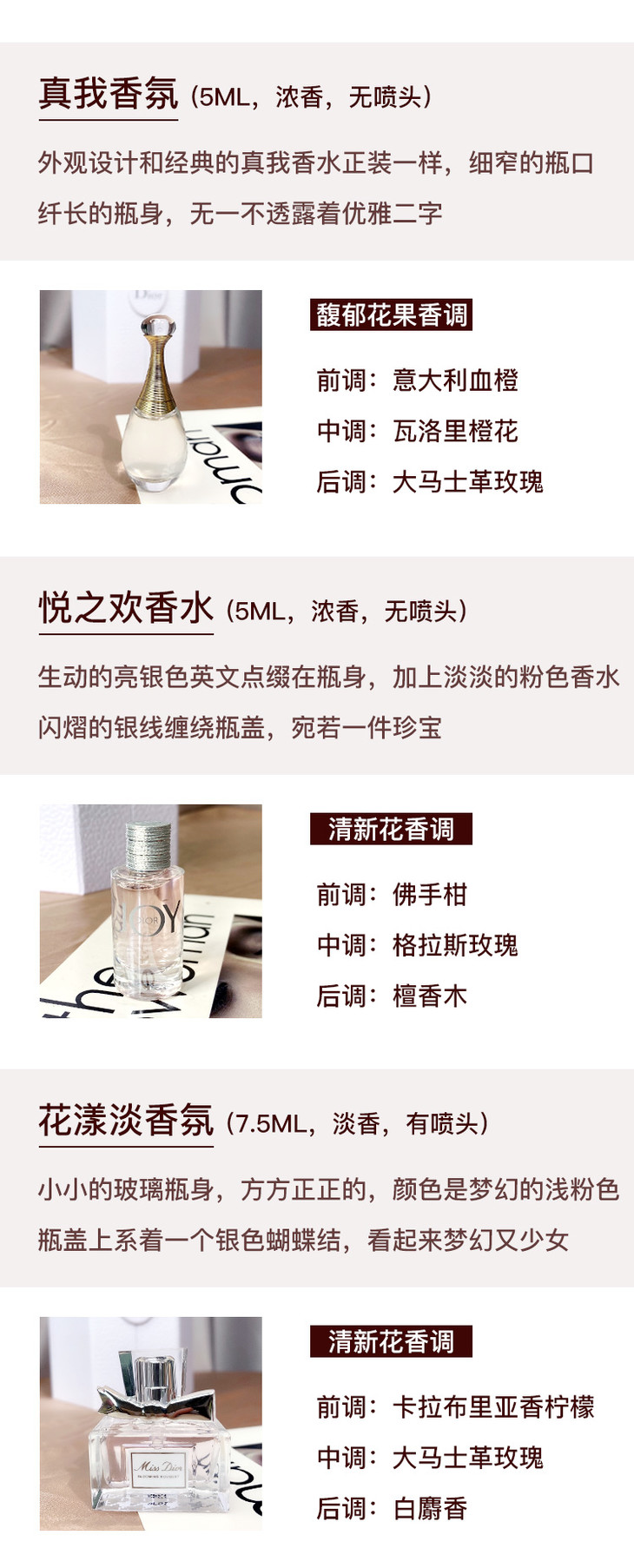 【专柜小样】法国 Dior迪奥 城堡五件套香水 (花漾7.5ml+韵淡7.5ml+真我5ml+JOY悦之欢5ml+芭伊颂炽焰5ml)