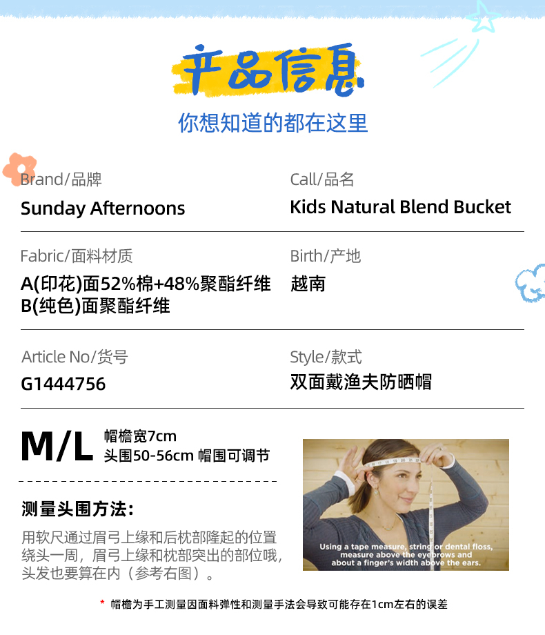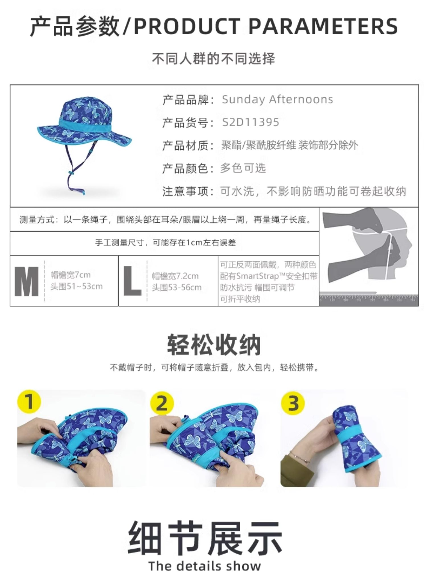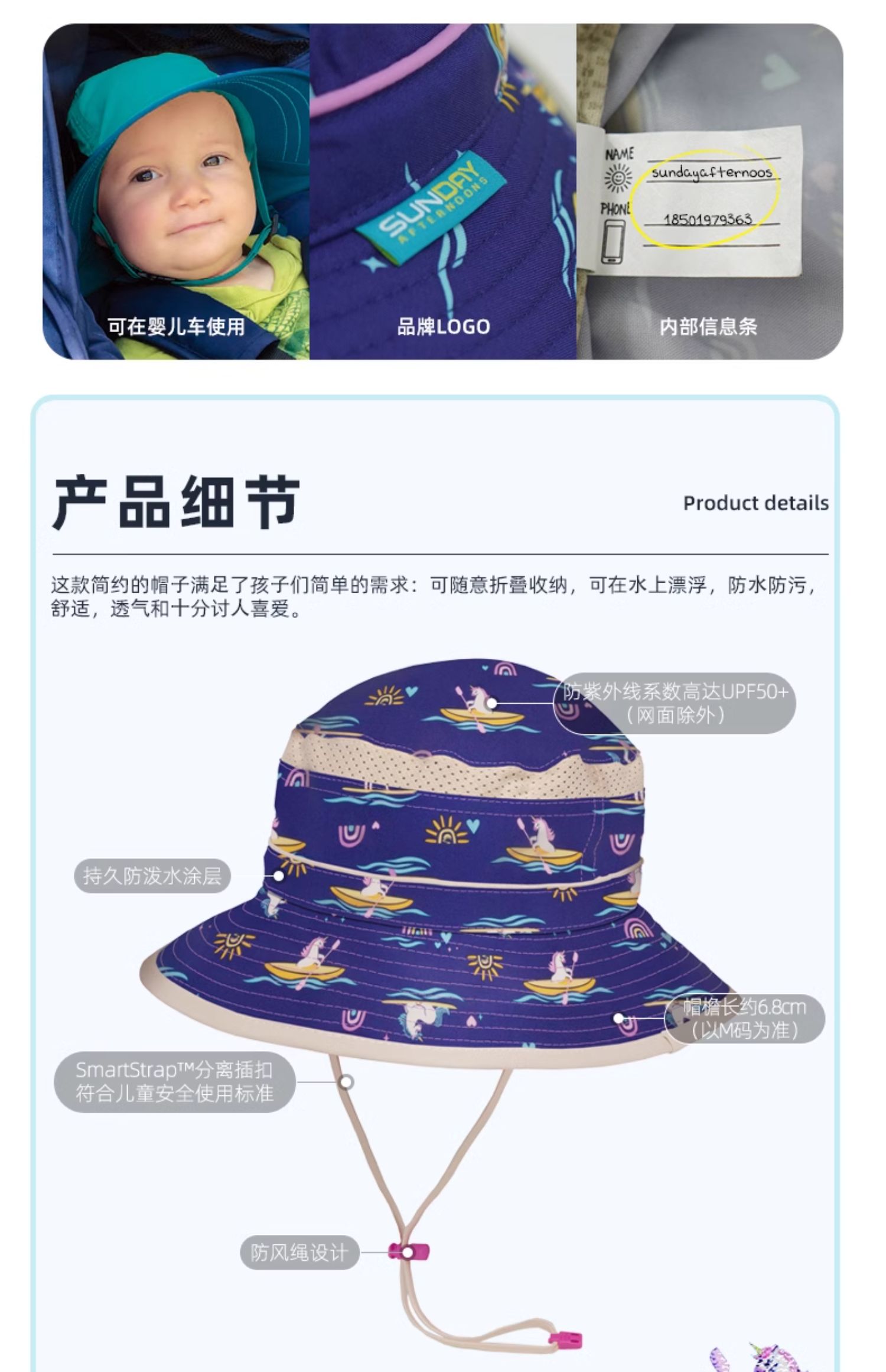 【儿童渔夫帽】Sundayafternoons儿童渔夫帽,Sunday儿童防晒遮阳,UPF50+