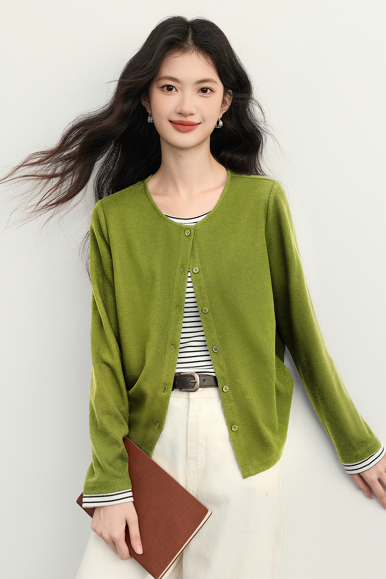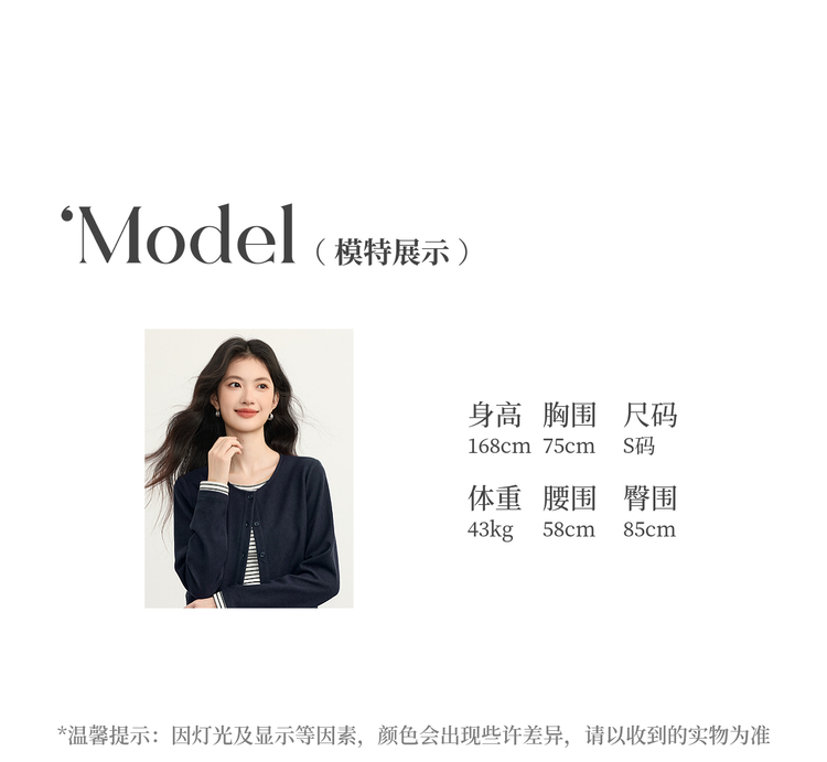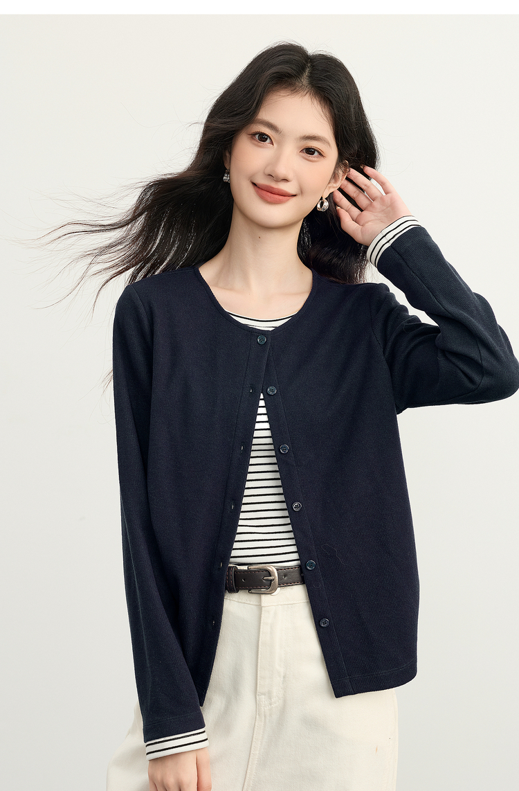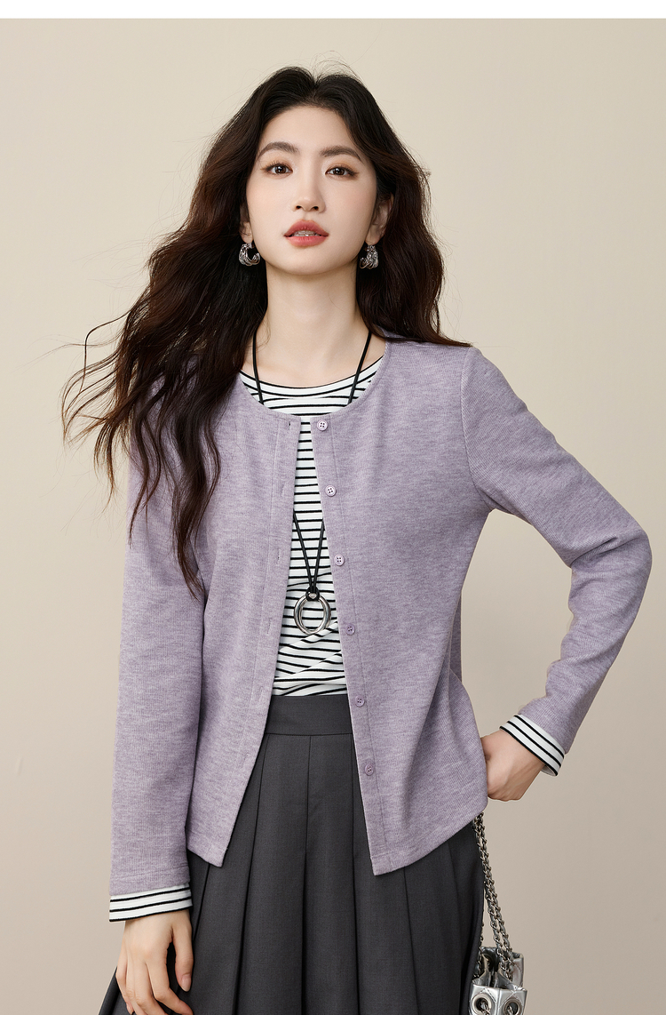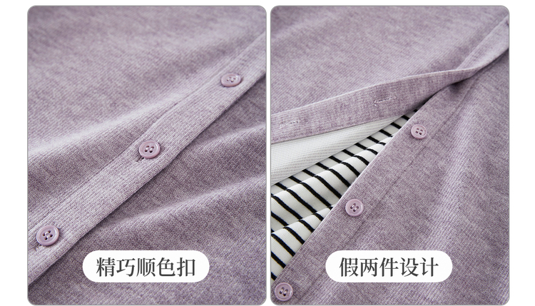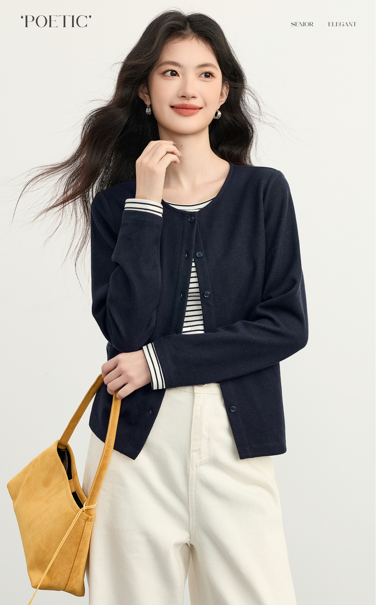 【12/03新品】熙世界假两件云朵针织开衫女设计感休闲条纹拼接上衣2025秋冬新款