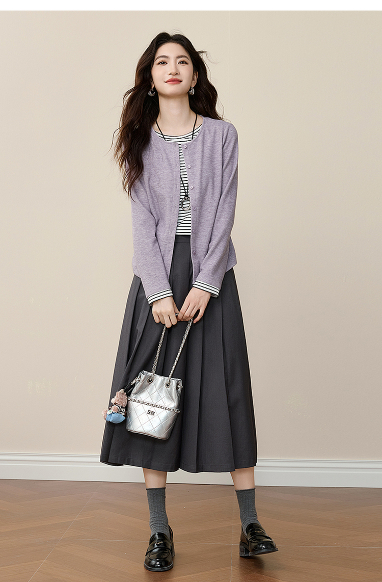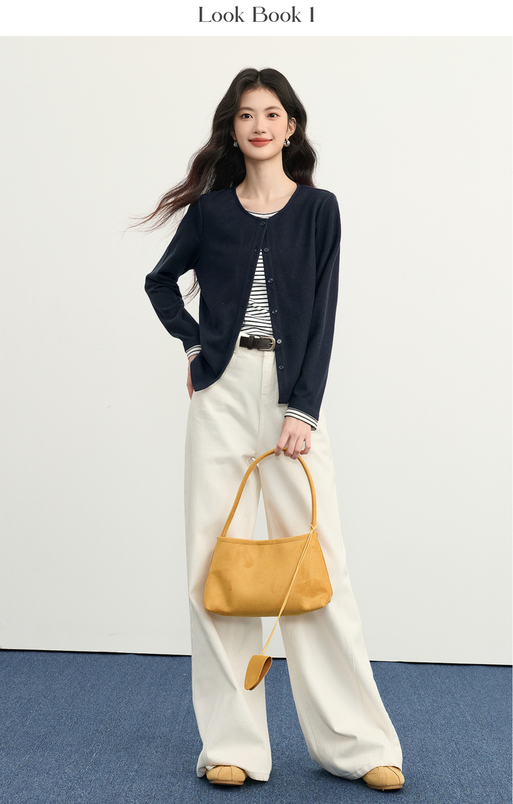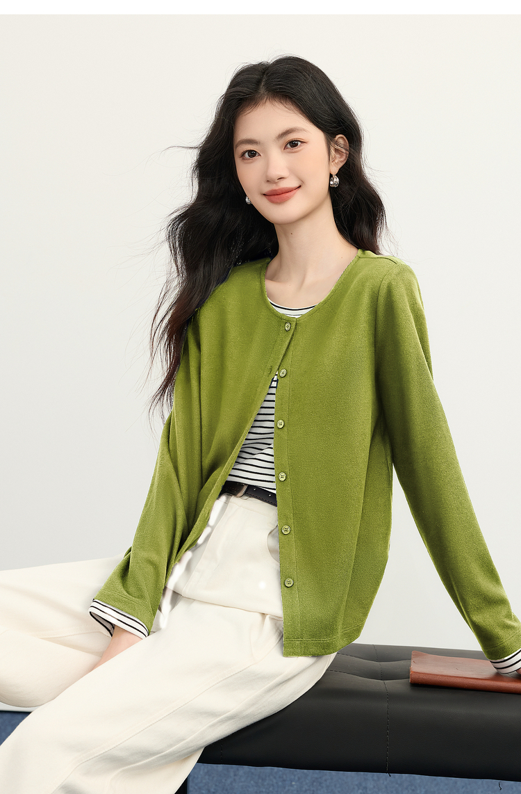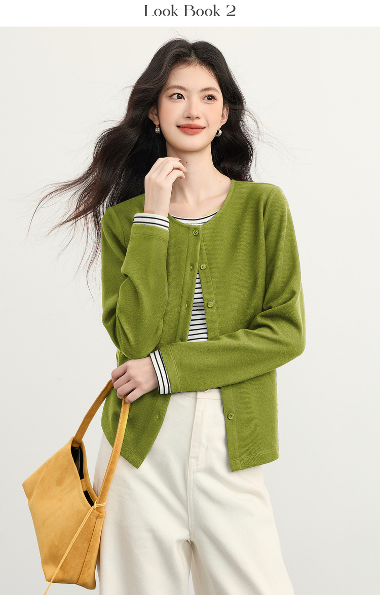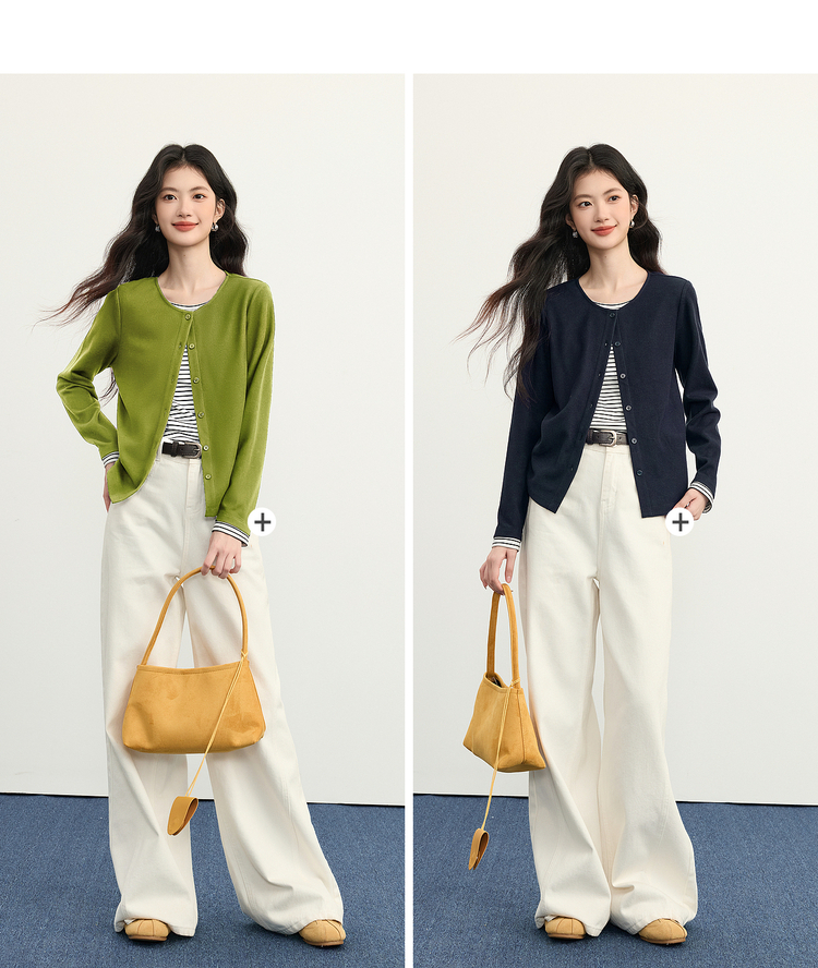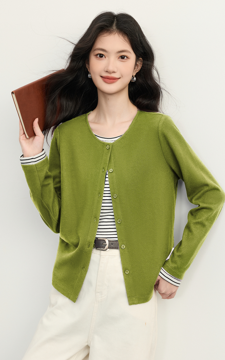 【12/03新品】熙世界假两件云朵针织开衫女设计感休闲条纹拼接上衣2025秋冬新款