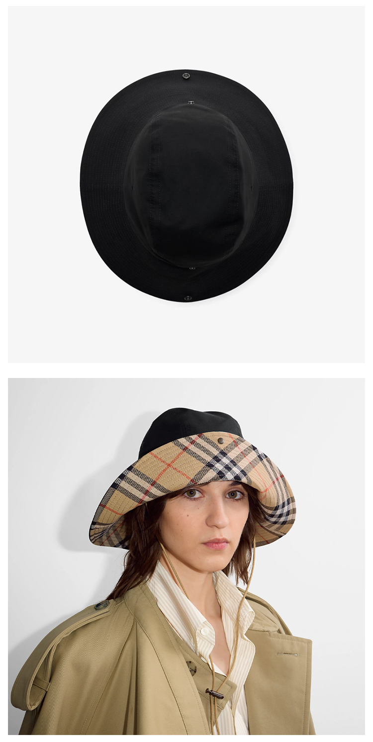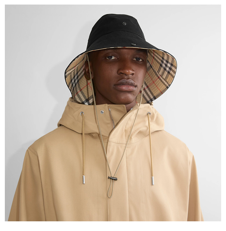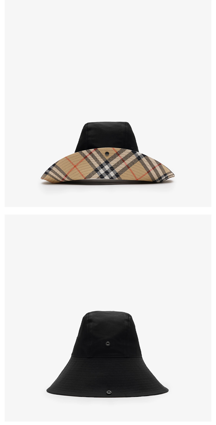 BURBERRY 巴宝莉 男女同款格纹帽檐华达呢渔夫帽 黑色 8112364 A1189