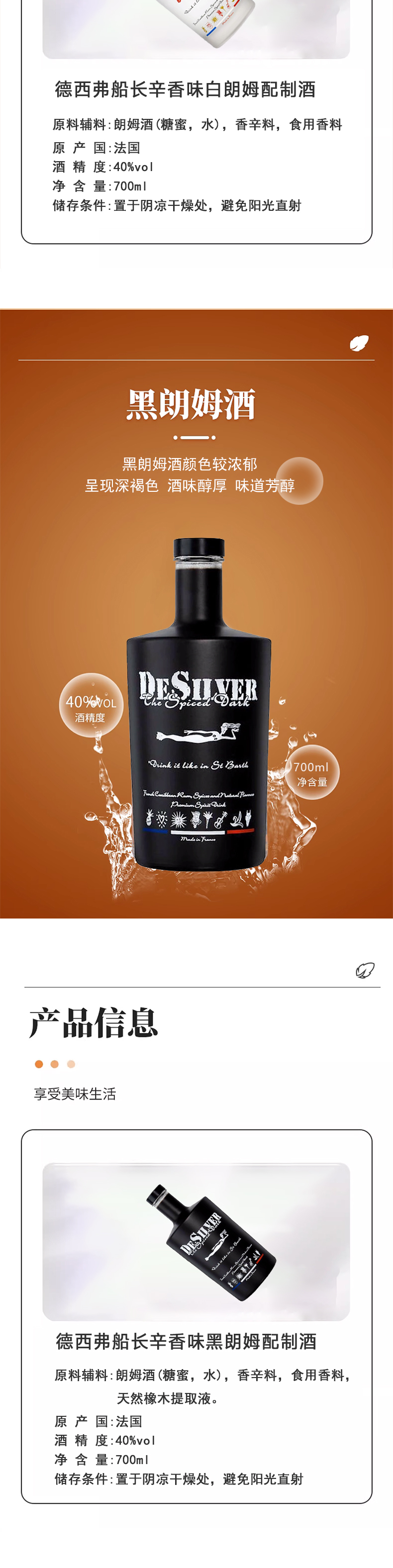 法国进口德西弗船长辛香味配制酒700ml 40%Vol.【黑朗姆丨白朗姆】