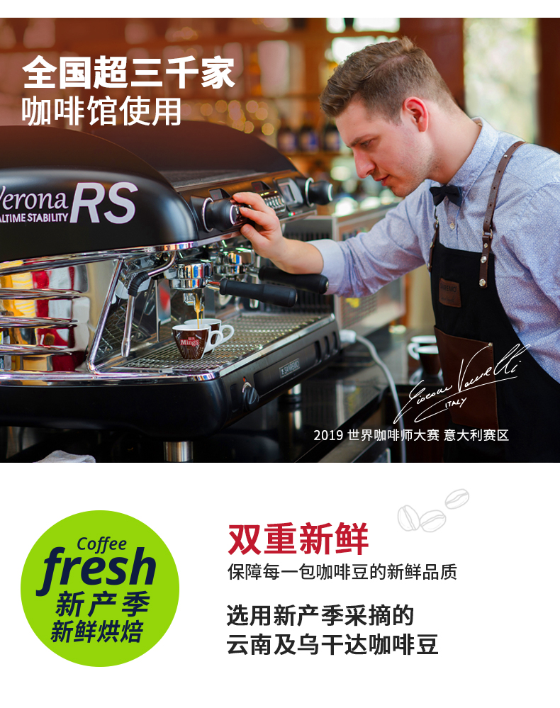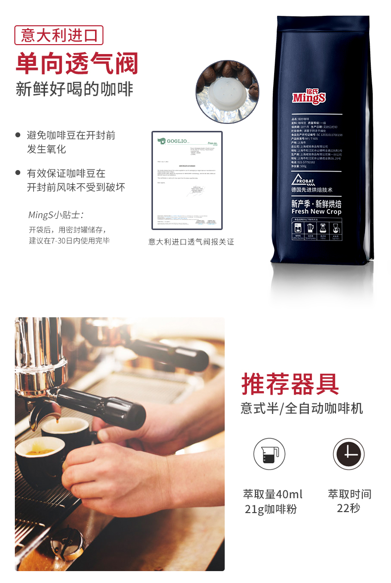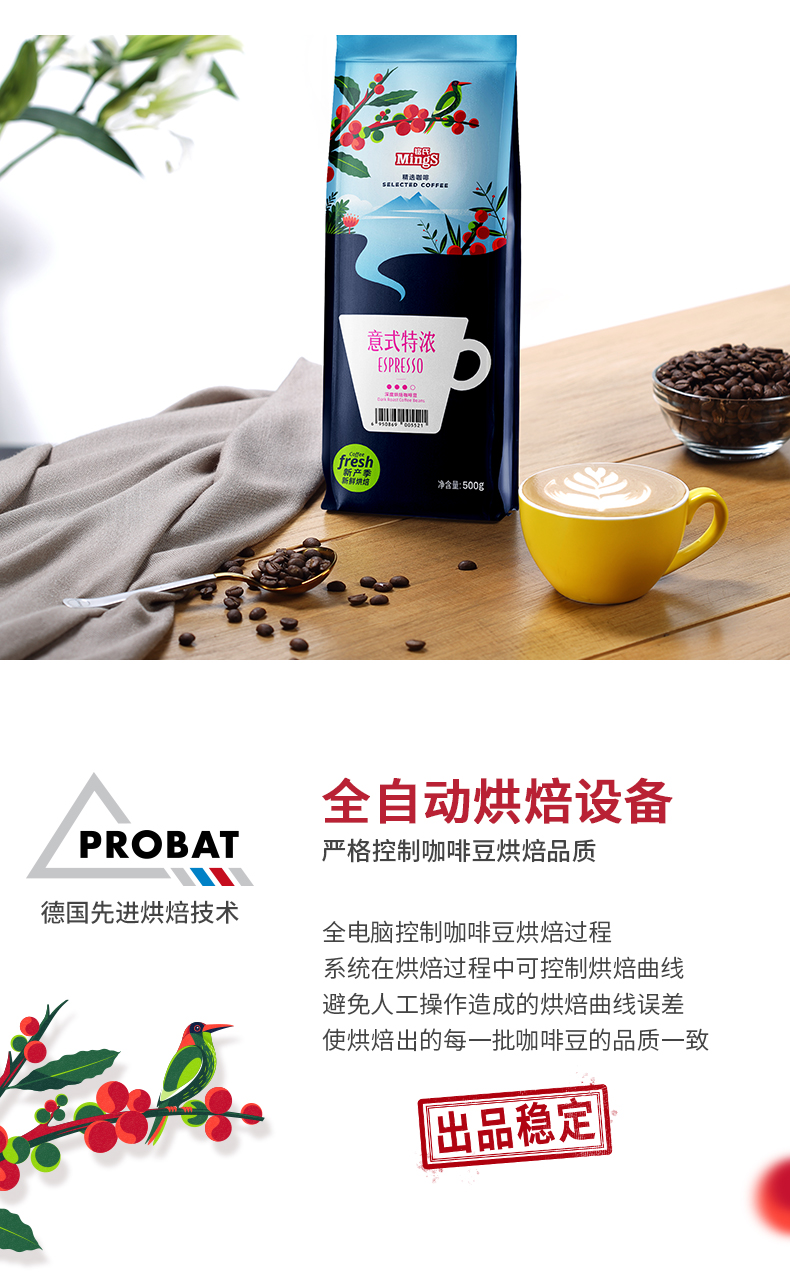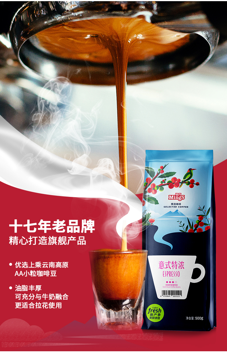 铭氏Mings 意式特浓咖啡豆500g 意大利浓缩拼配咖啡 深度烘焙