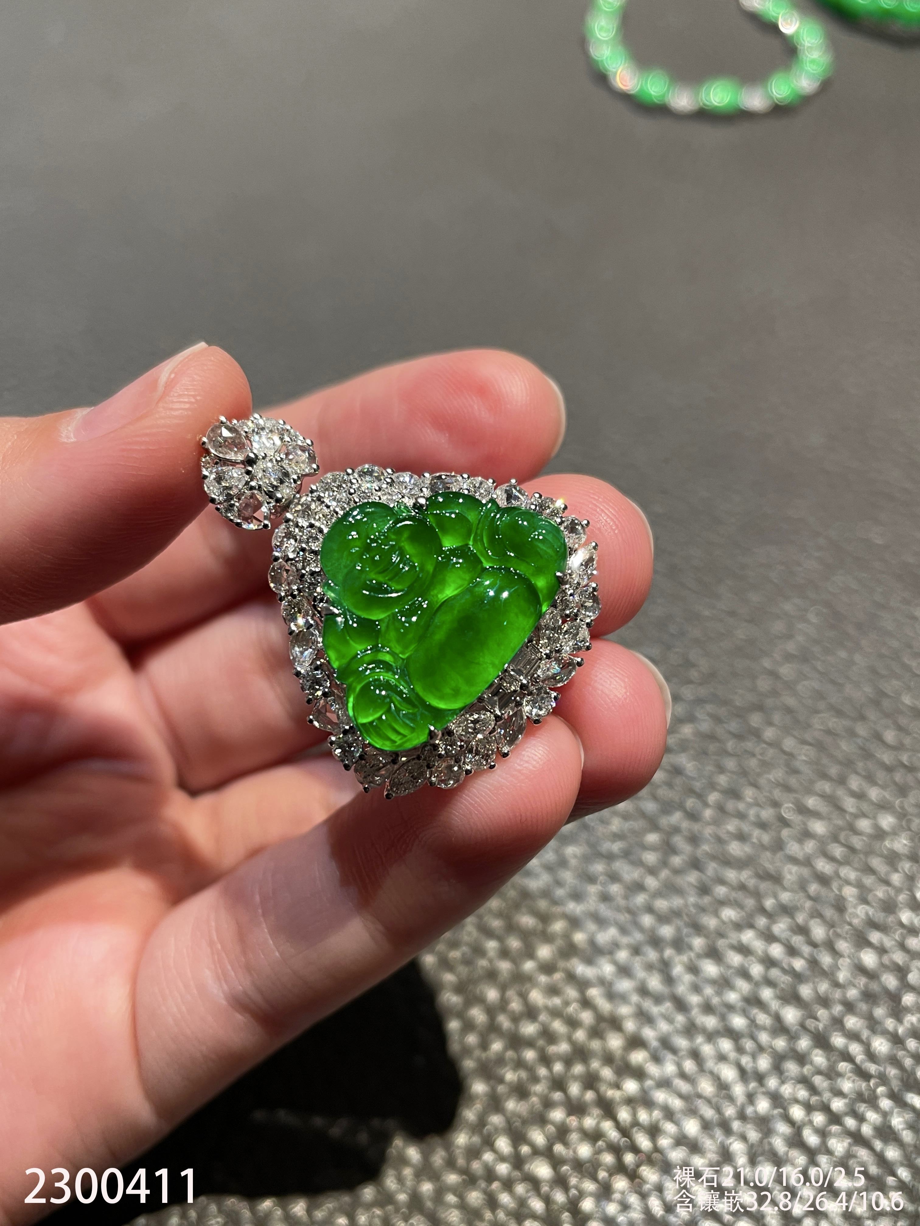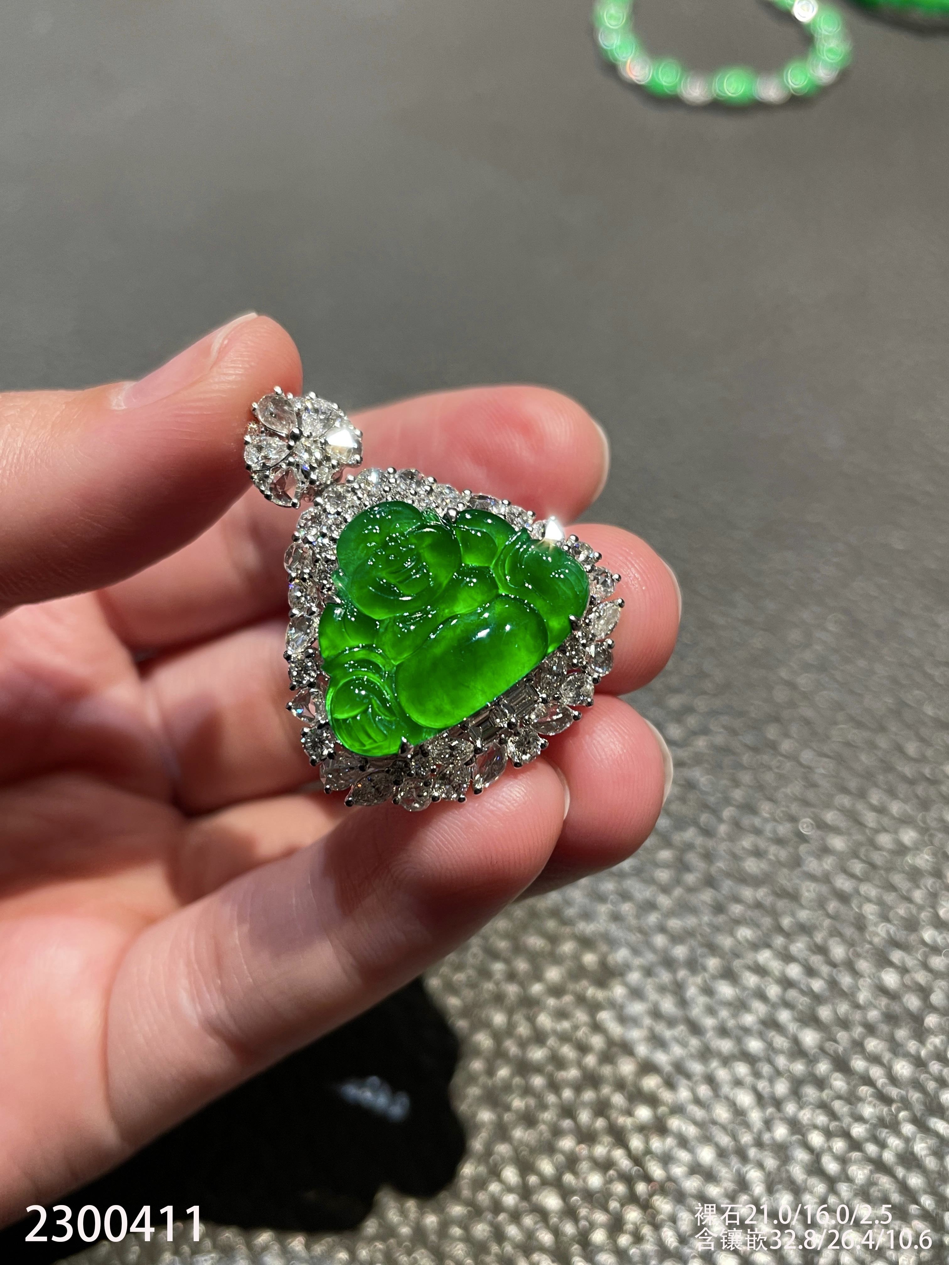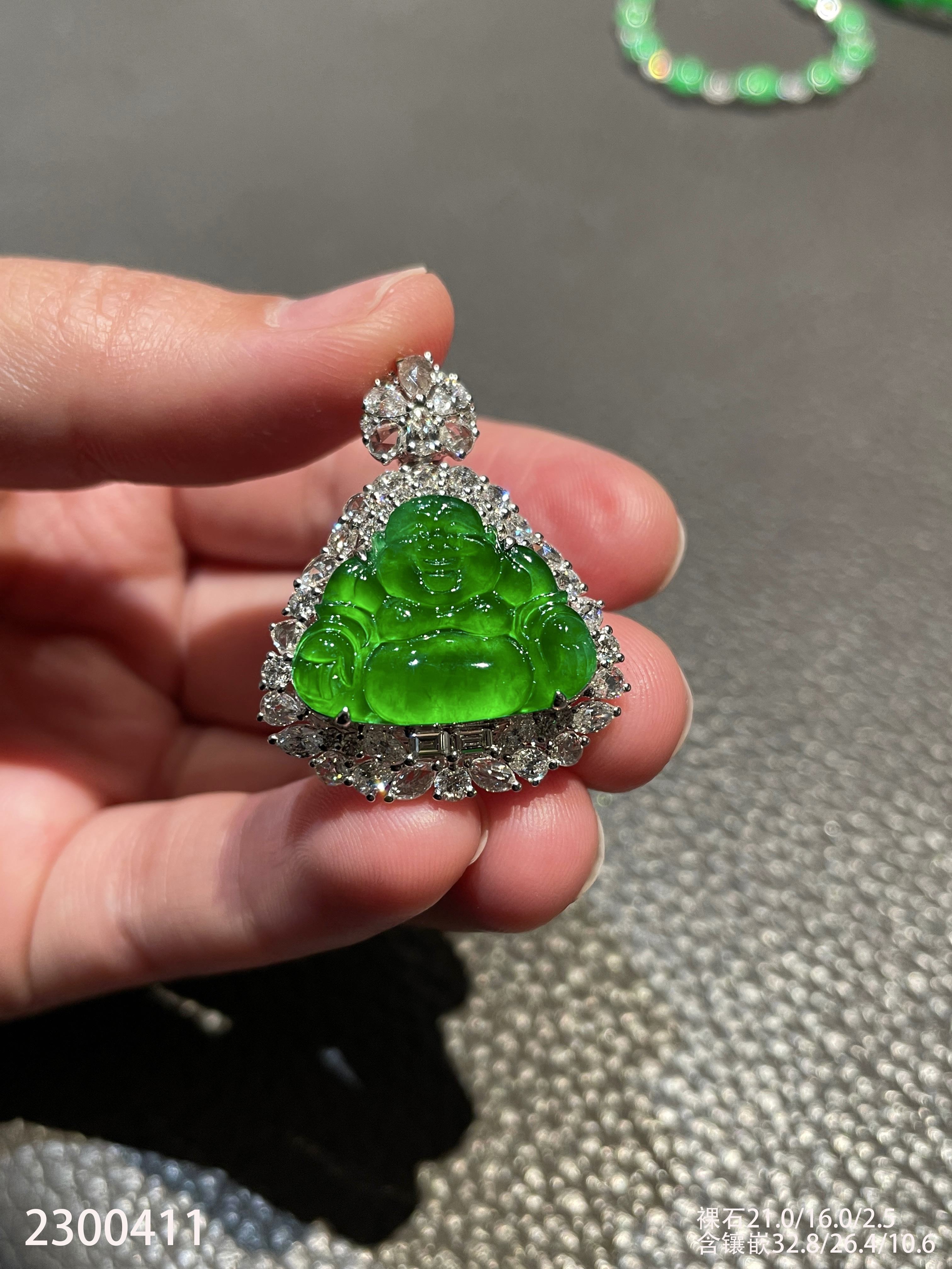 老坑高冰艳绿佛公吊坠【3013804】具体价格微信咨询