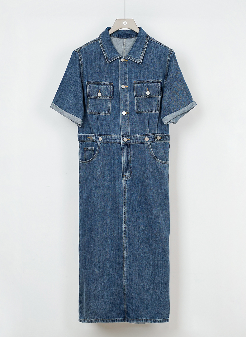 oldcolour欧珂夏季复古牛仔连衣裙港风鱼尾裙女显瘦P22107279
