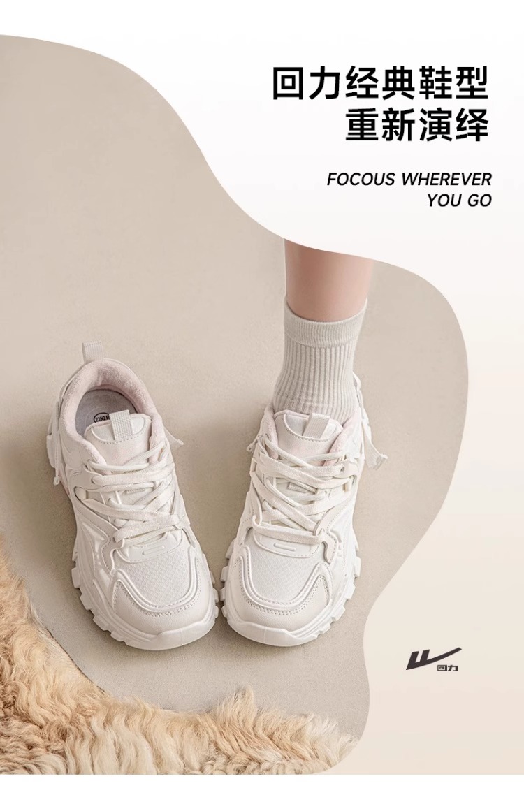 回力老爹鞋女款2025新年厚底增高加绒小白鞋小众百搭休闲运动鞋女