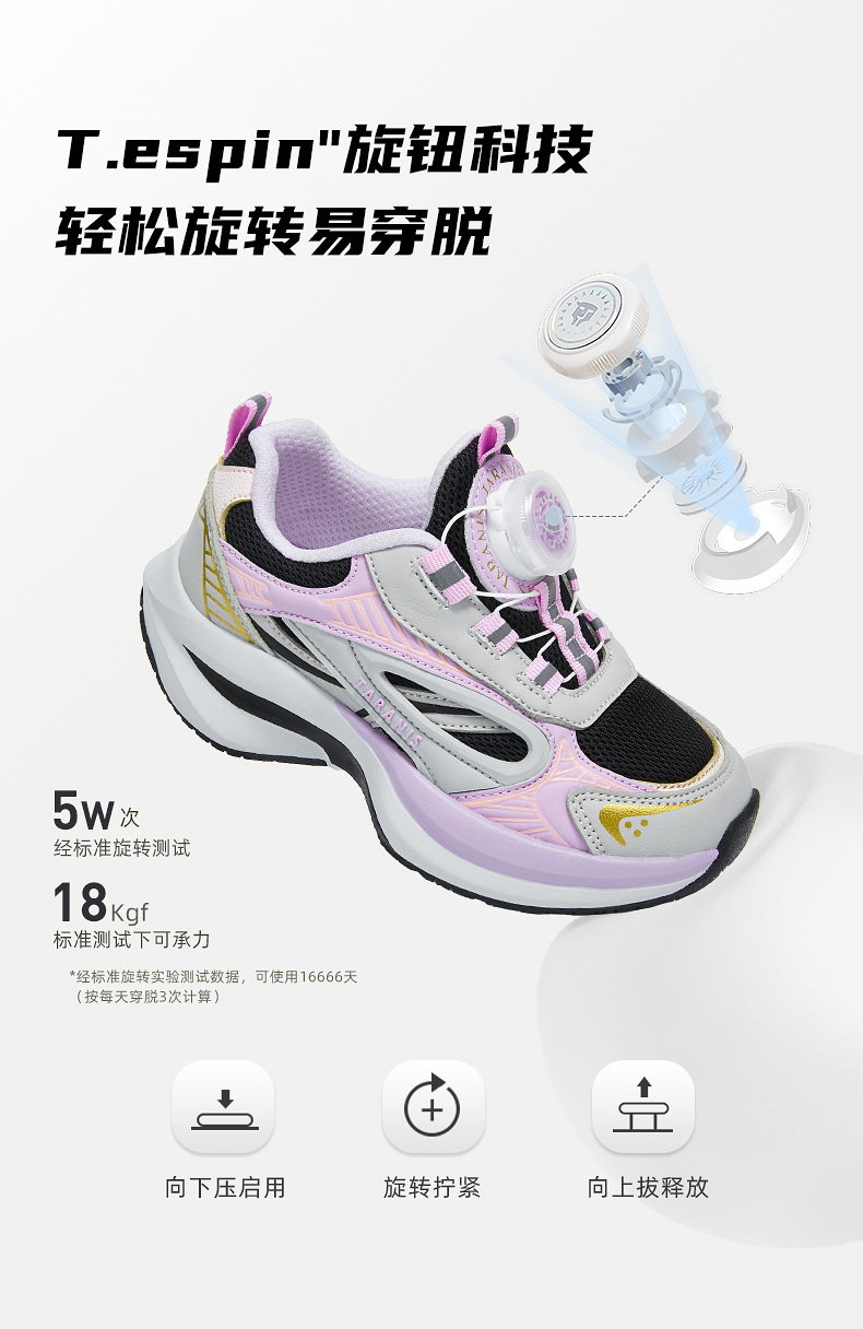 泰兰尼斯秋季新款休闲运动跑步透气男童女童旋转扣潮流轻便运动鞋 T01X5C6786