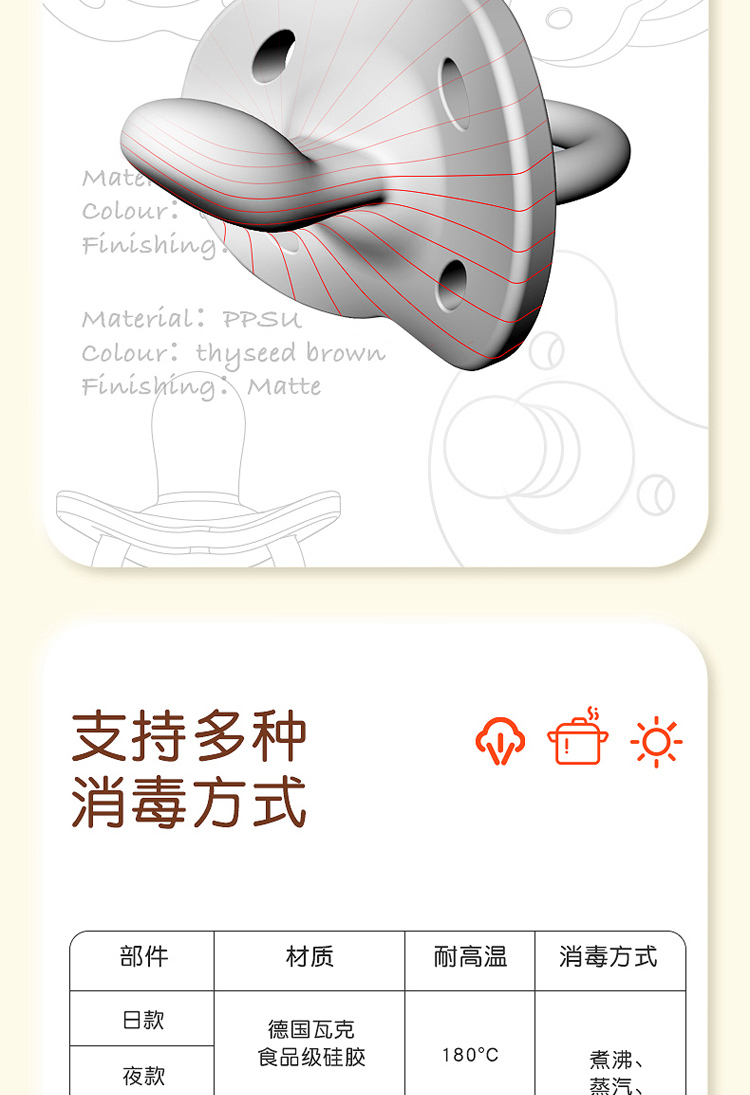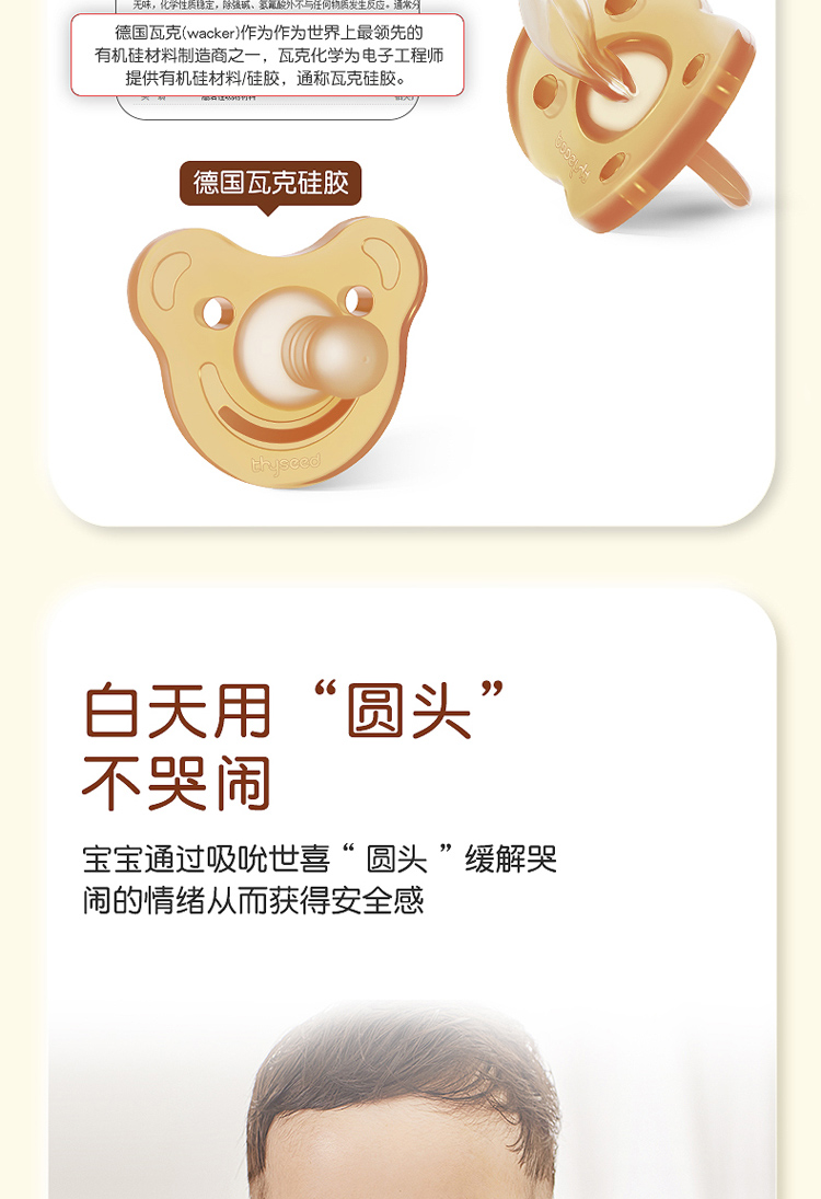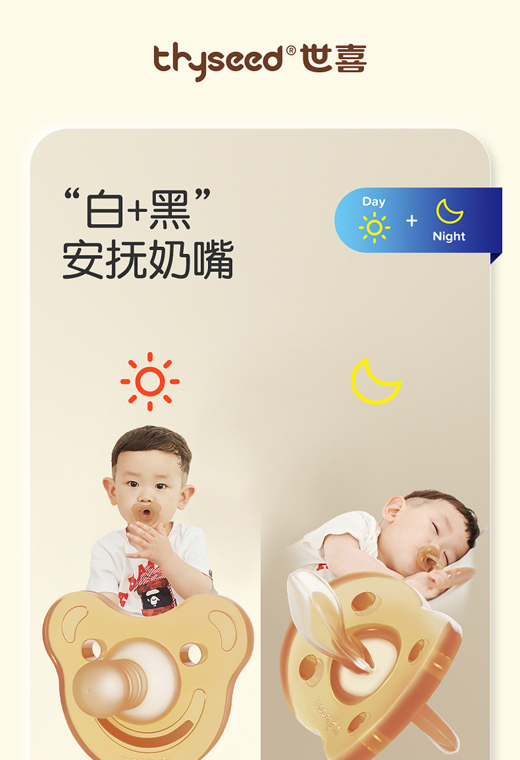 Thyseed世喜白+黑硅胶安抚奶嘴日款夜款圆头扁头两种规格更贴心 0月+