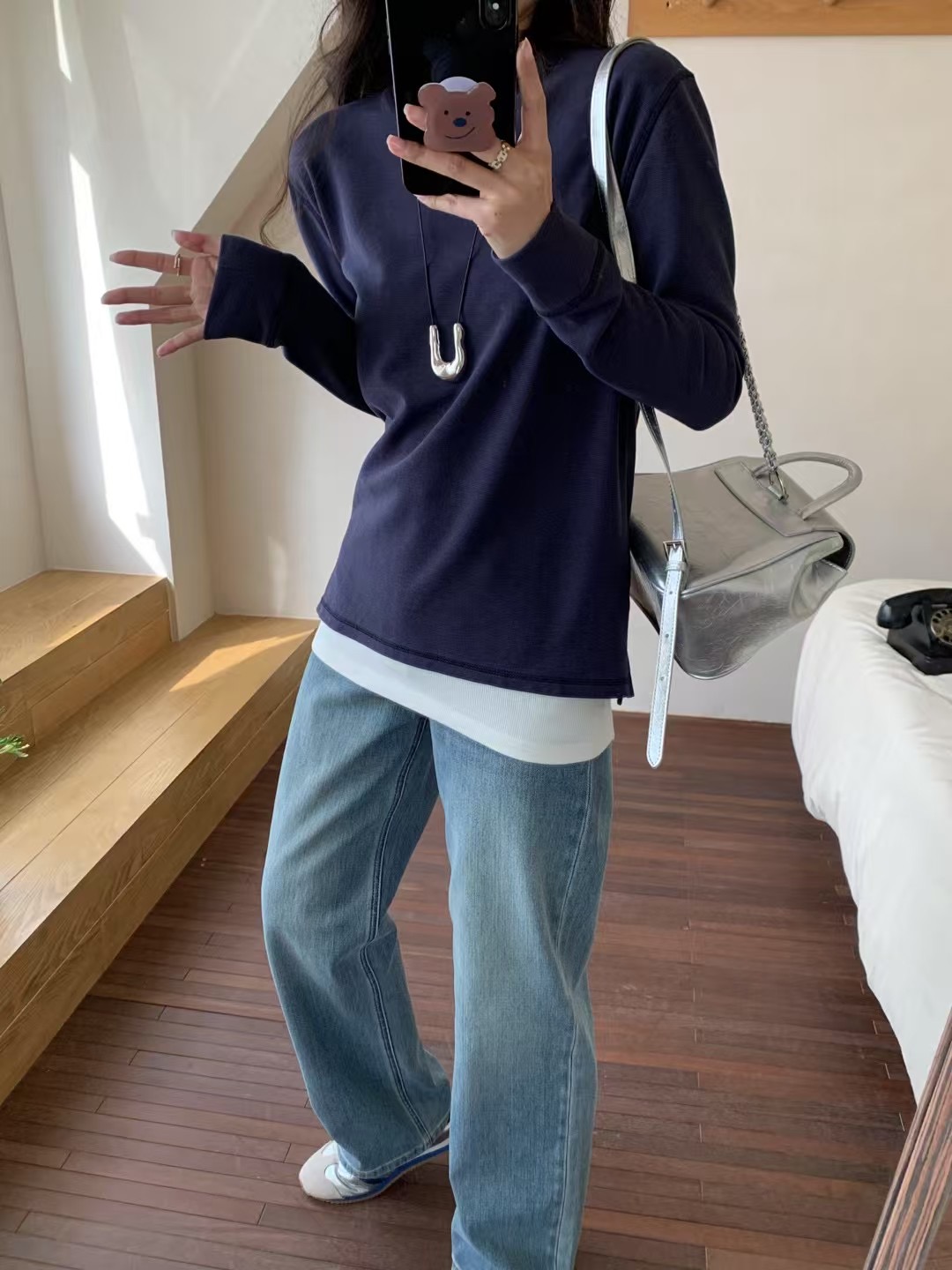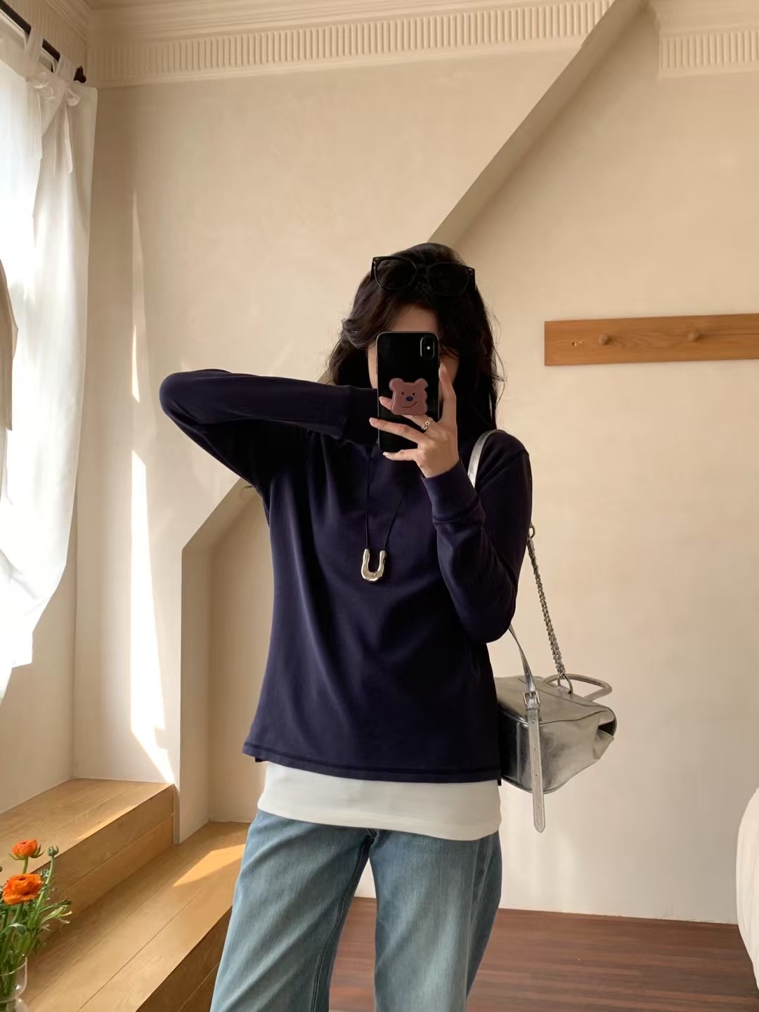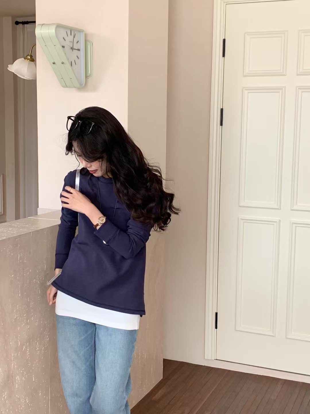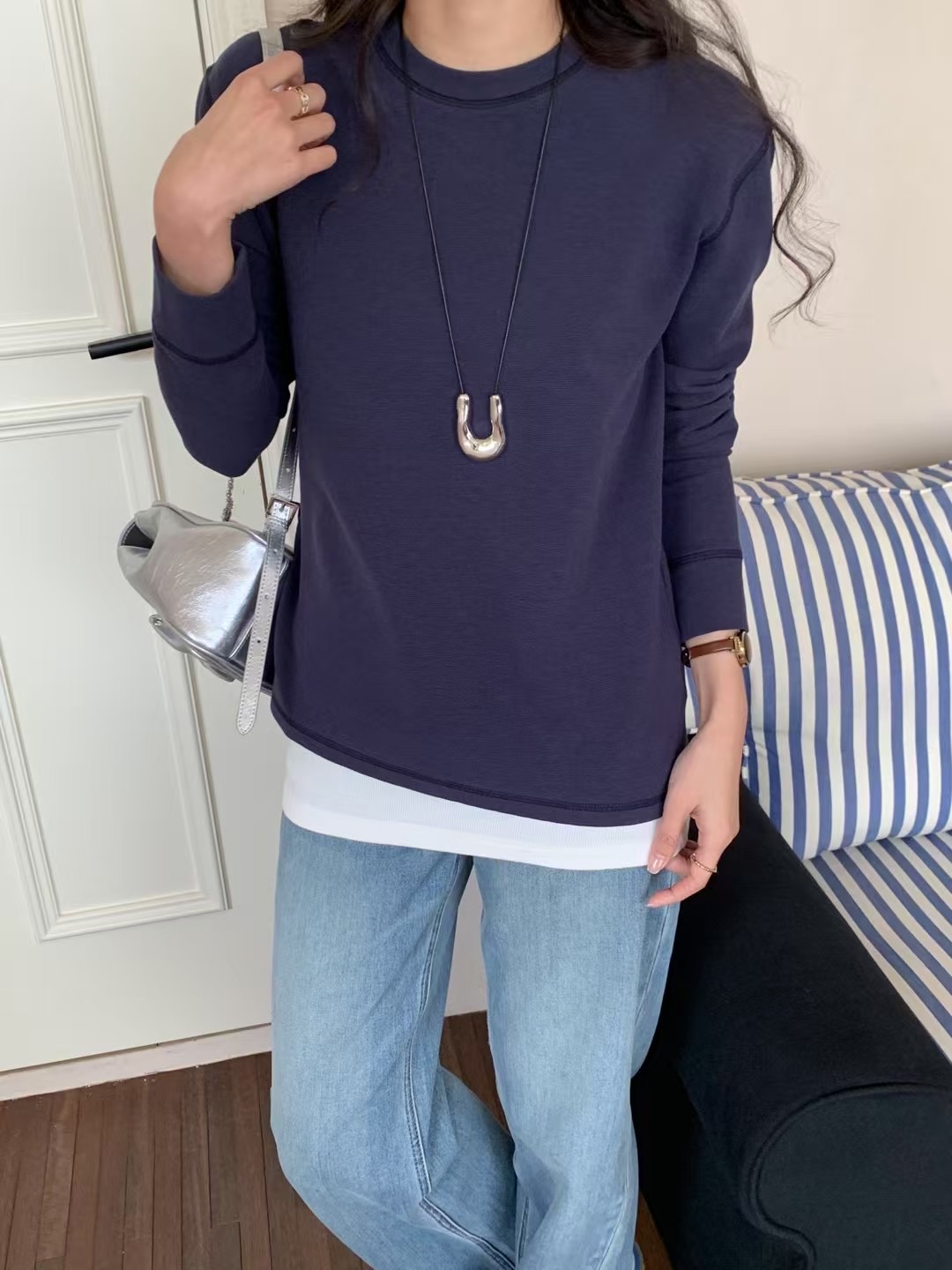 圆领+ 小宽松型,似有微风拂过,恰到好处的温柔 ,