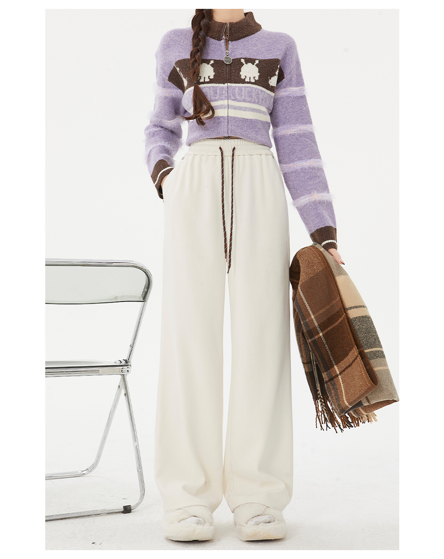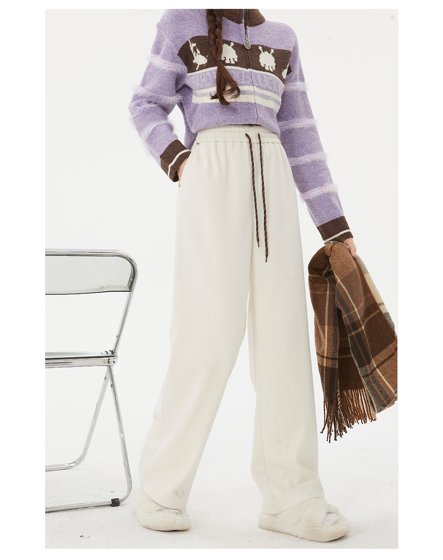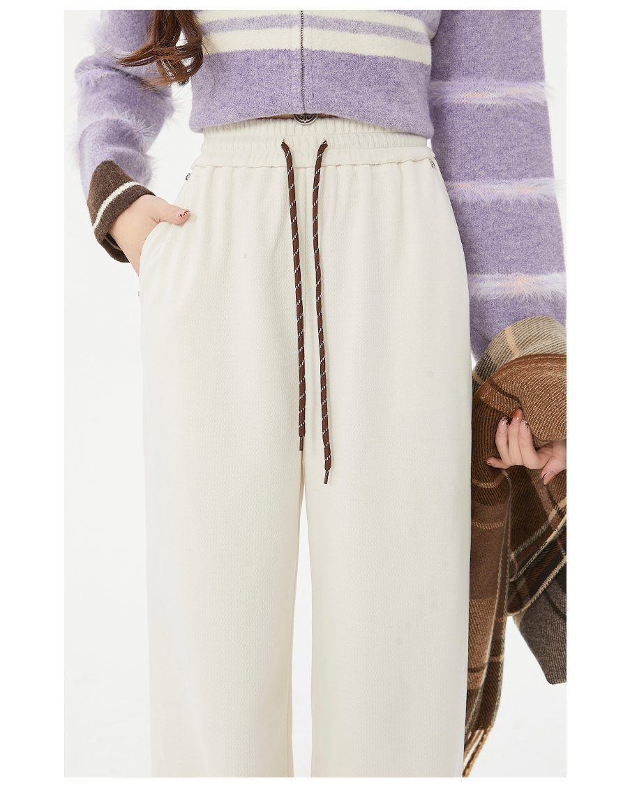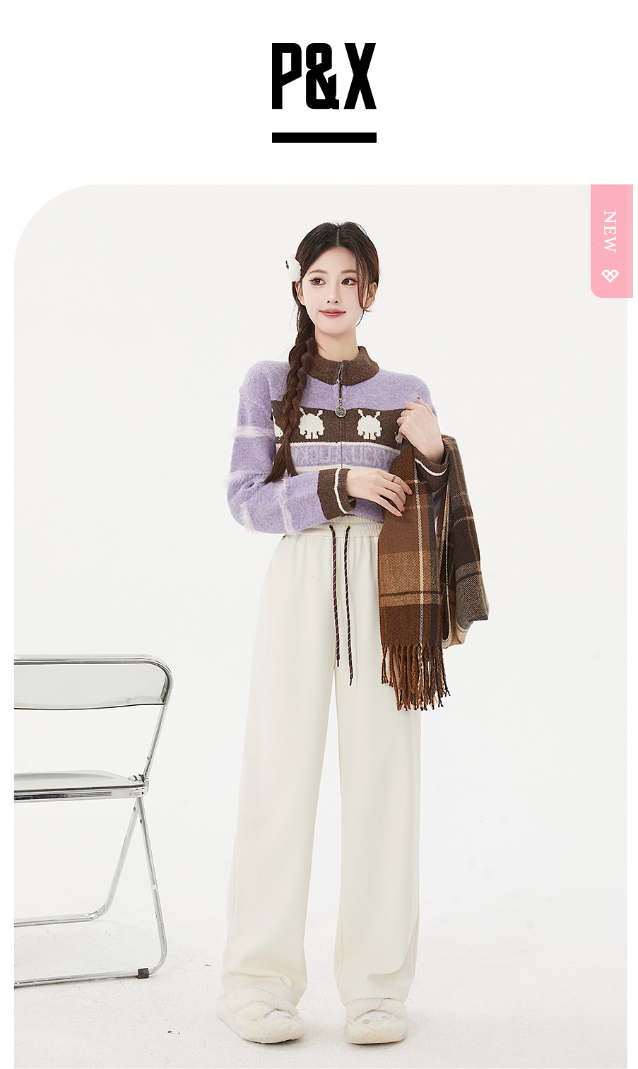 P&X设计师女装新款针织休闲宽松长裤825109089 杏色