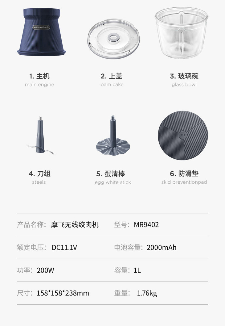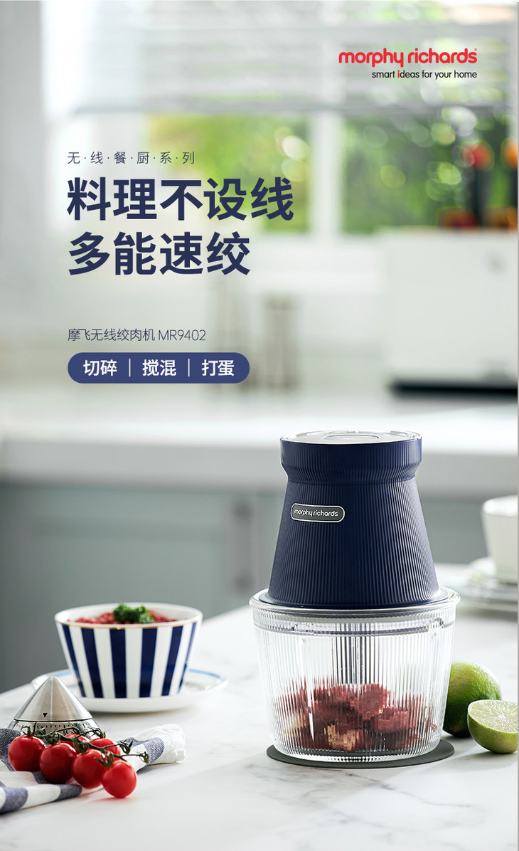 【2020全新上市无线绞肉】摩飞无线绞肉机MR9402全自动电动辅食机多功能绞菜/碎肉搅拌机料理机【摩飞系列】