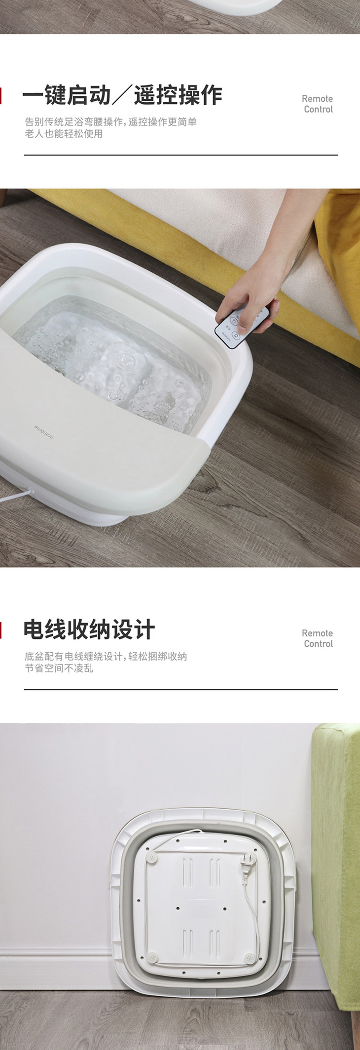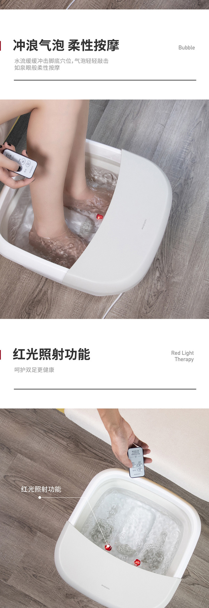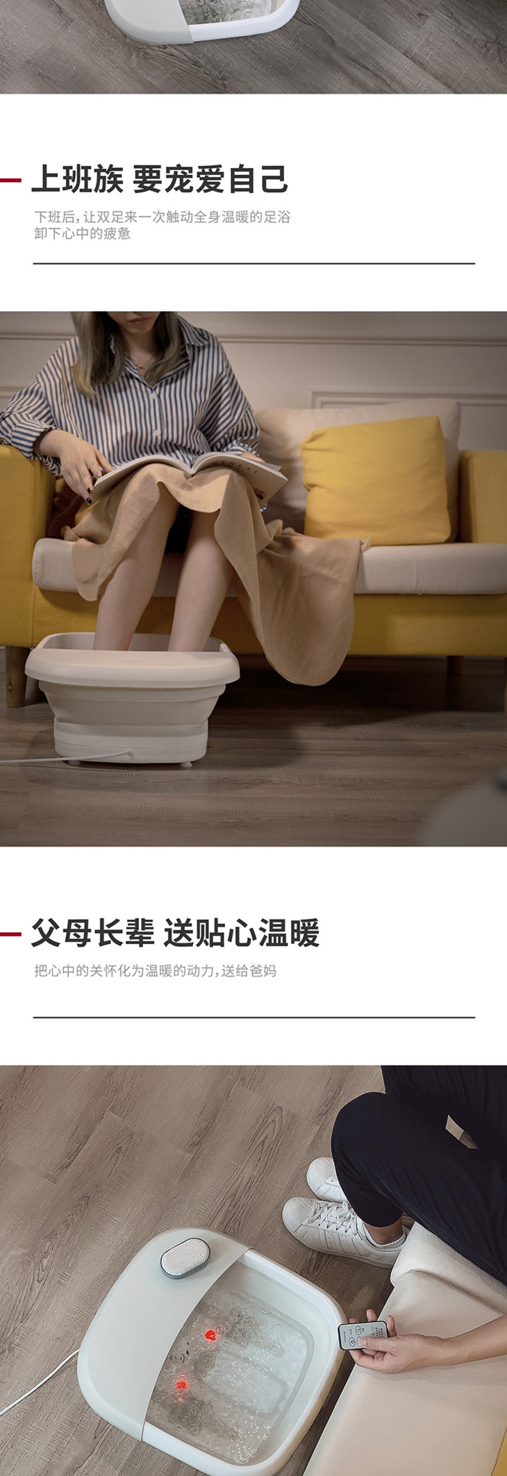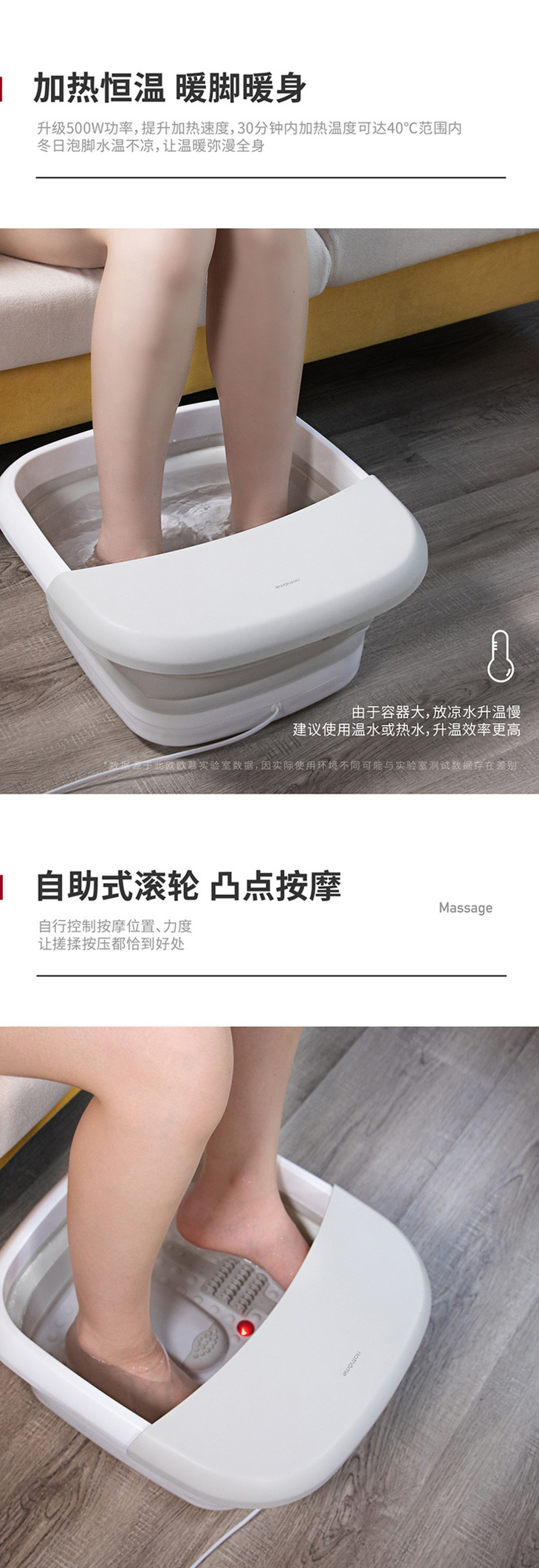 北欧欧慕可折叠足浴盆器自动按摩洗脚盆电动加热家用恒温泡脚桶
