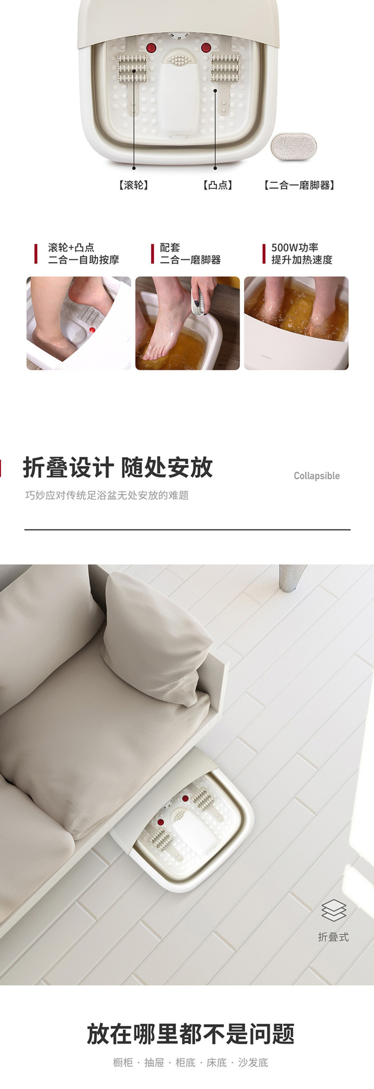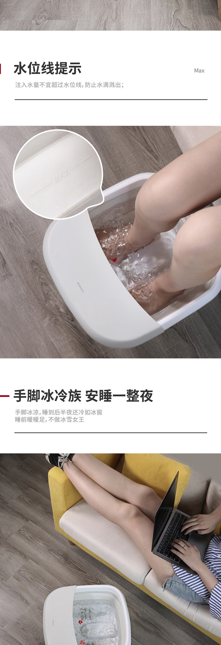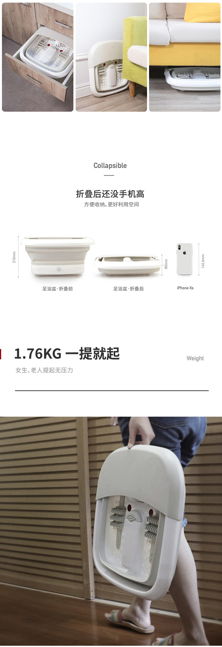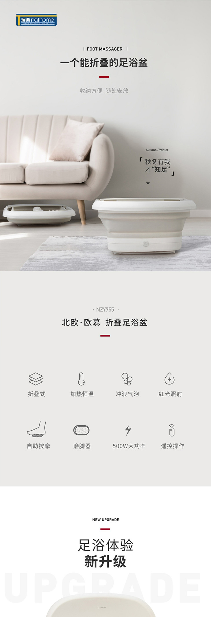 北欧欧慕可折叠足浴盆器自动按摩洗脚盆电动加热家用恒温泡脚桶