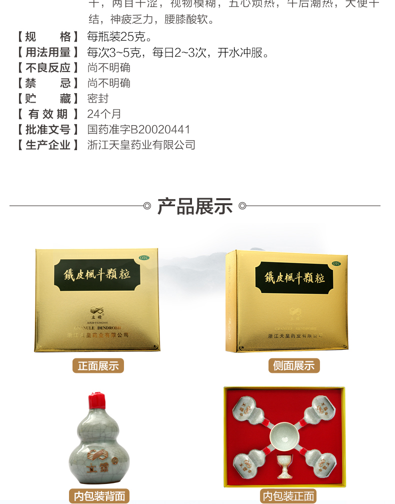 立钻 铁皮枫斗颗粒25g*4瓶/盒益气养阴养胃生津口燥咽干腰膝酸软