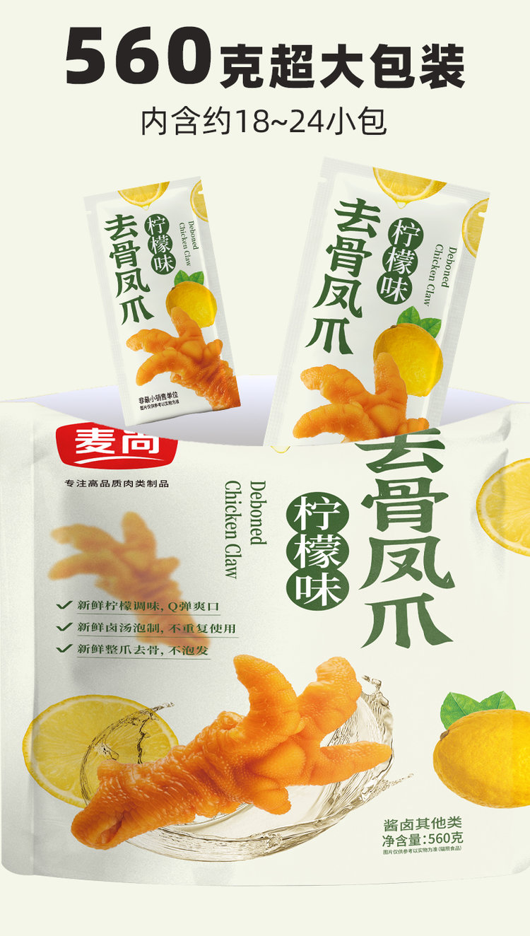 【去骨凤爪 】鲜榨柠檬汁调味清新酸爽 新鲜红油和鲜卤汤泡制香到入骨 整爪去骨不泡发肉感扎实