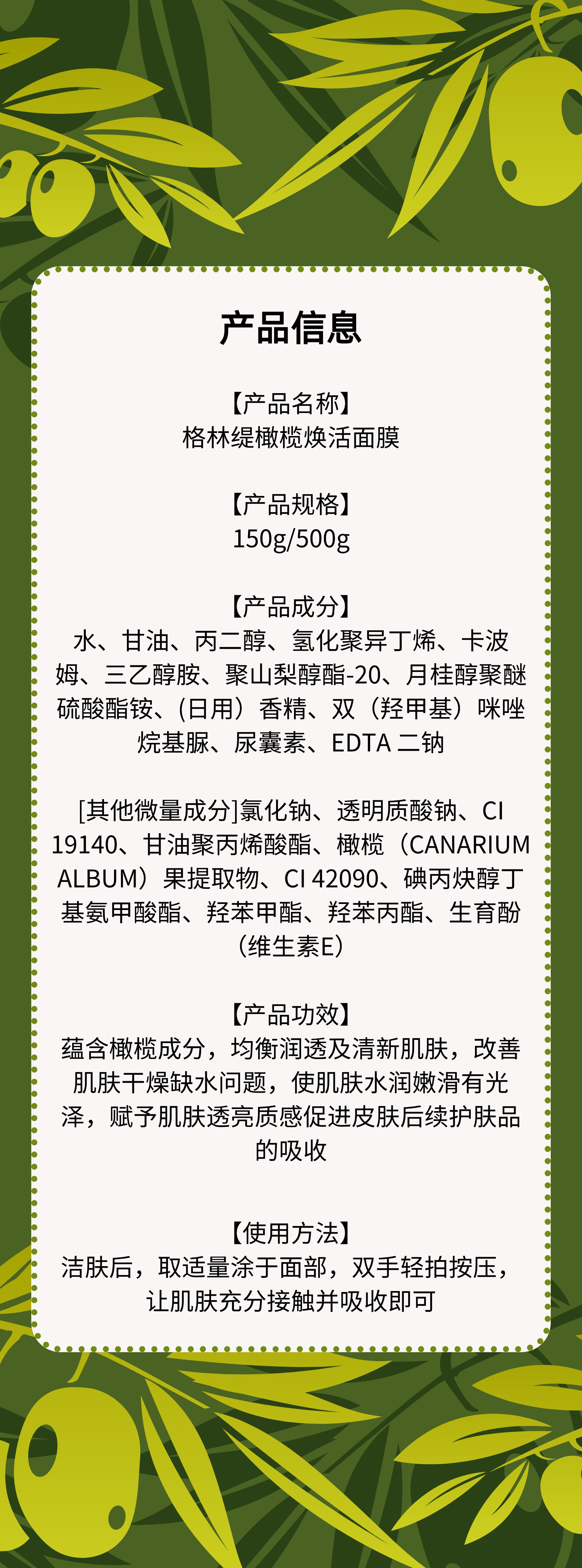 【格林缇】(沙龙装)橄榄润泽保湿面膜500g