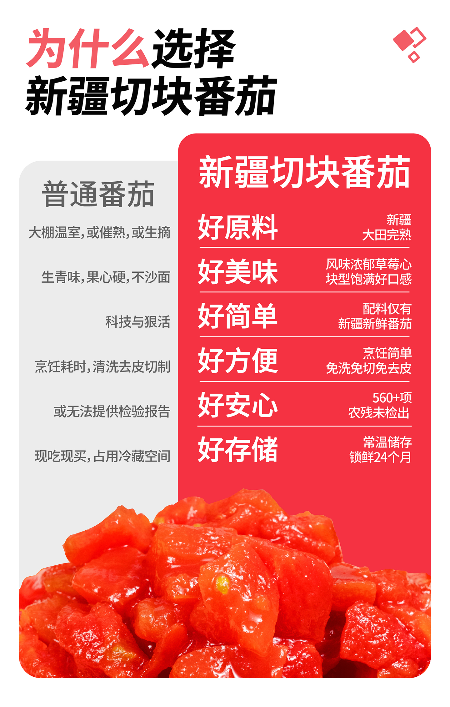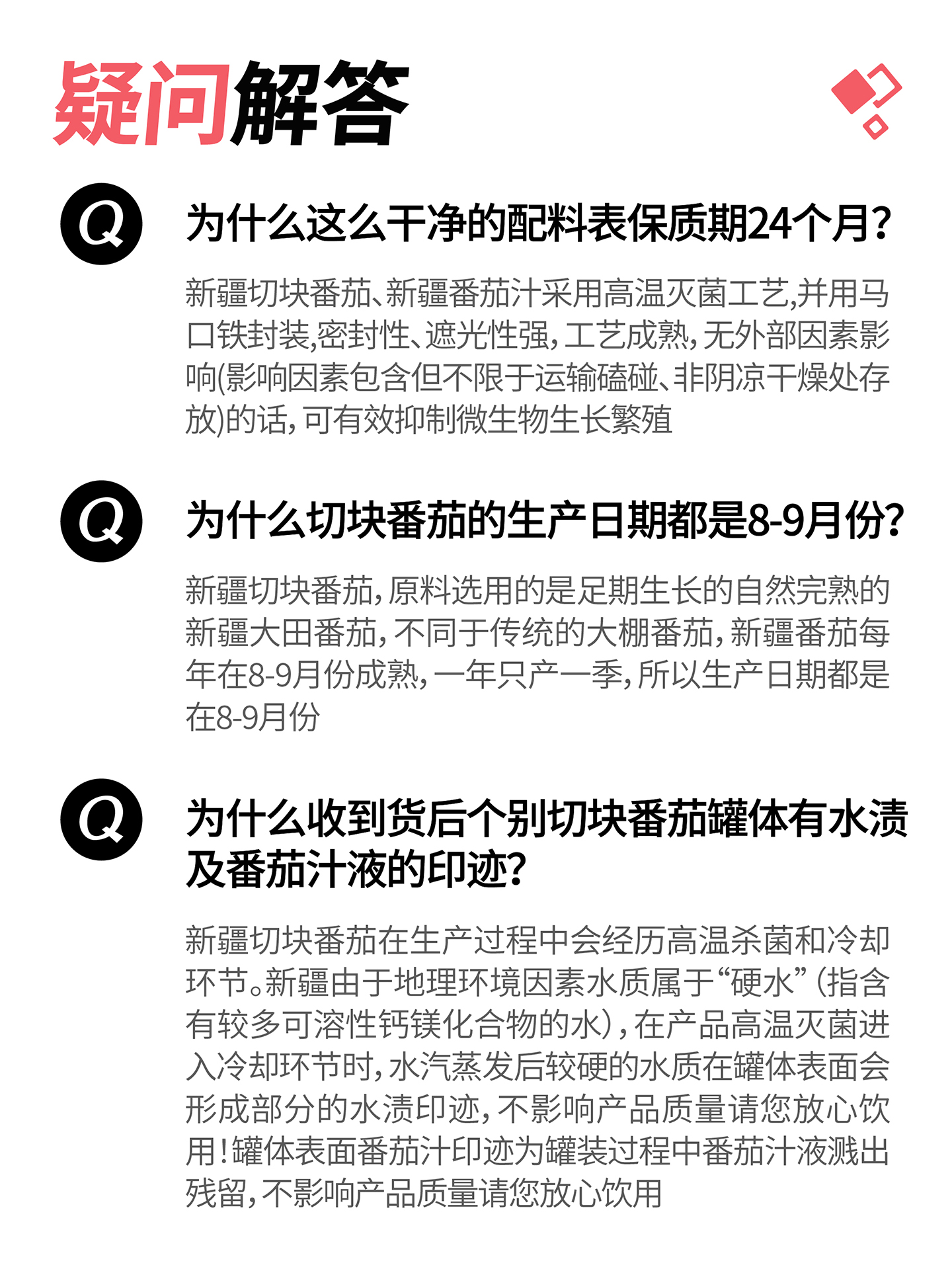 4、0添加香精 / 色素 / 防腐剂 / 添加剂,配料表只有新疆新鲜番茄