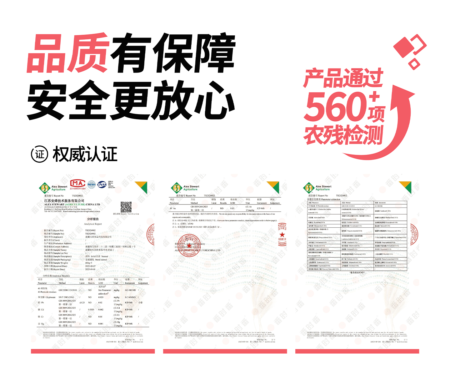 3、不催熟、不催化,非转基因,297项农残检测100%合格