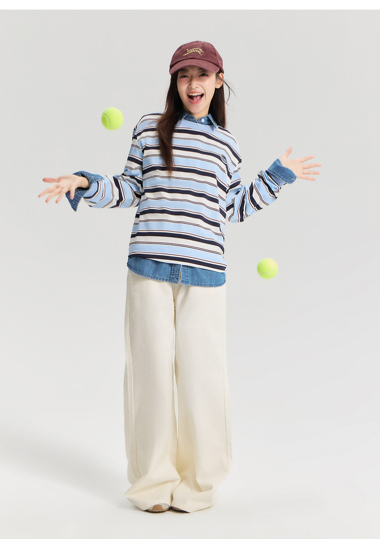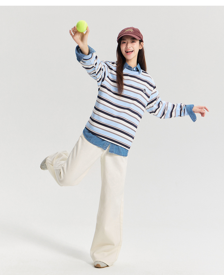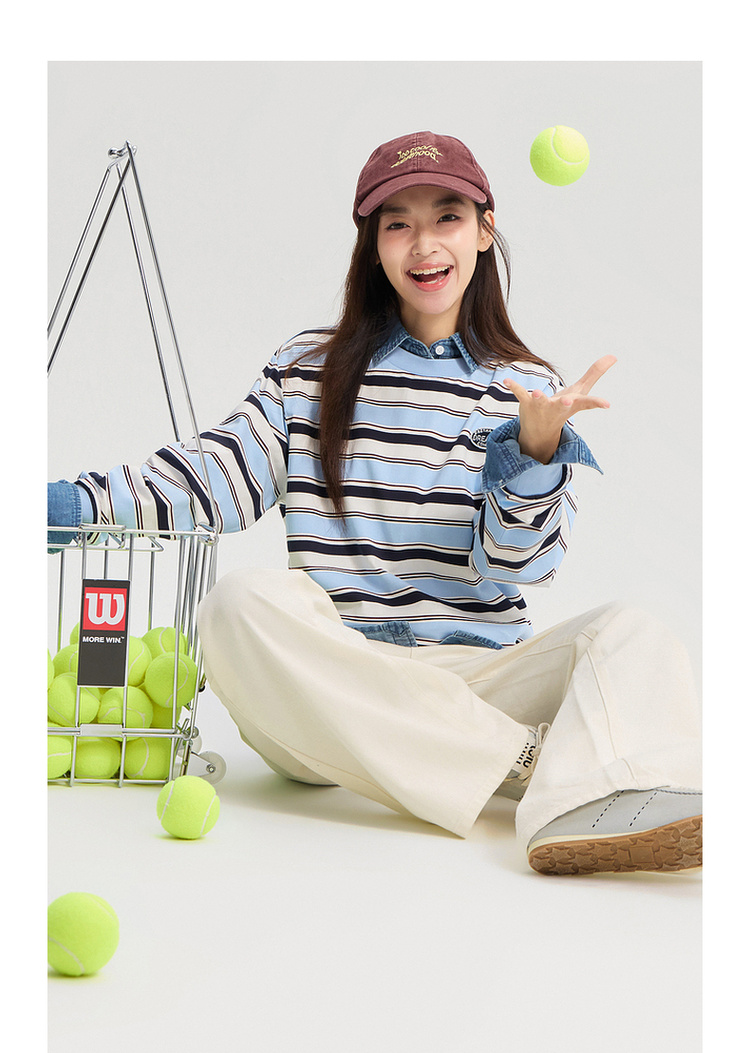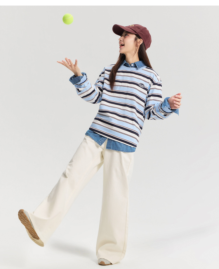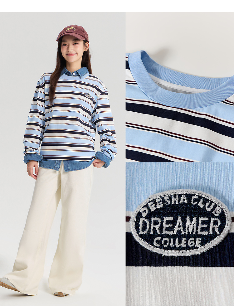 笛莎Deesha青少年女童T恤2026春季女童学院风条纹长袖T恤