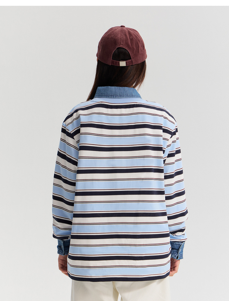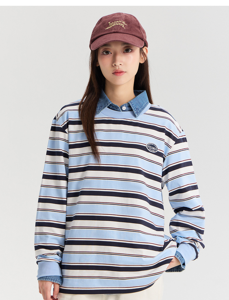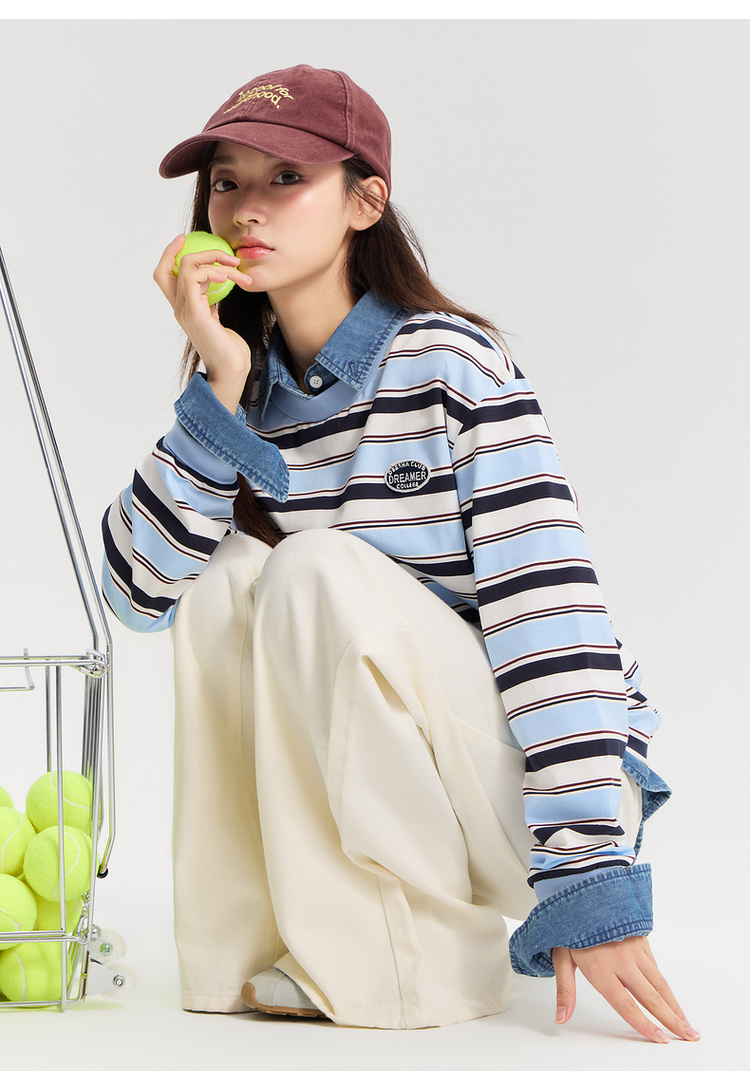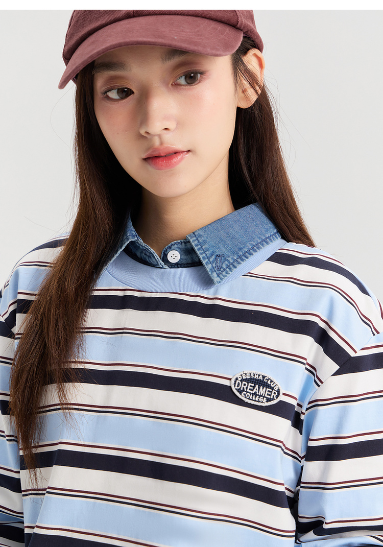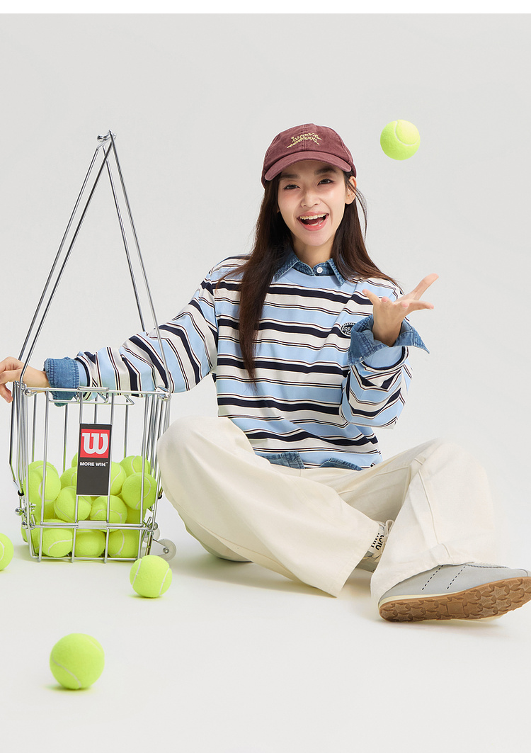 笛莎Deesha青少年女童T恤2026春季女童学院风条纹长袖T恤