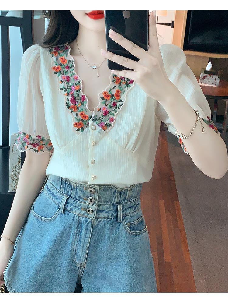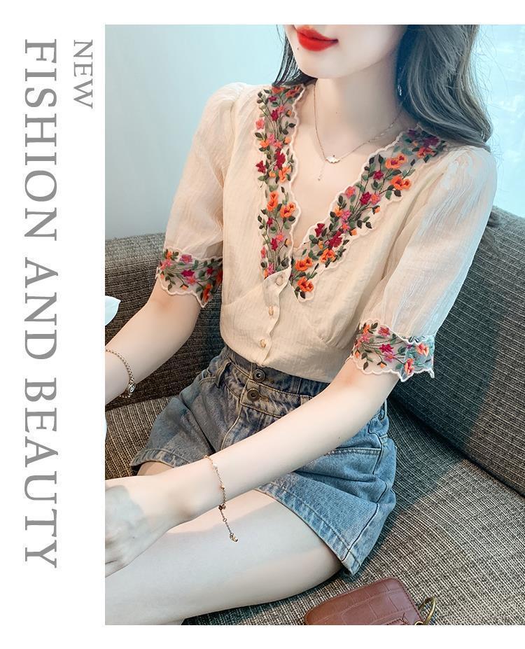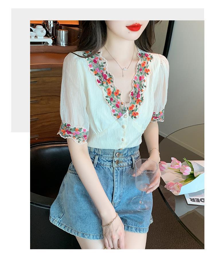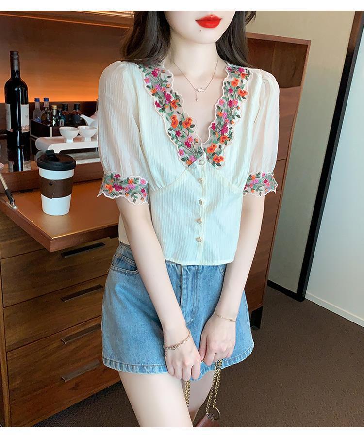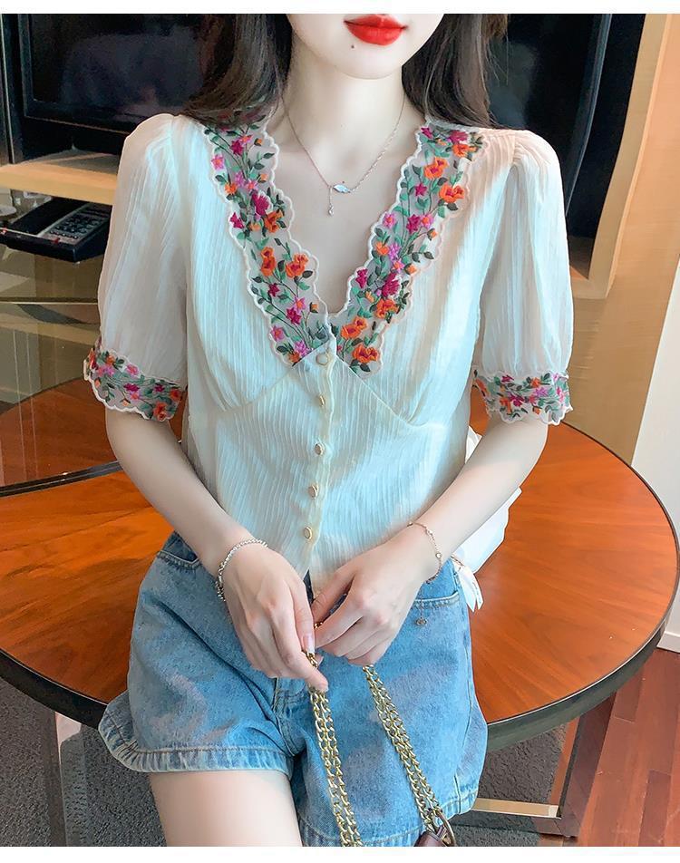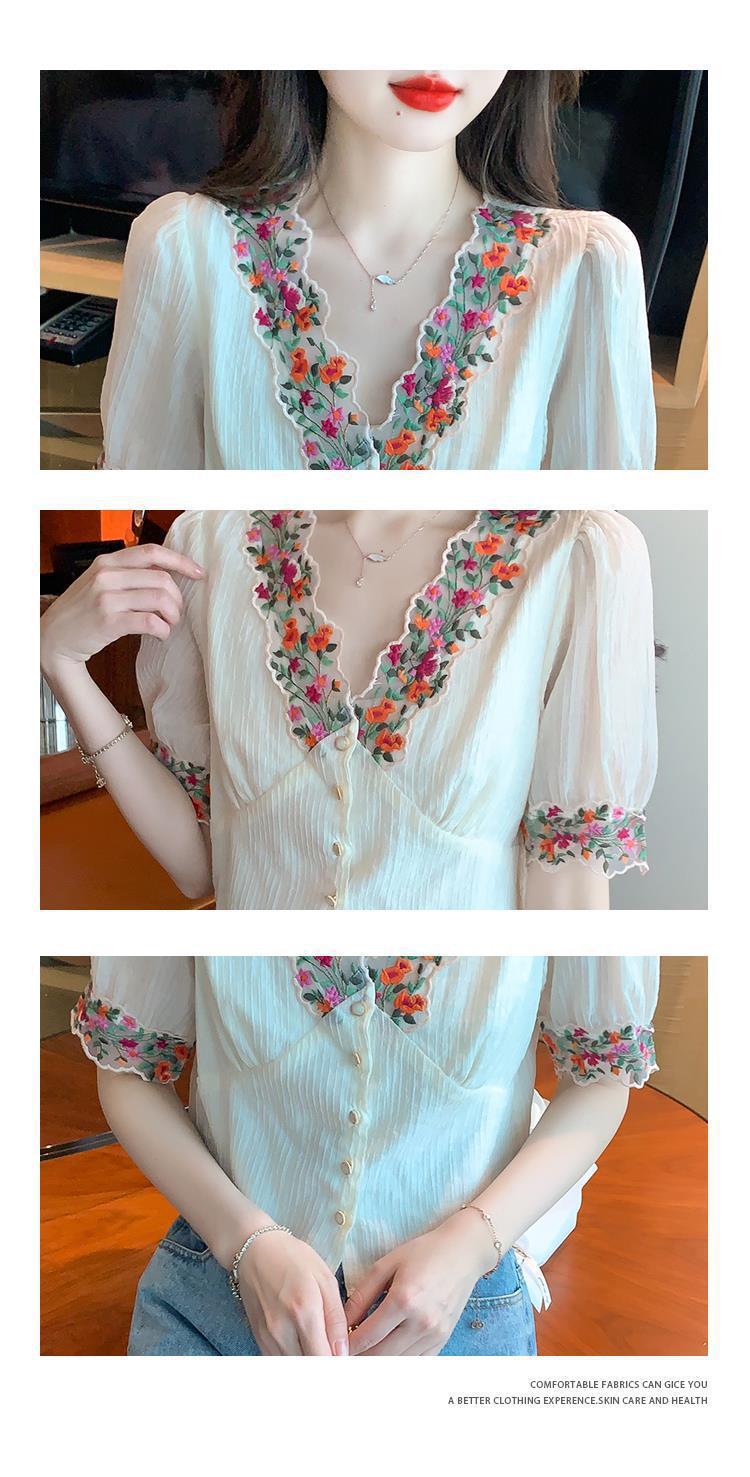 田园轻熟风,甜美碎花气质v领雪纺衬衫KQL-315T7813
