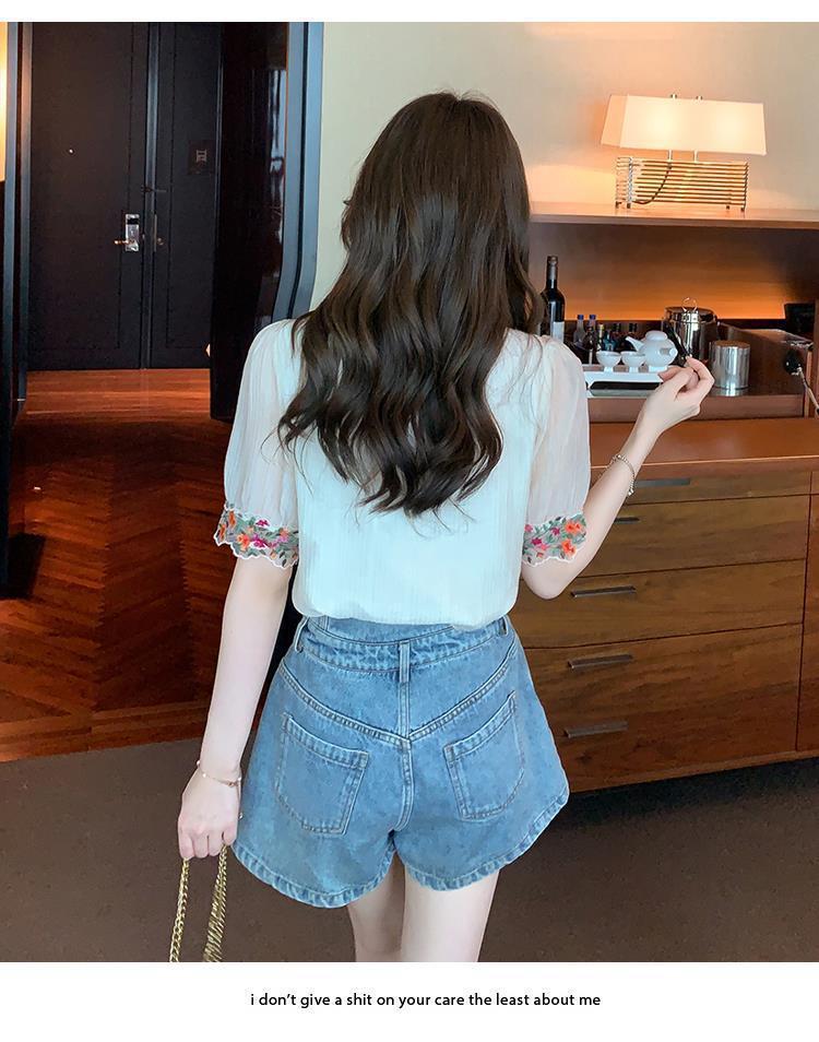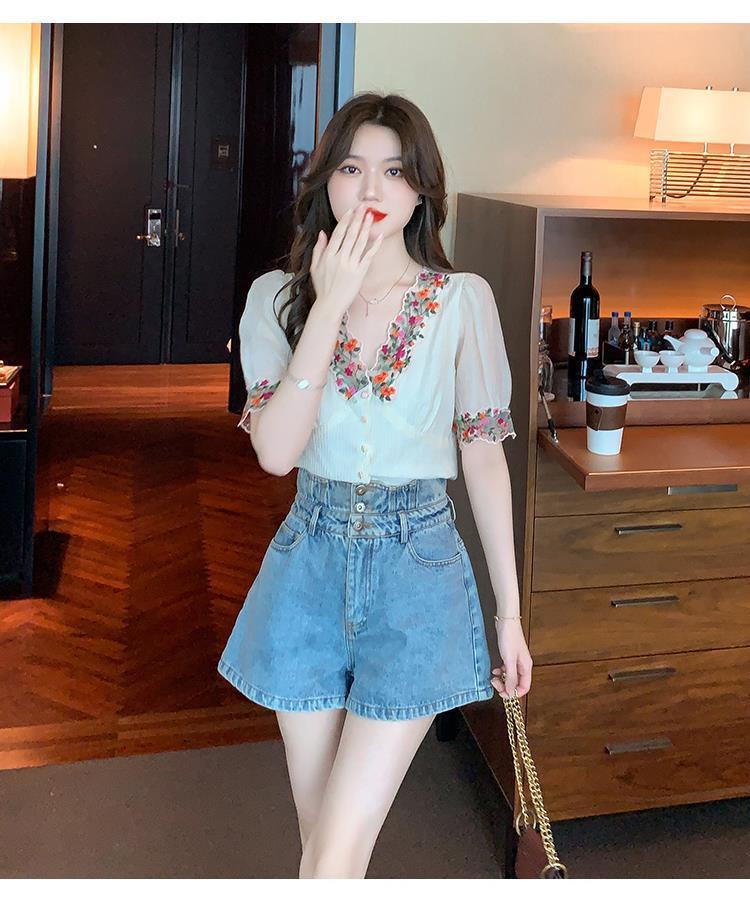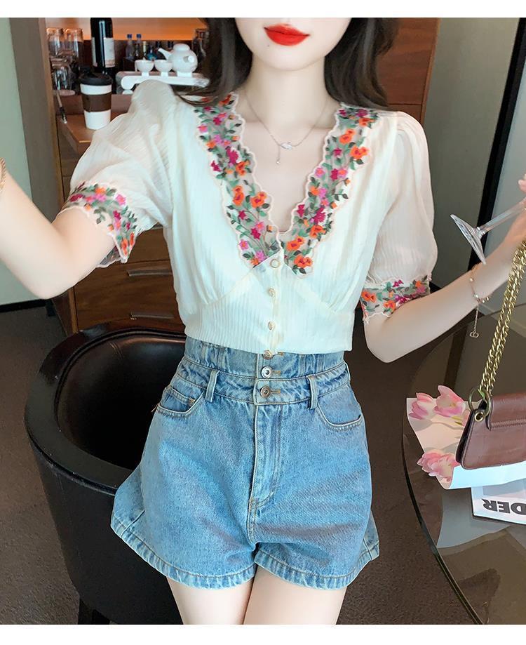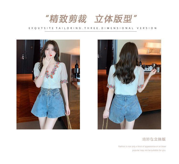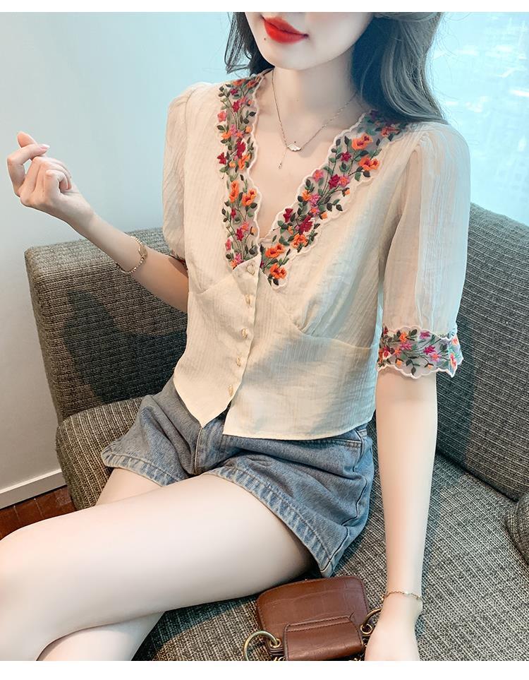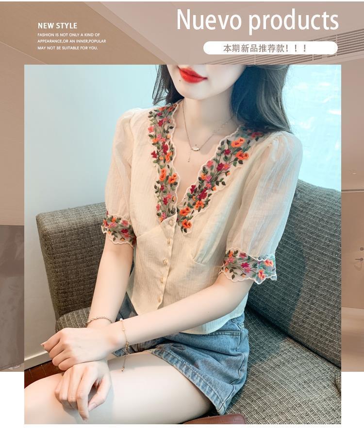 田园轻熟风,甜美碎花气质v领雪纺衬衫KQL-315T7813