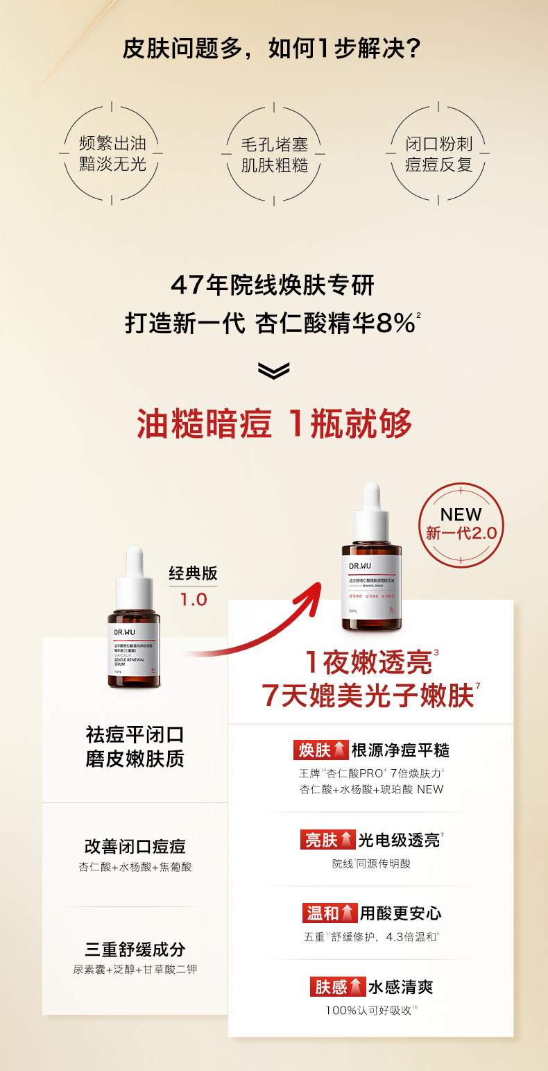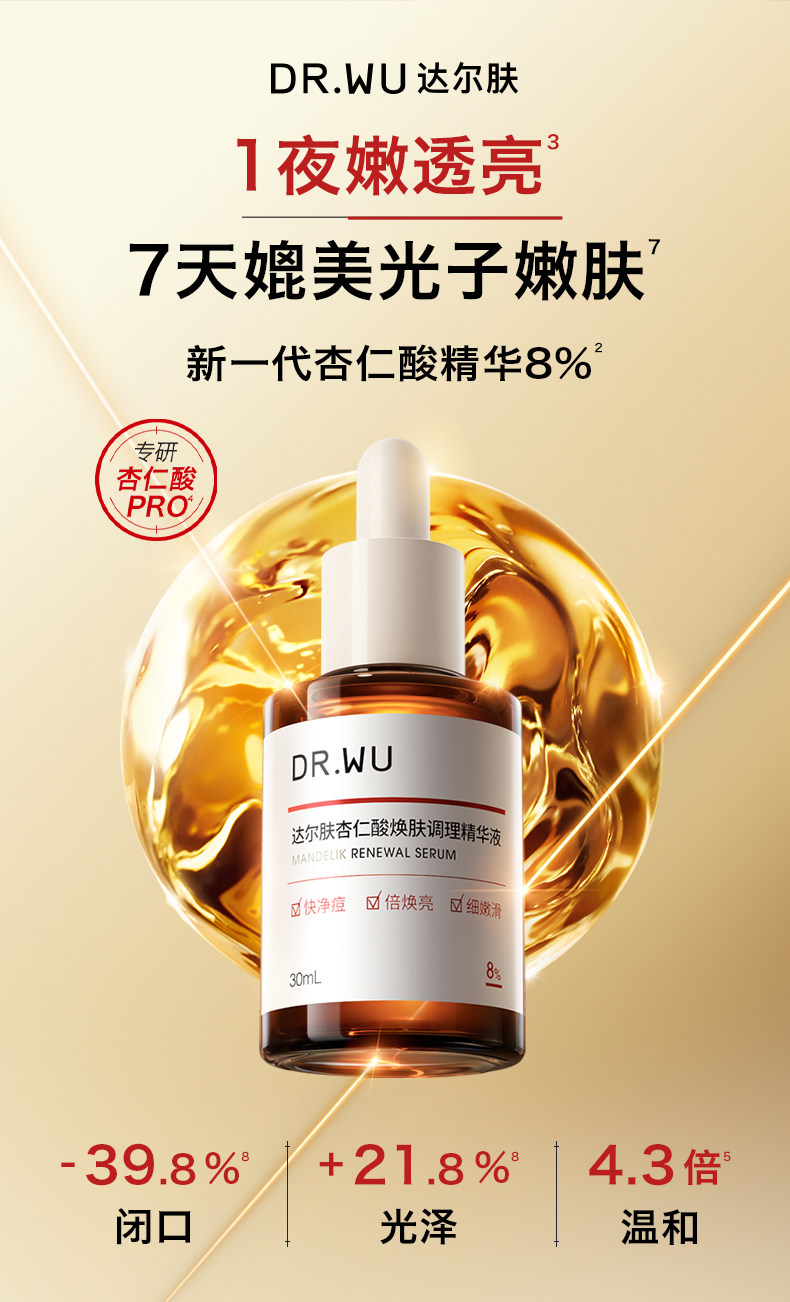 DR.WU达尔肤杏仁酸精华8% 祛痘精华液护肤品去闭口