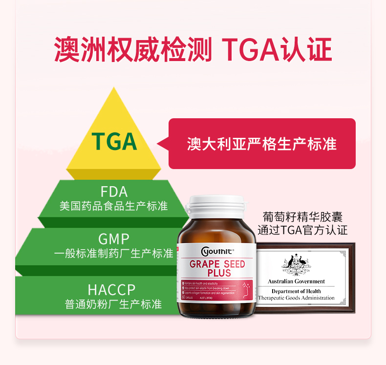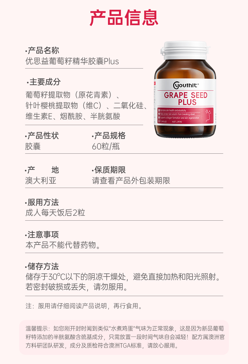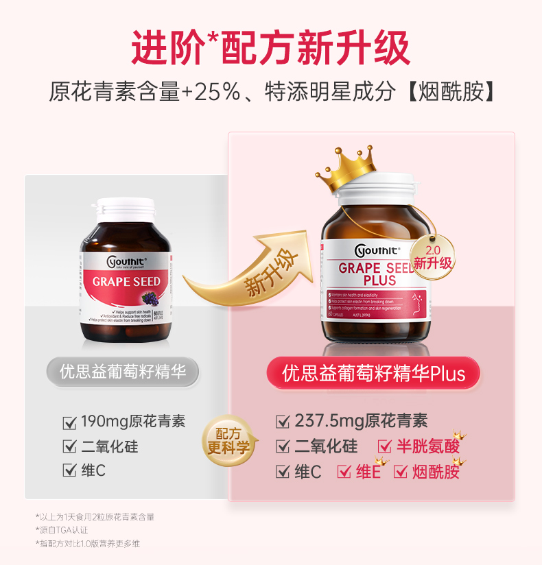 【澳洲进口】Youthit优思益葡萄籽粉胶囊精华胶VC原花青素女内服成人