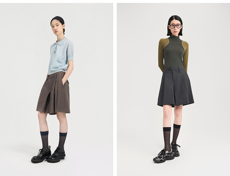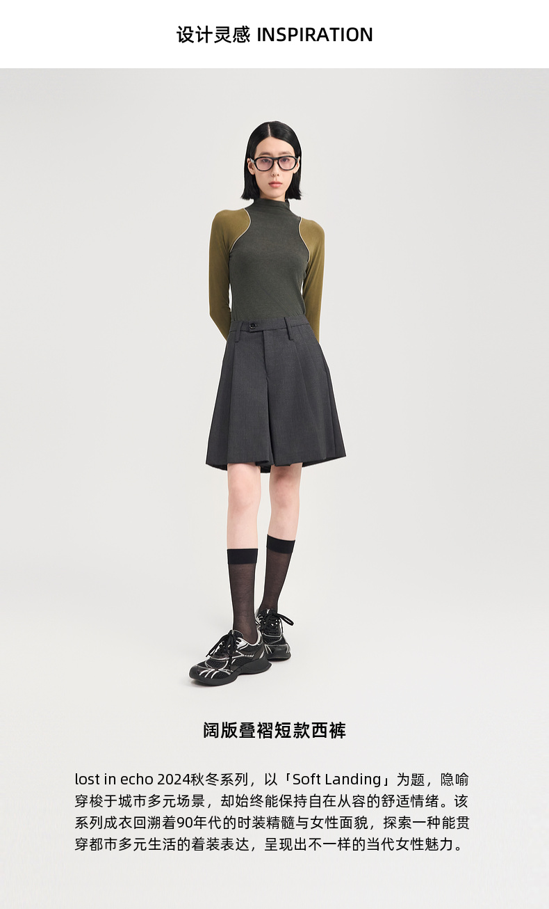 lost in echo2024秋冬新品时尚显瘦羊毛直筒阔腿短款西裤休闲裤女
