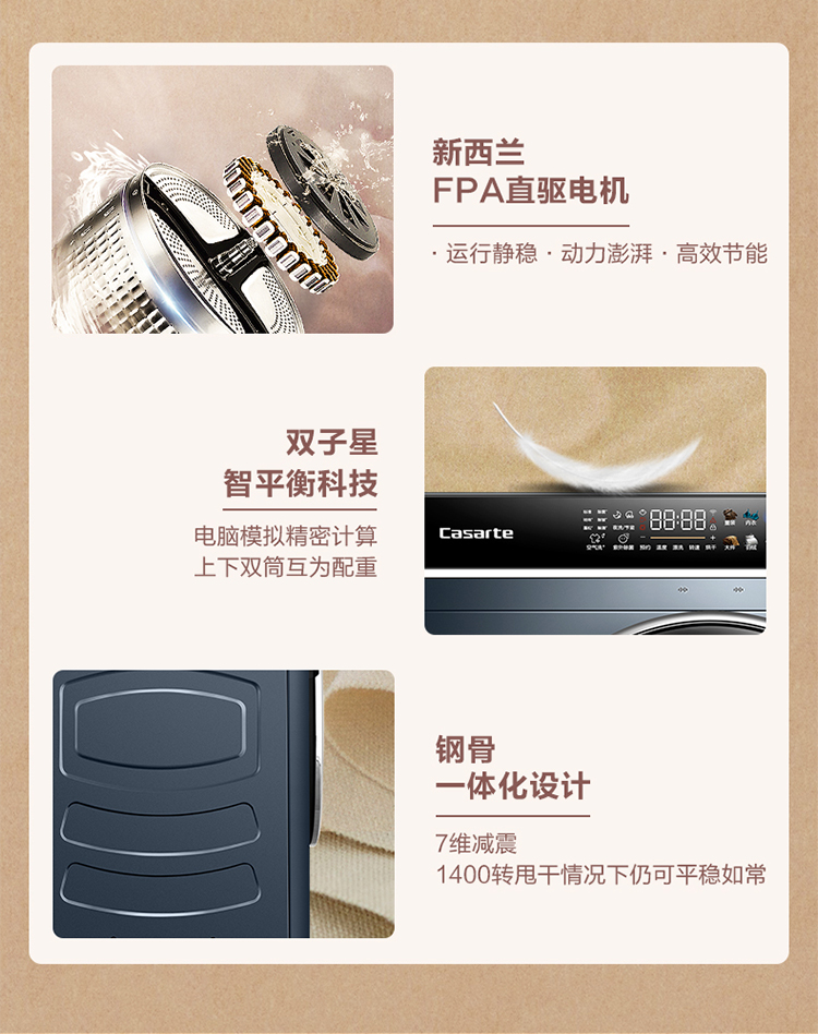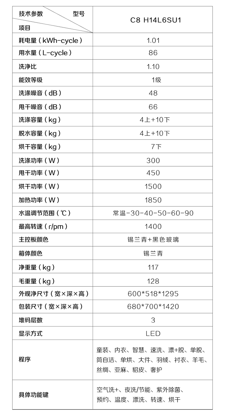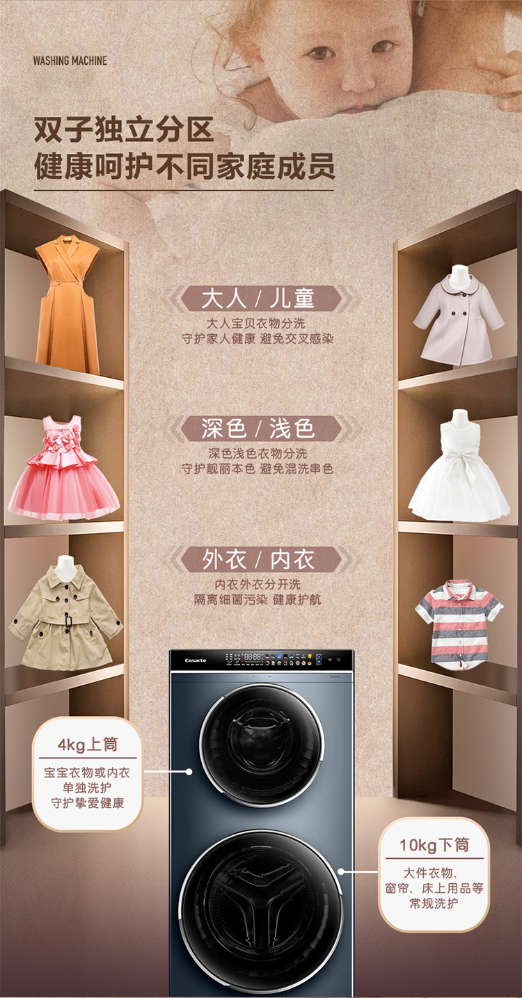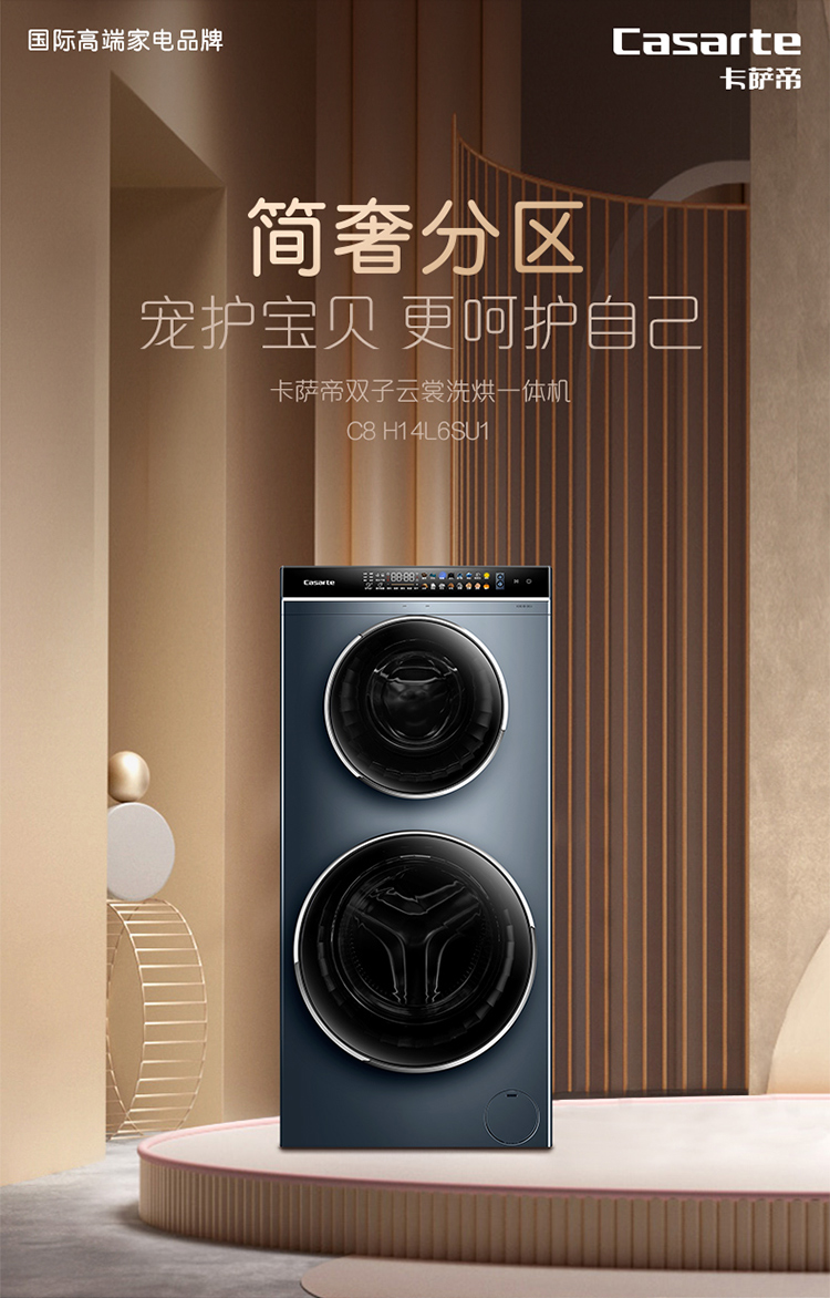 卡萨帝(Casarte) 14公斤直驱变频双子滚筒洗衣机分区洗护智能柔烘蒸汽空气洗 14公斤双子+带烘干L6S+WIFI C8H14L6SU1