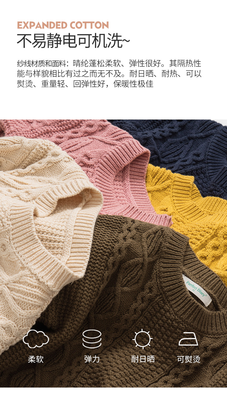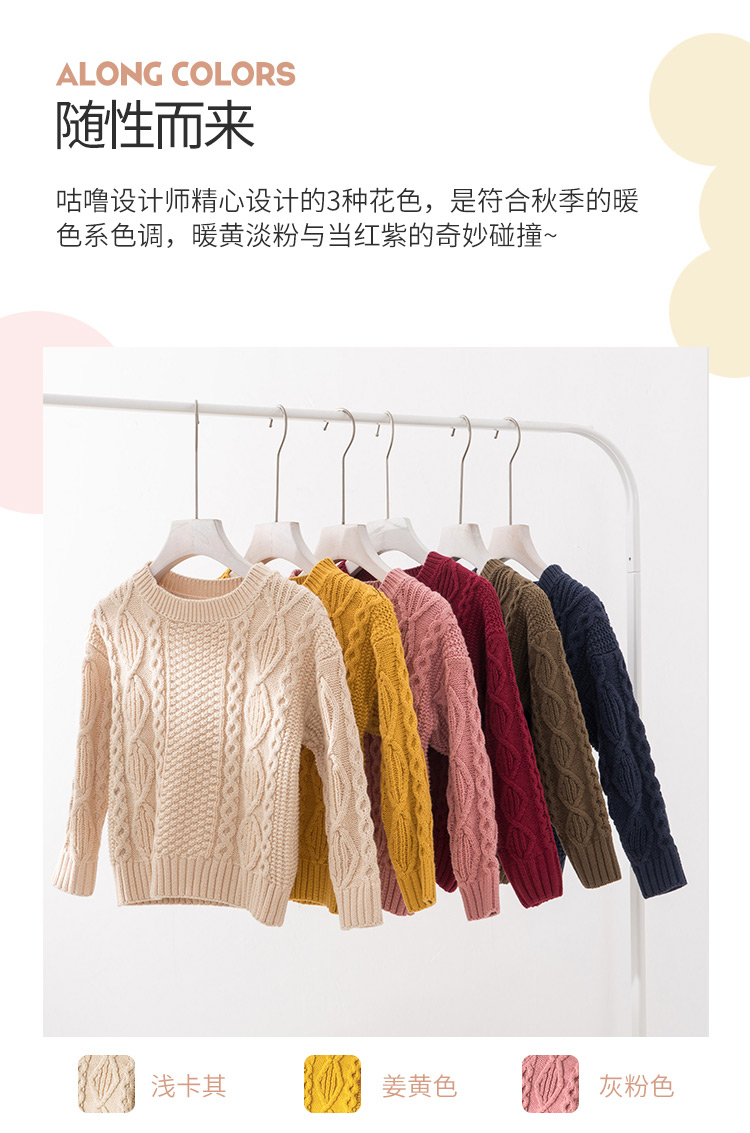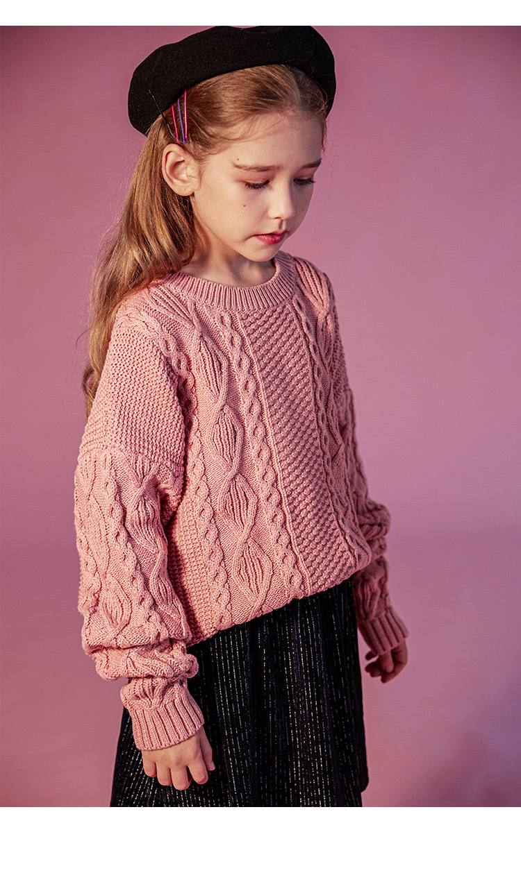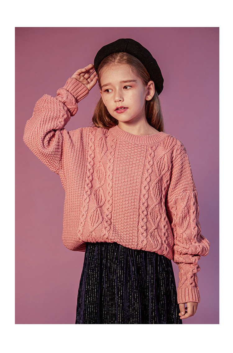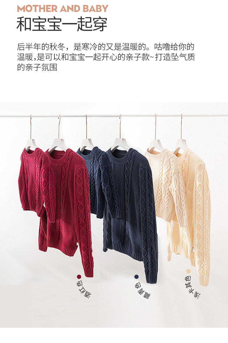 【100元任选5件】奶油系亲子款-温柔慵懒的多色圆领麻花毛衣~dzx801