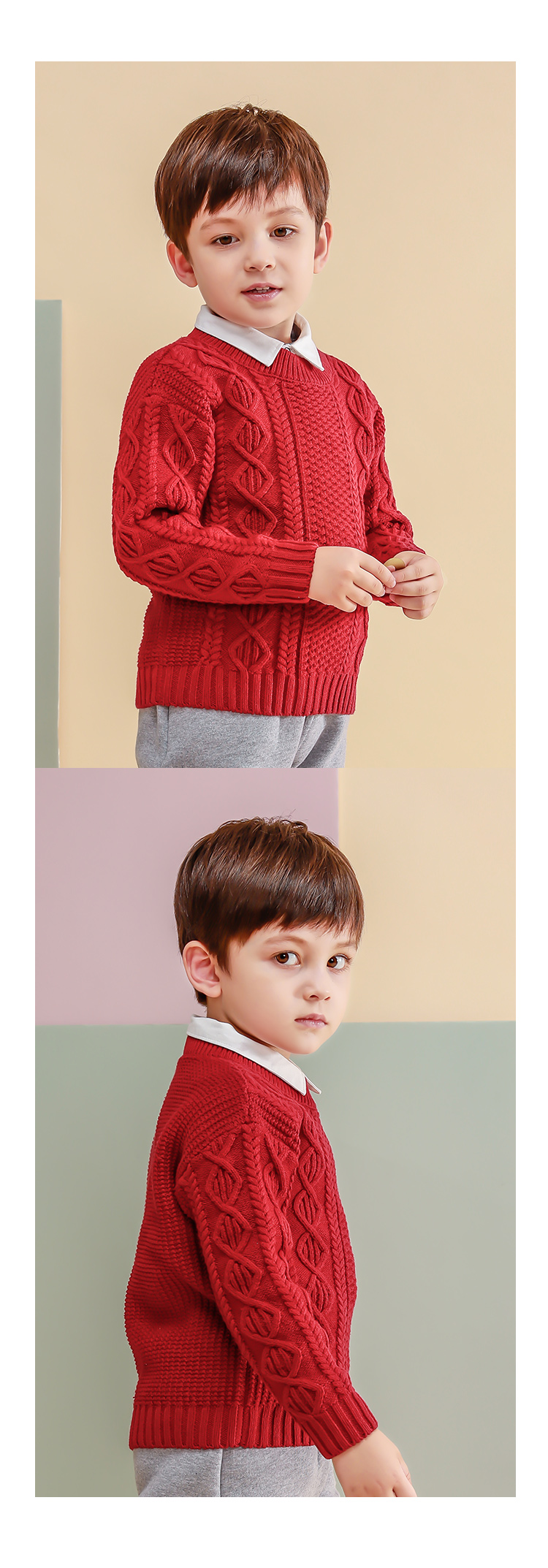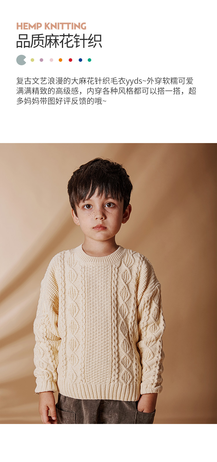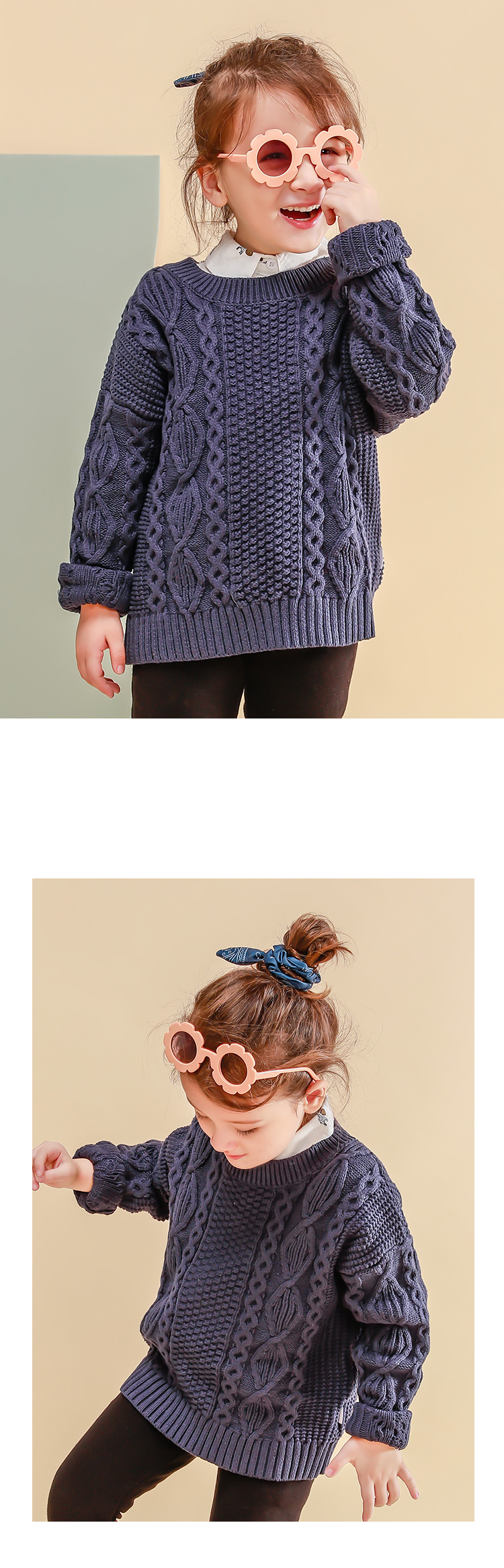 【100元任选5件】奶油系亲子款-温柔慵懒的多色圆领麻花毛衣~dzx801