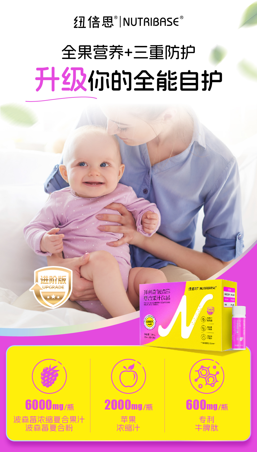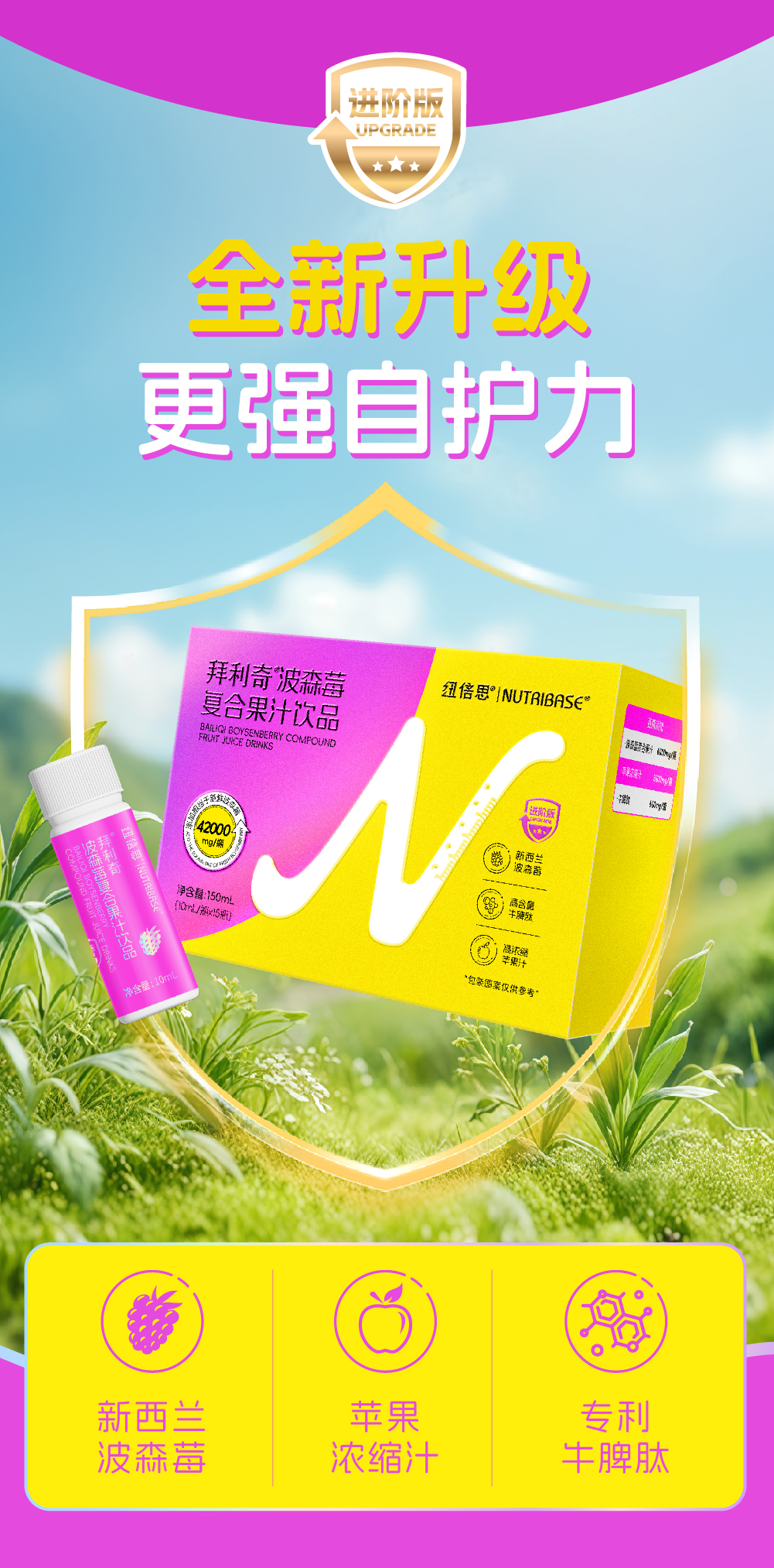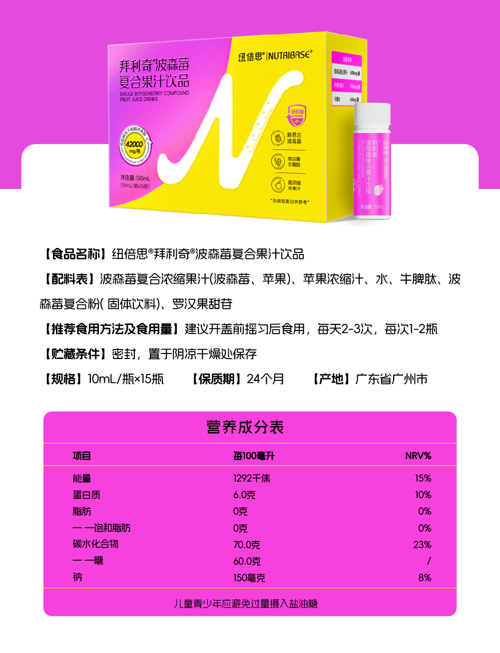 ² 【升级版纽倍思专利波森莓浓缩款】每瓶含6000mg浓缩波森莓+牛脾肽600mg 酸酸甜甜 果汁口感10ml*15瓶/盒 HM02-CRMM-NBS