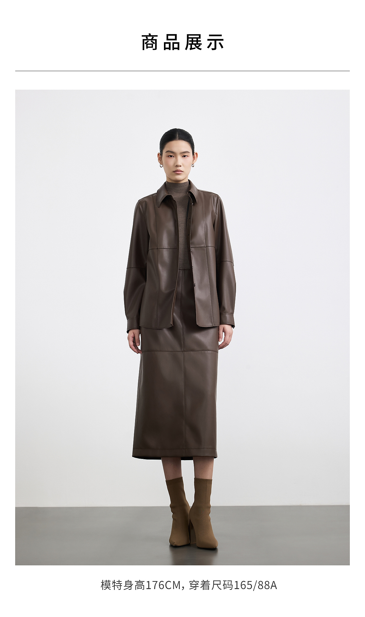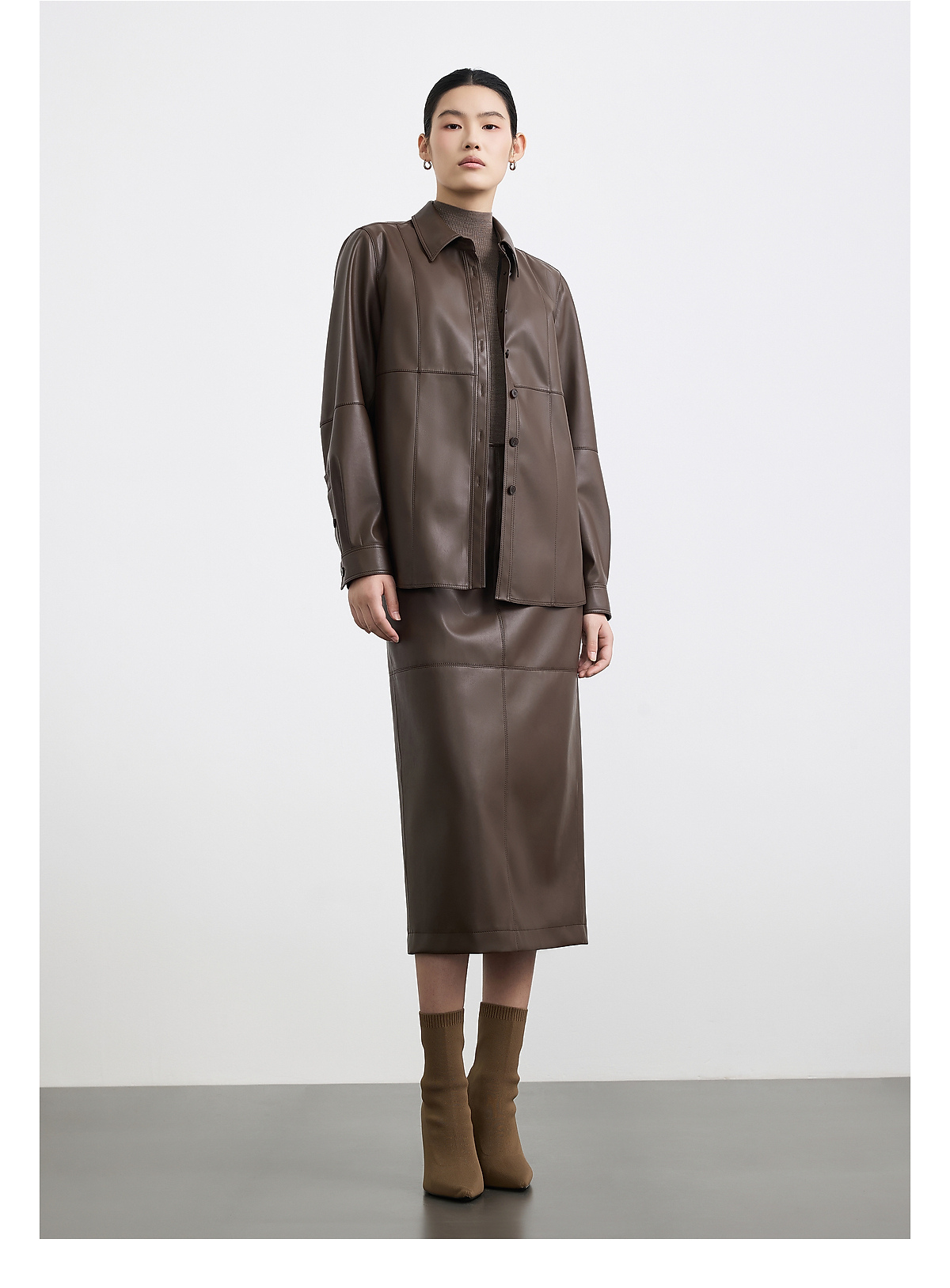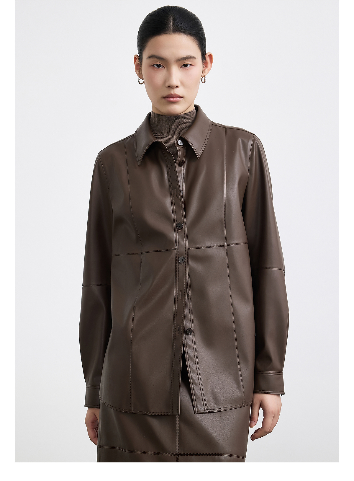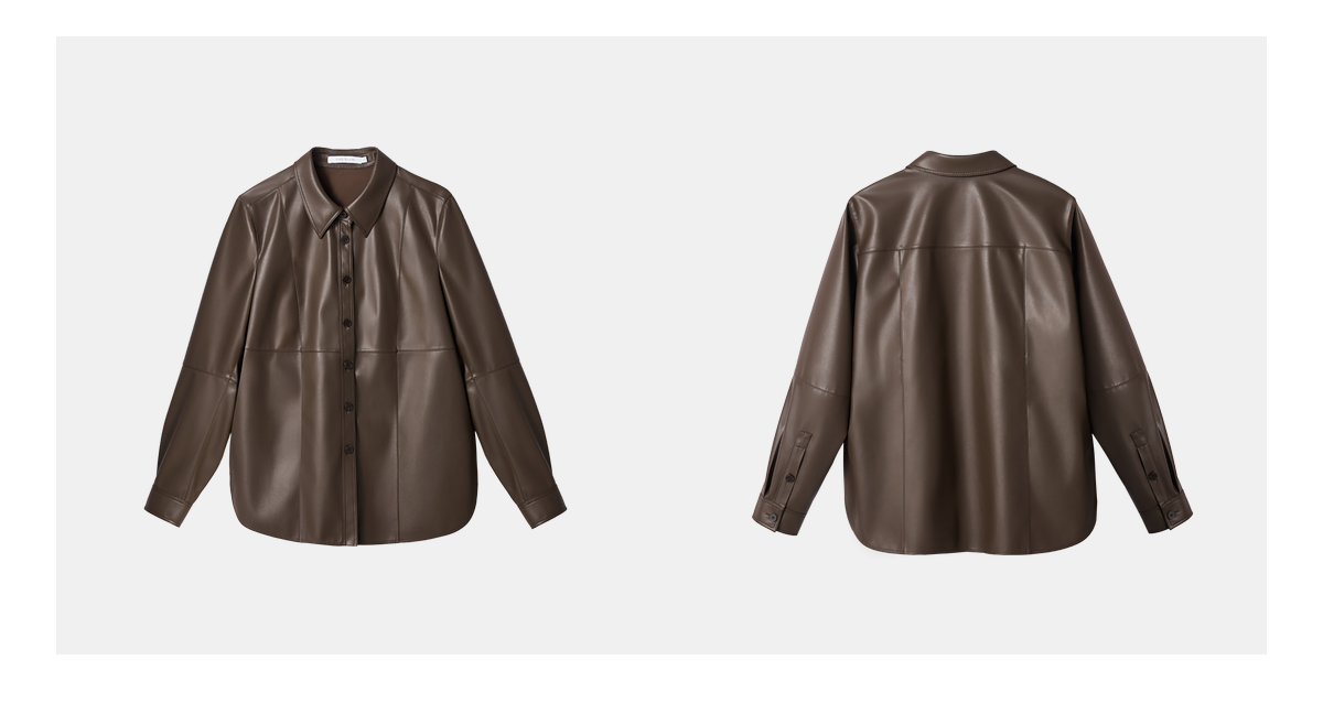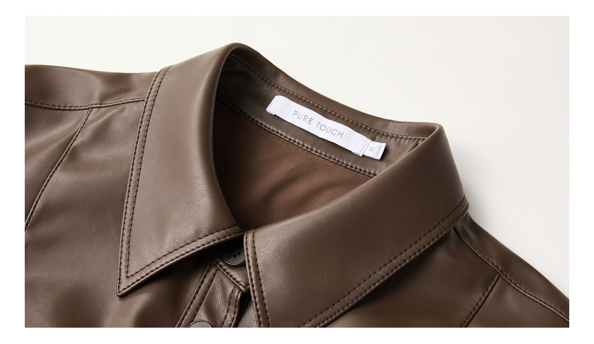 商场同款PURE TOUCH女装25秋冬新款PU皮革长袖衬衫结构设计衬衣