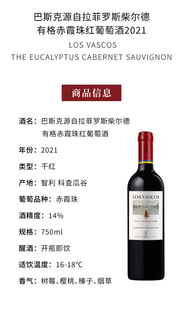巴斯克源自拉菲罗斯柴尔德有格赤霞珠红葡萄酒 750ml/瓶