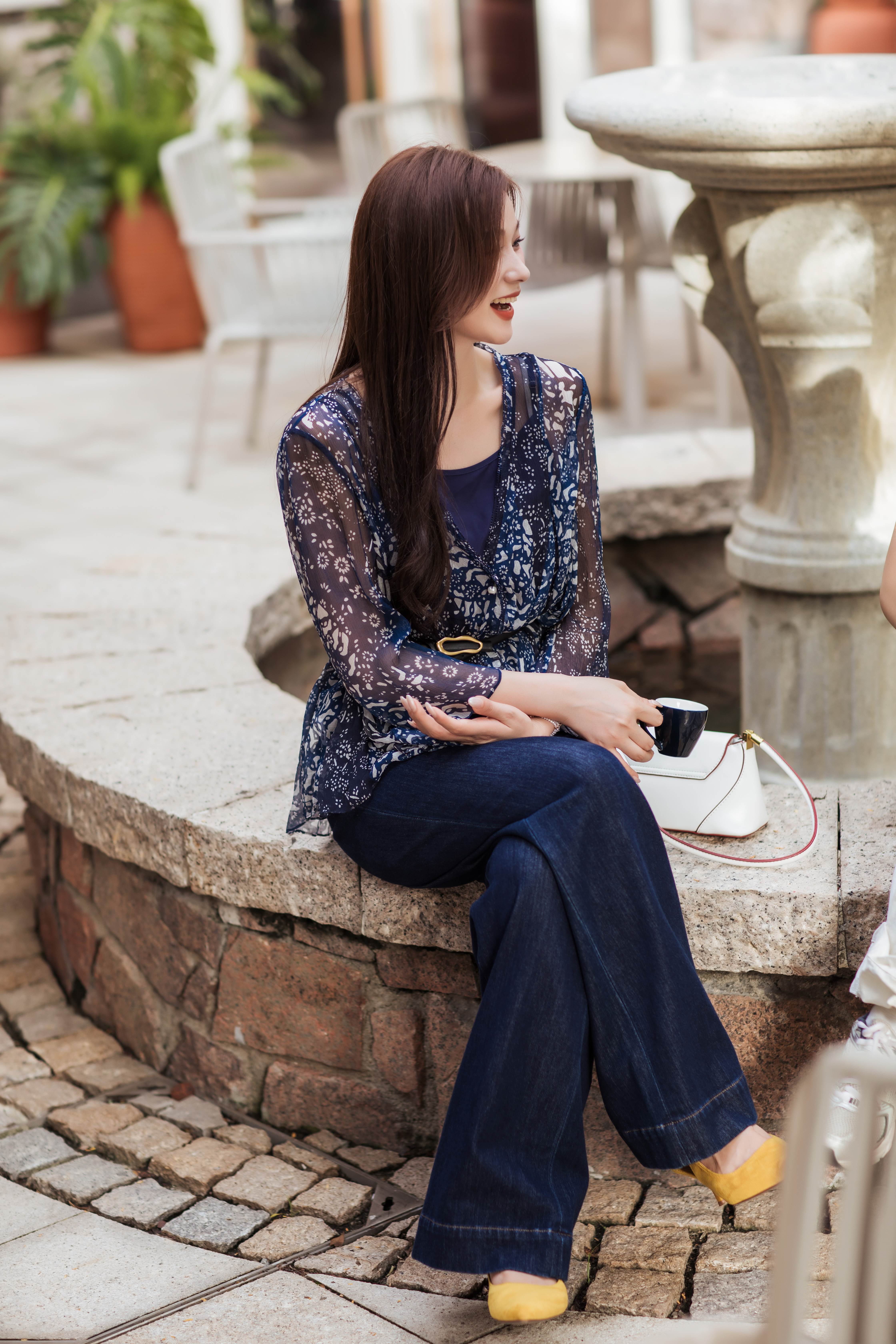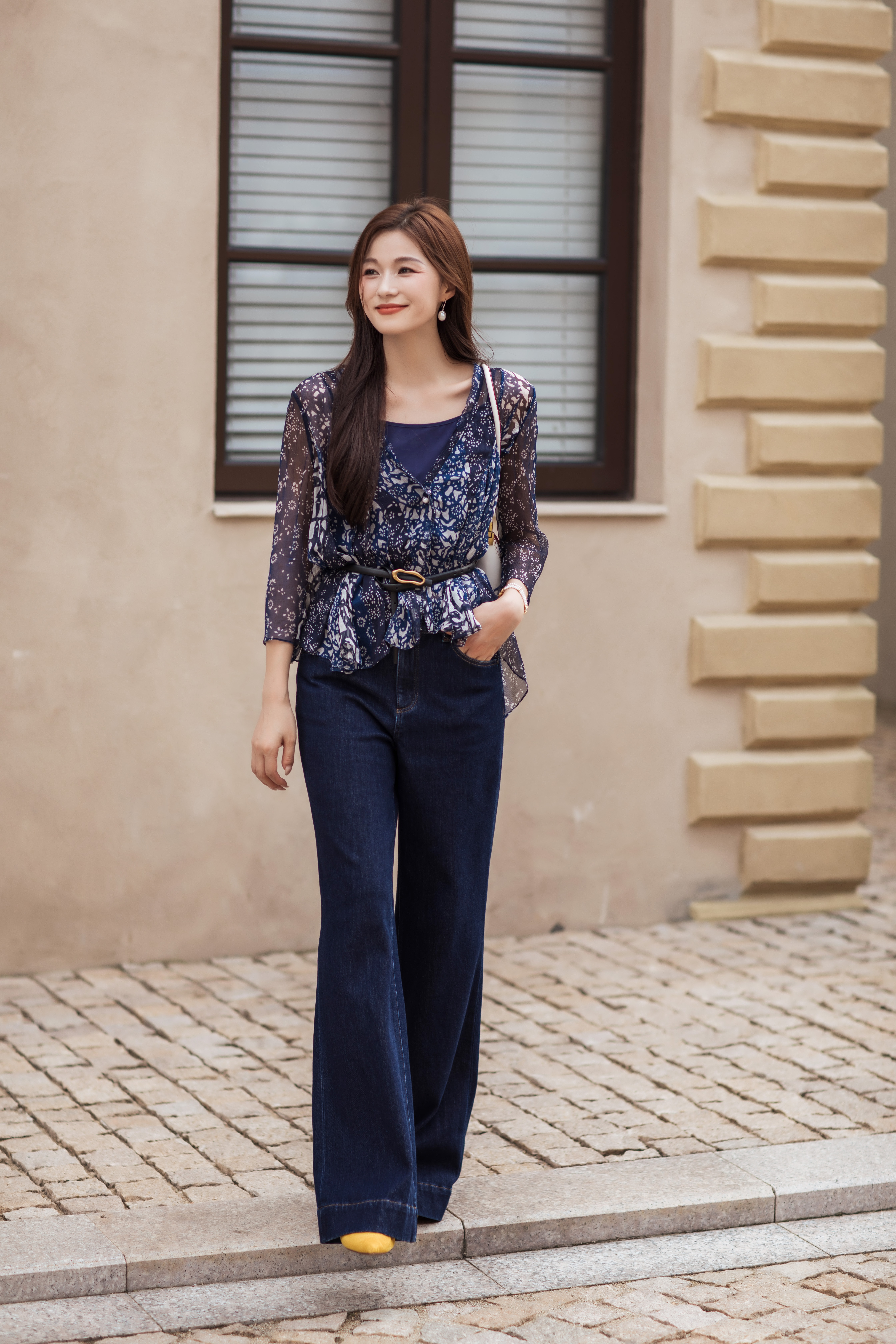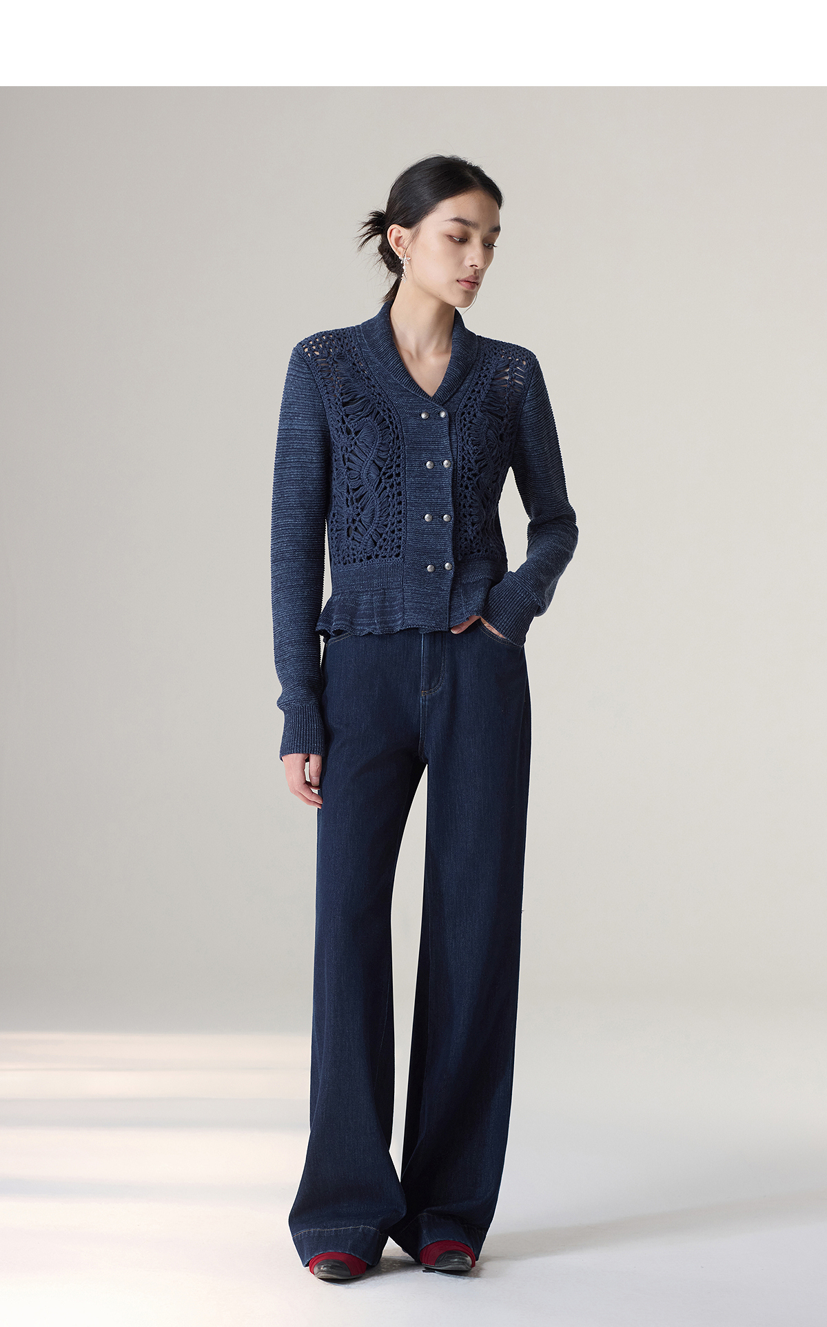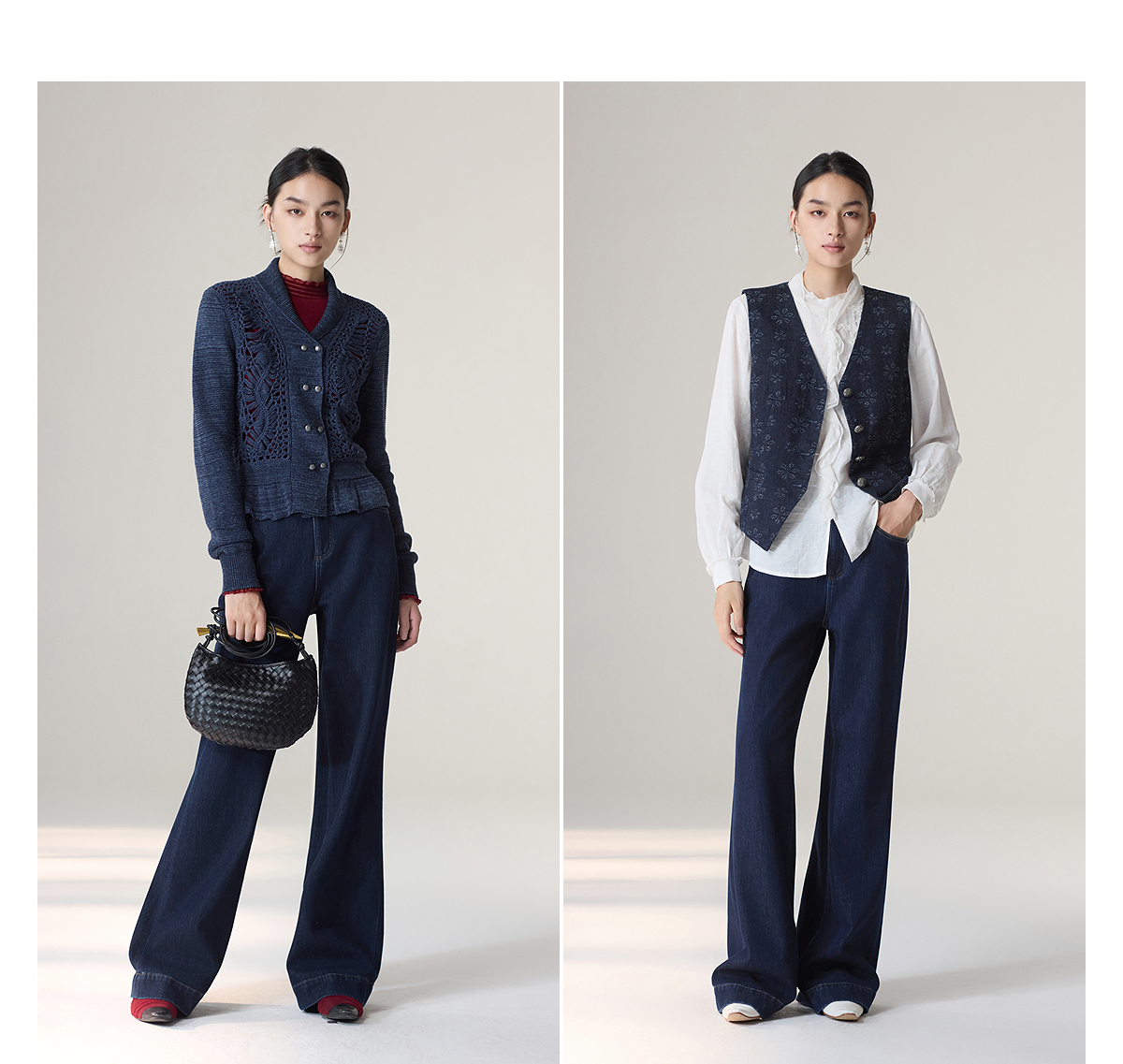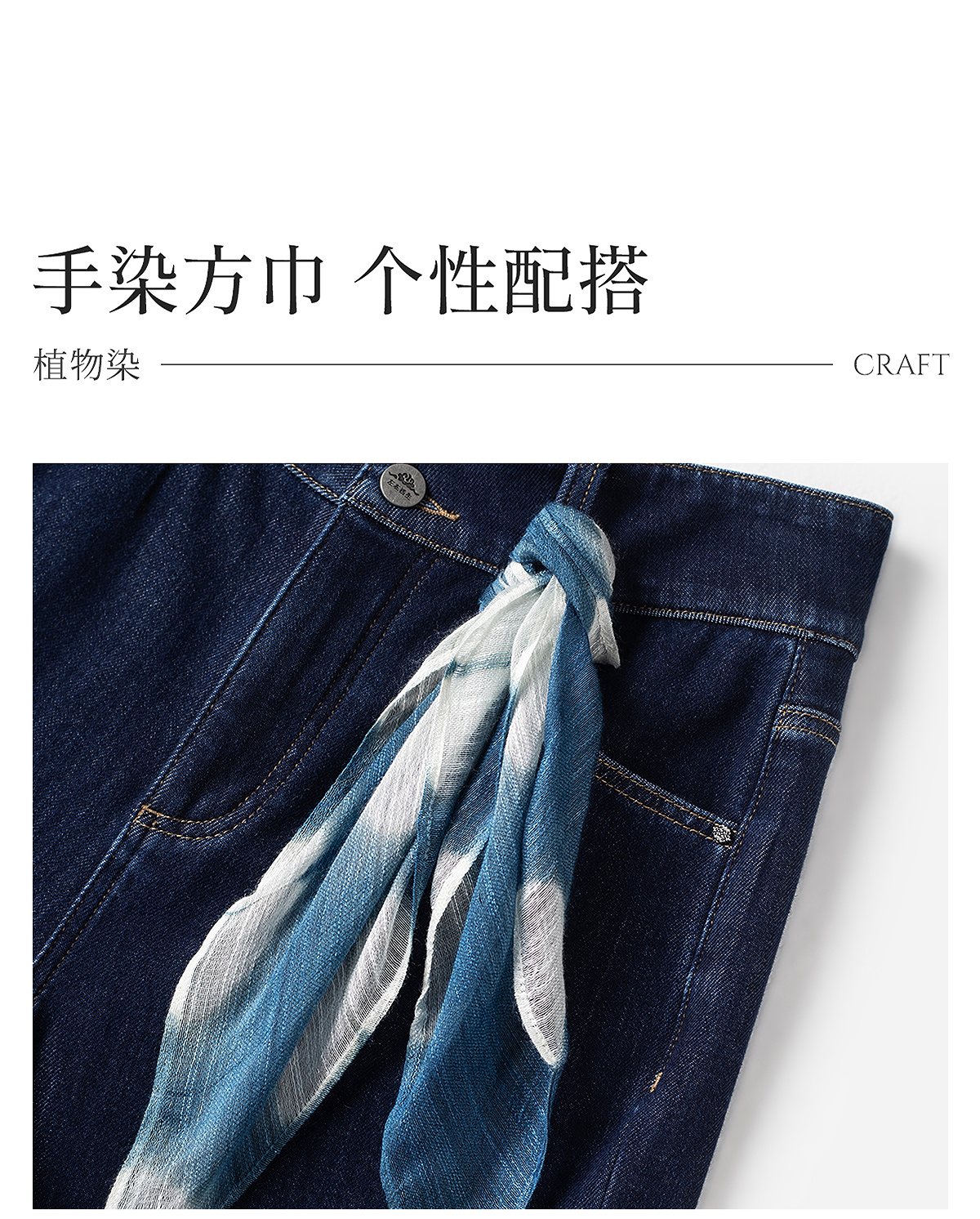 【林栖设计小店】【草木丹宁】雾织山花系列牛仔裤配植物染方巾宽松2025秋季新款阔腿裤1953073