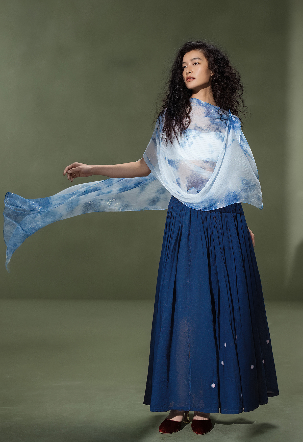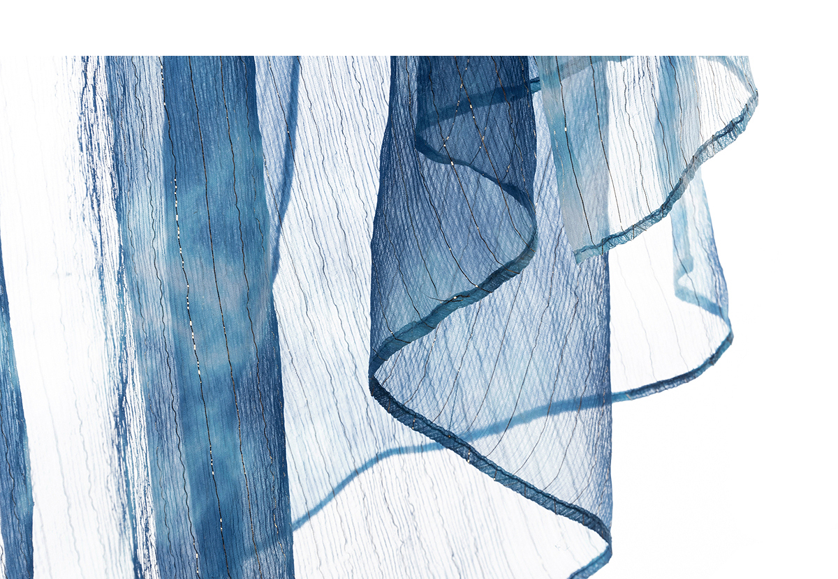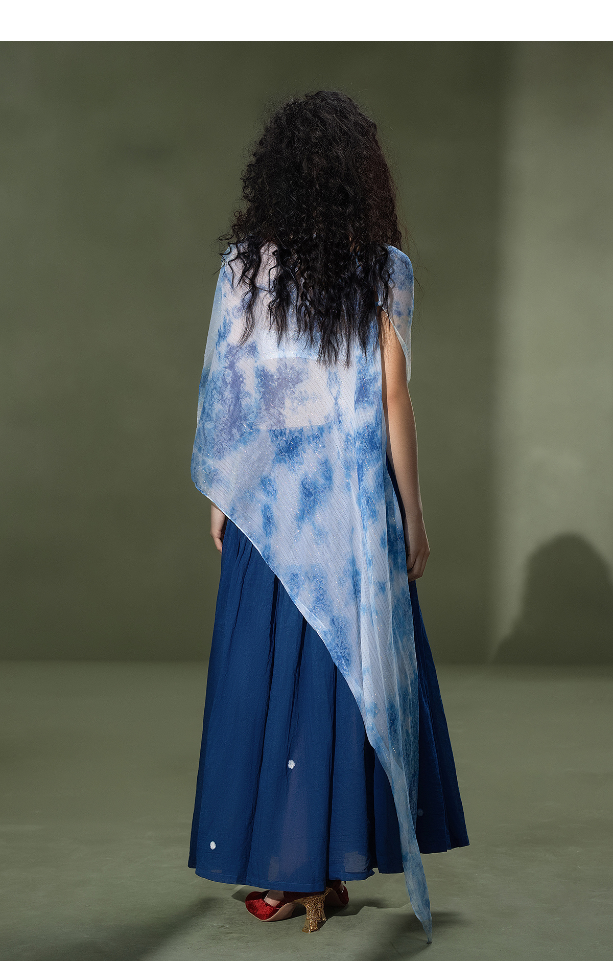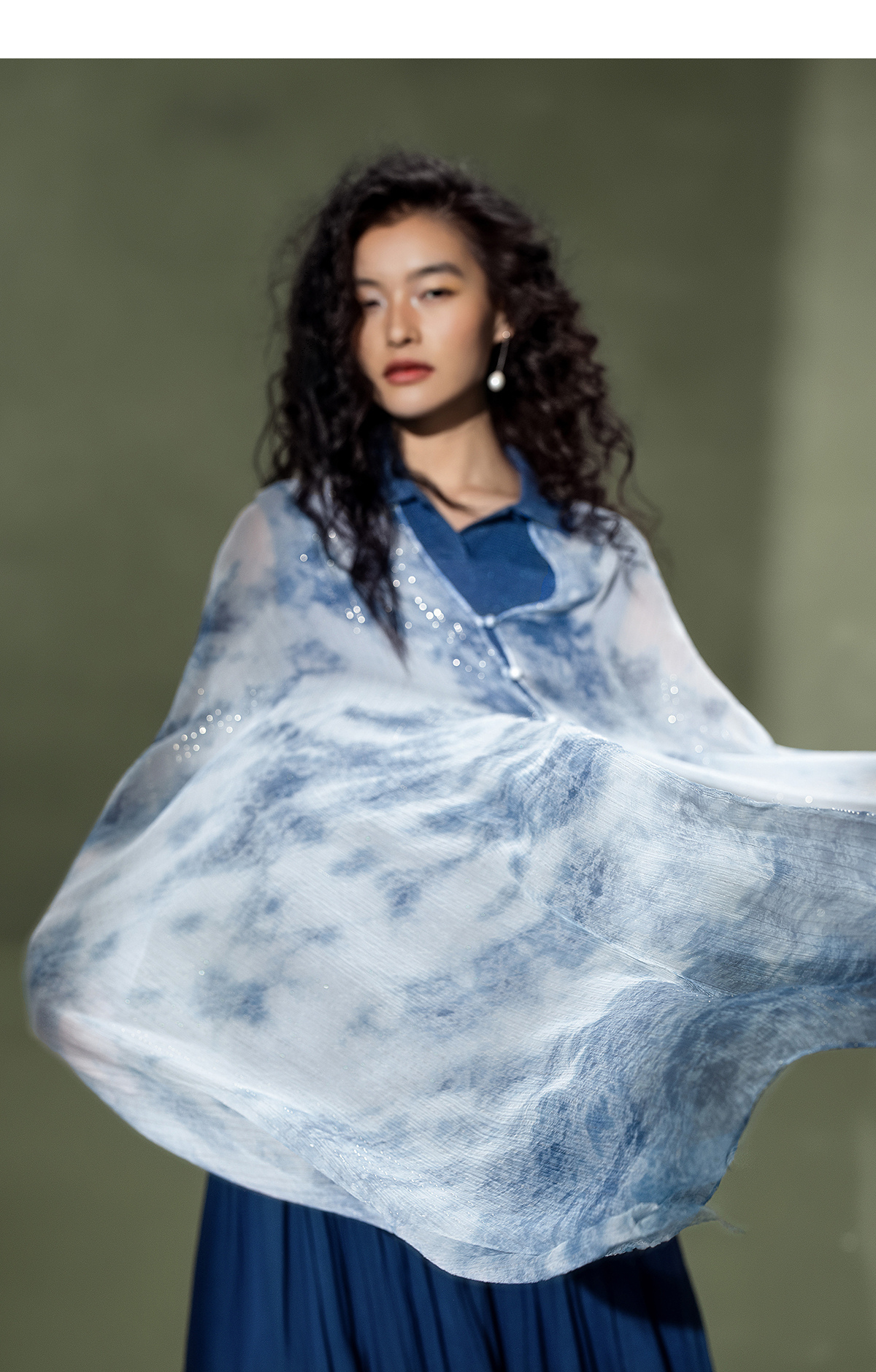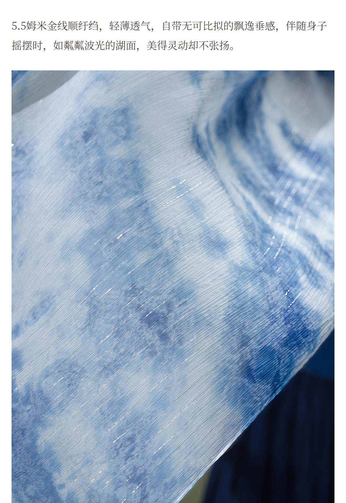 【林栖设计小店】植物染色|手工植物蓝金线顺纡绉优雅百搭2026夏新款披肩2962025