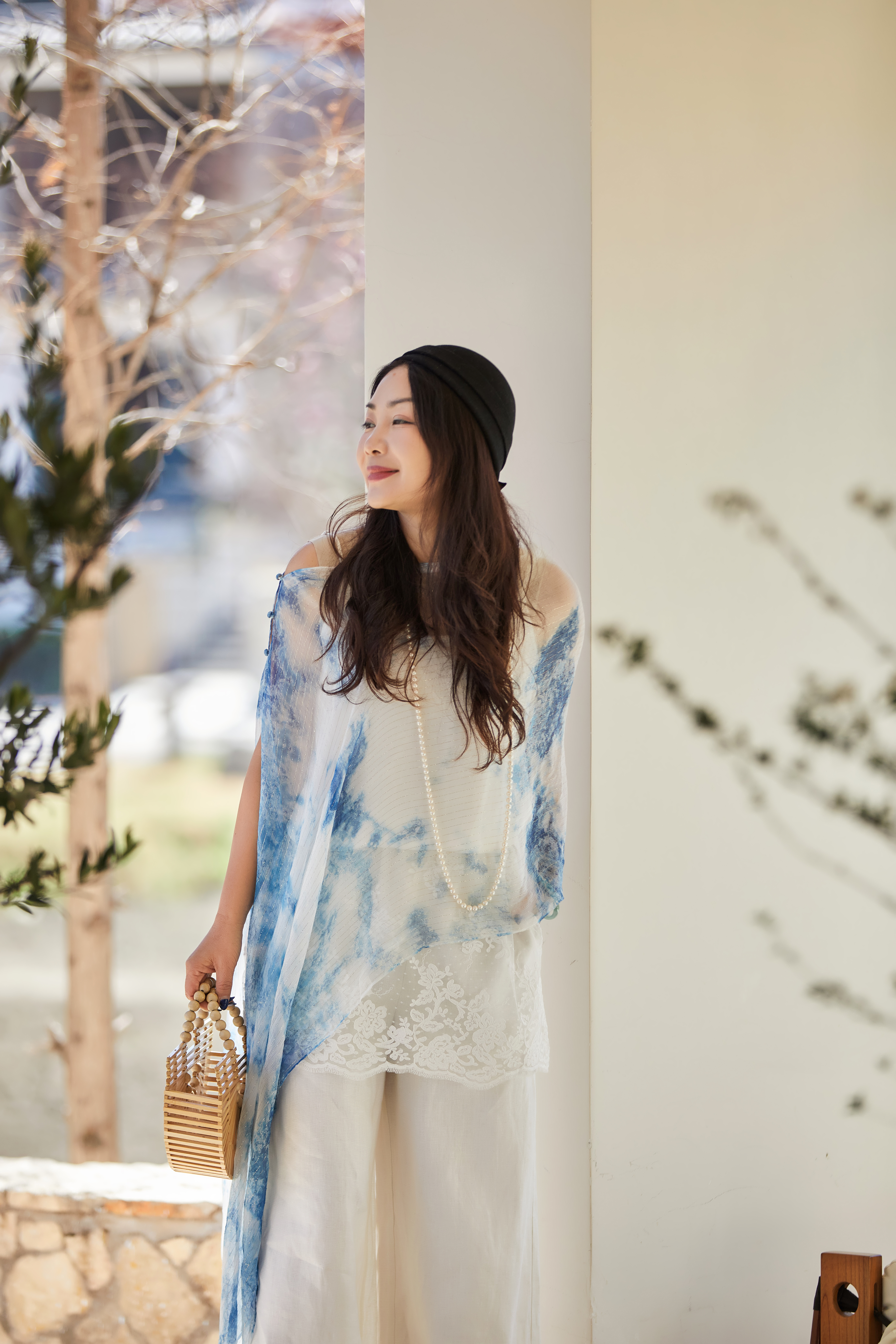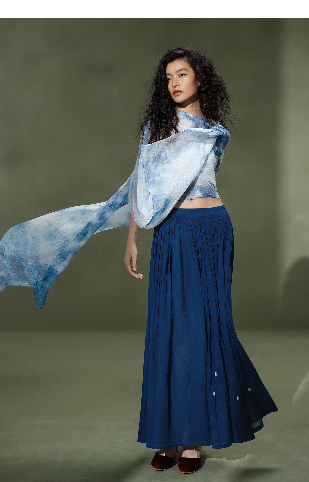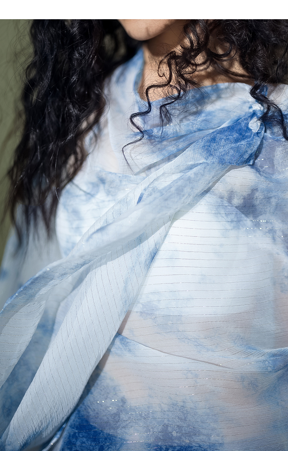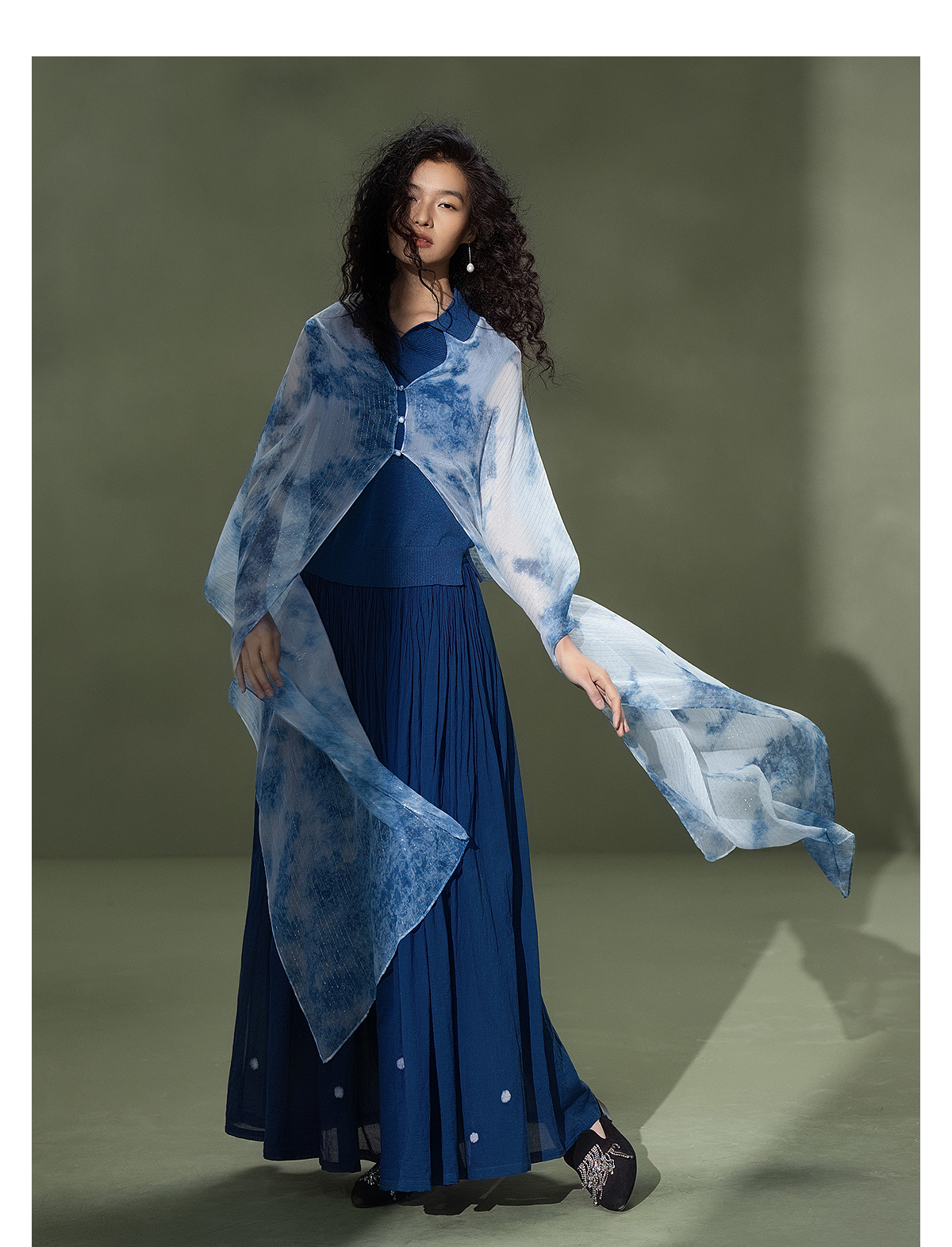 【林栖设计小店】植物染色|手工植物蓝金线顺纡绉优雅百搭2026夏新款披肩2962025