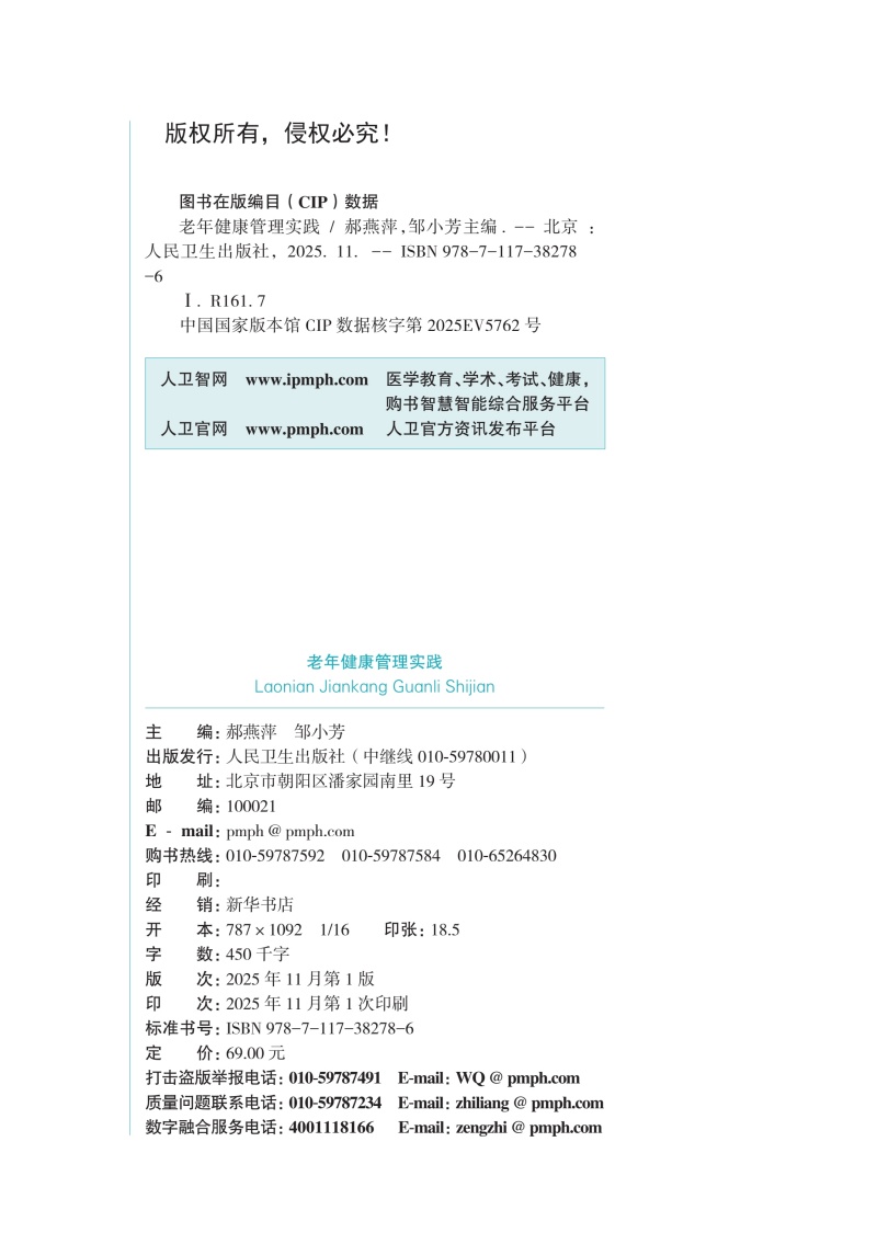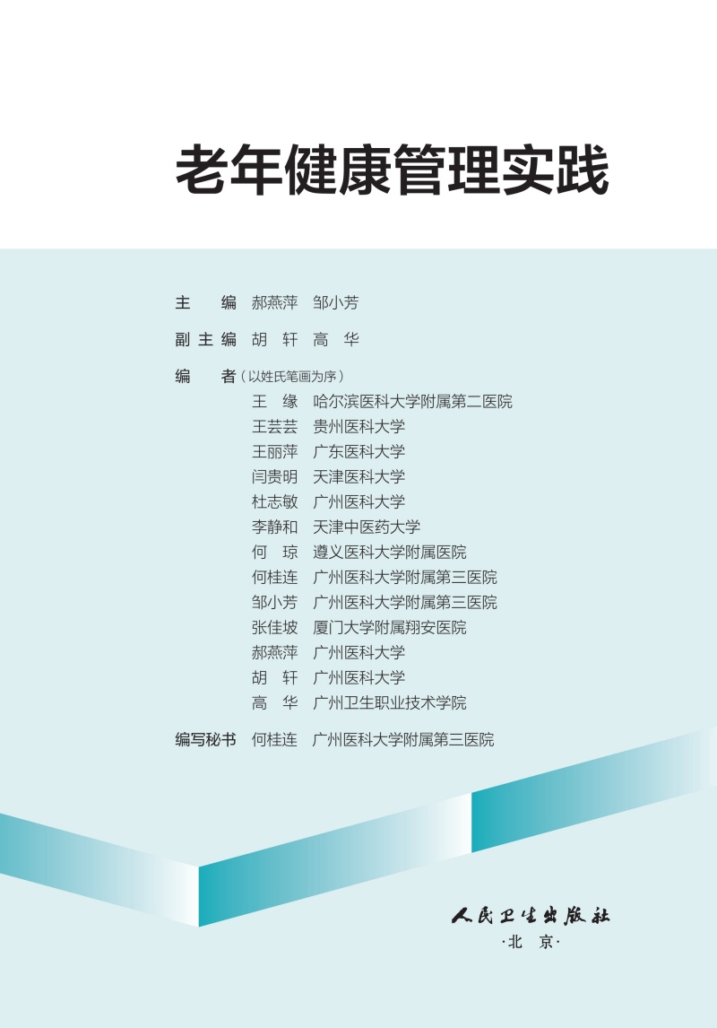 老年健康管理实践 郝燕萍 邹小芳 本书结合社会人口老龄化的特点以及现代信息技术在老年护理及养老行业的应用 人民卫生出版社