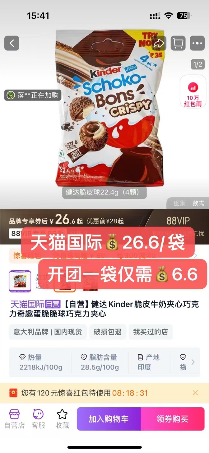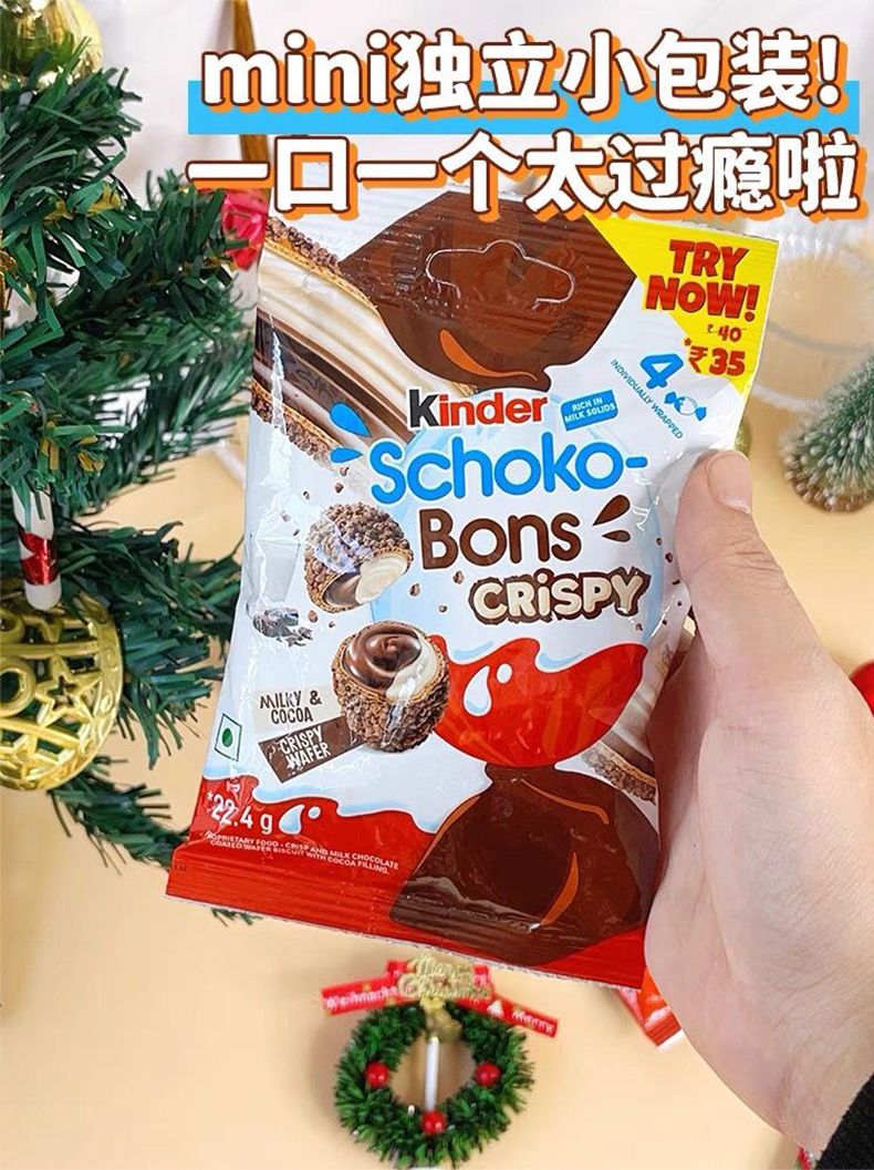 健达38.9/2袋共24颗⚠️ 天猫国际26一包~ 🔺巧克力脆皮威化+巧克力酱+香醇奶油 🔺口感细腻香甜,加热后还会爆浆 ✅独立小包装,一口一个超过瘾 ⚠️赏味期至26年3月