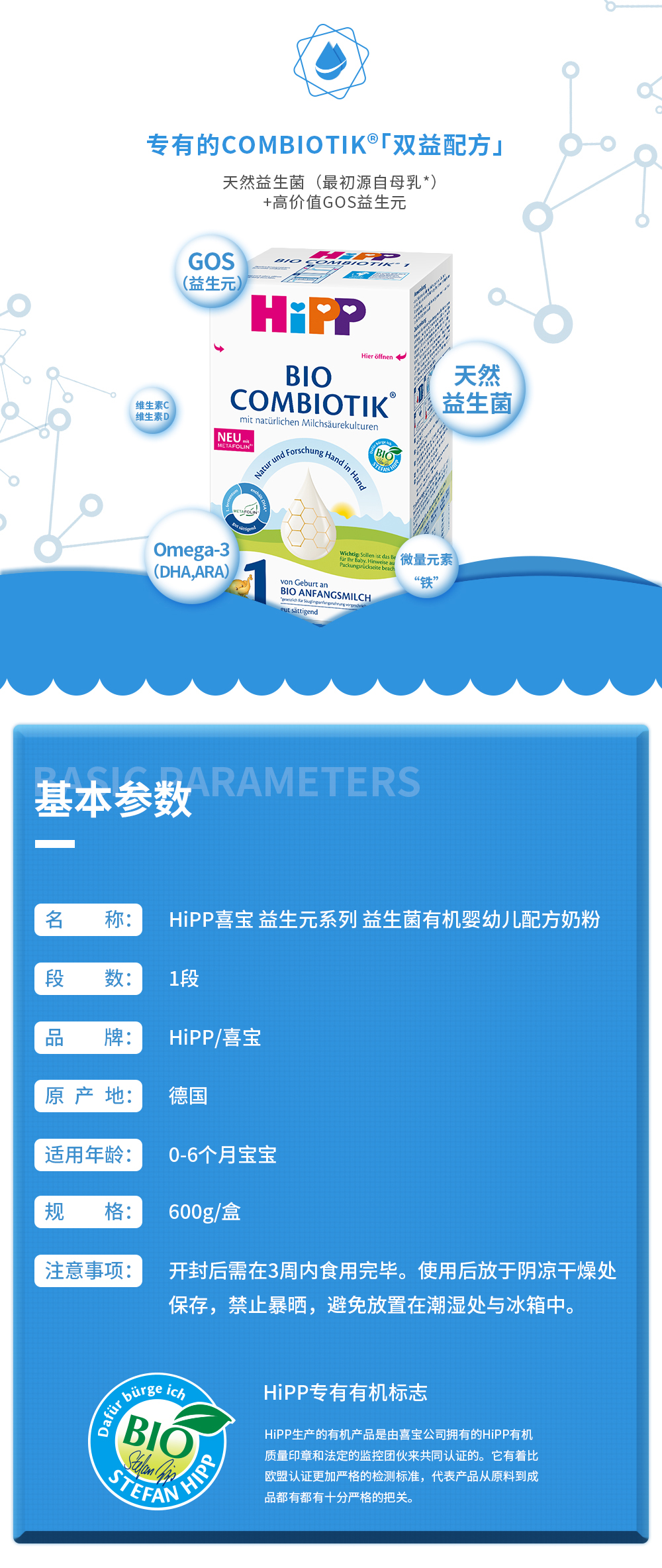 3盒【保税】德国喜宝益生菌奶粉1段600g