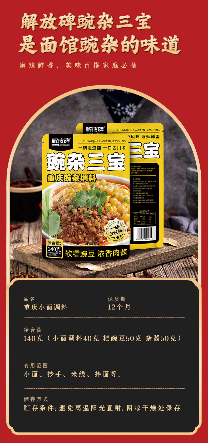 解放碑 豌杂三宝 重庆豌杂小面调料 140g/袋