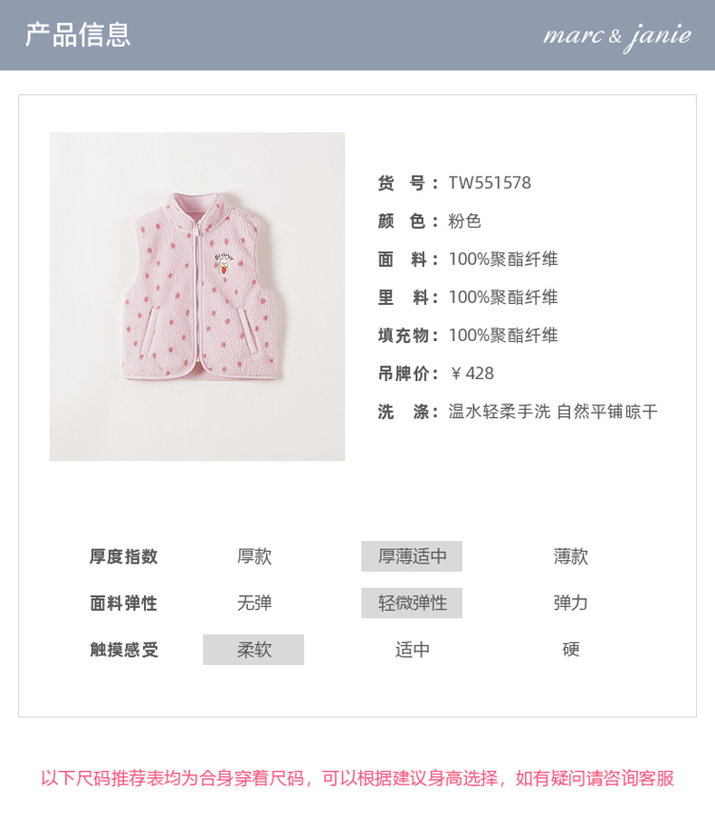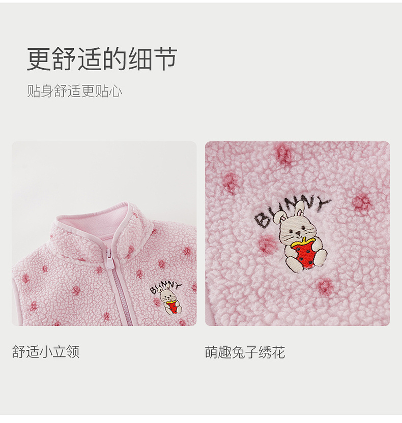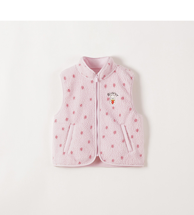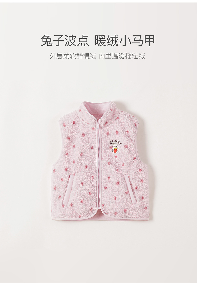 马克珍妮女童兔子波点温暖摇粒绒马甲2025年秋冬新款551578