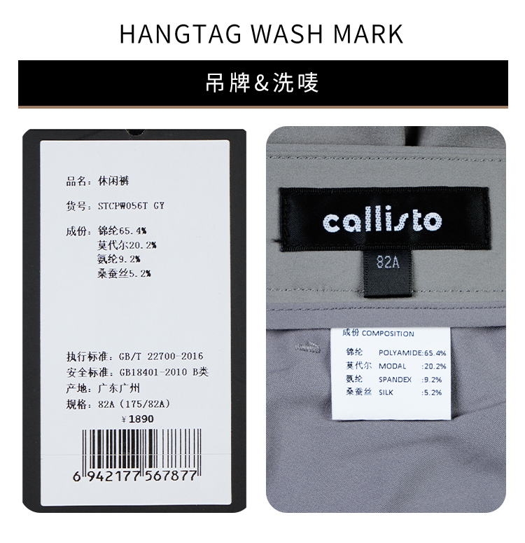 callisto灰色桑蚕丝休闲裤 STCPW056T